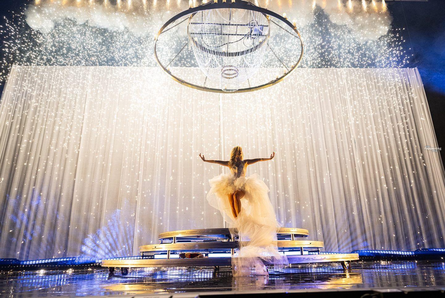 Addison Rae shows off her sexy legs and backside in neon lingerie and sheer fits during a new concert in Dublin.
