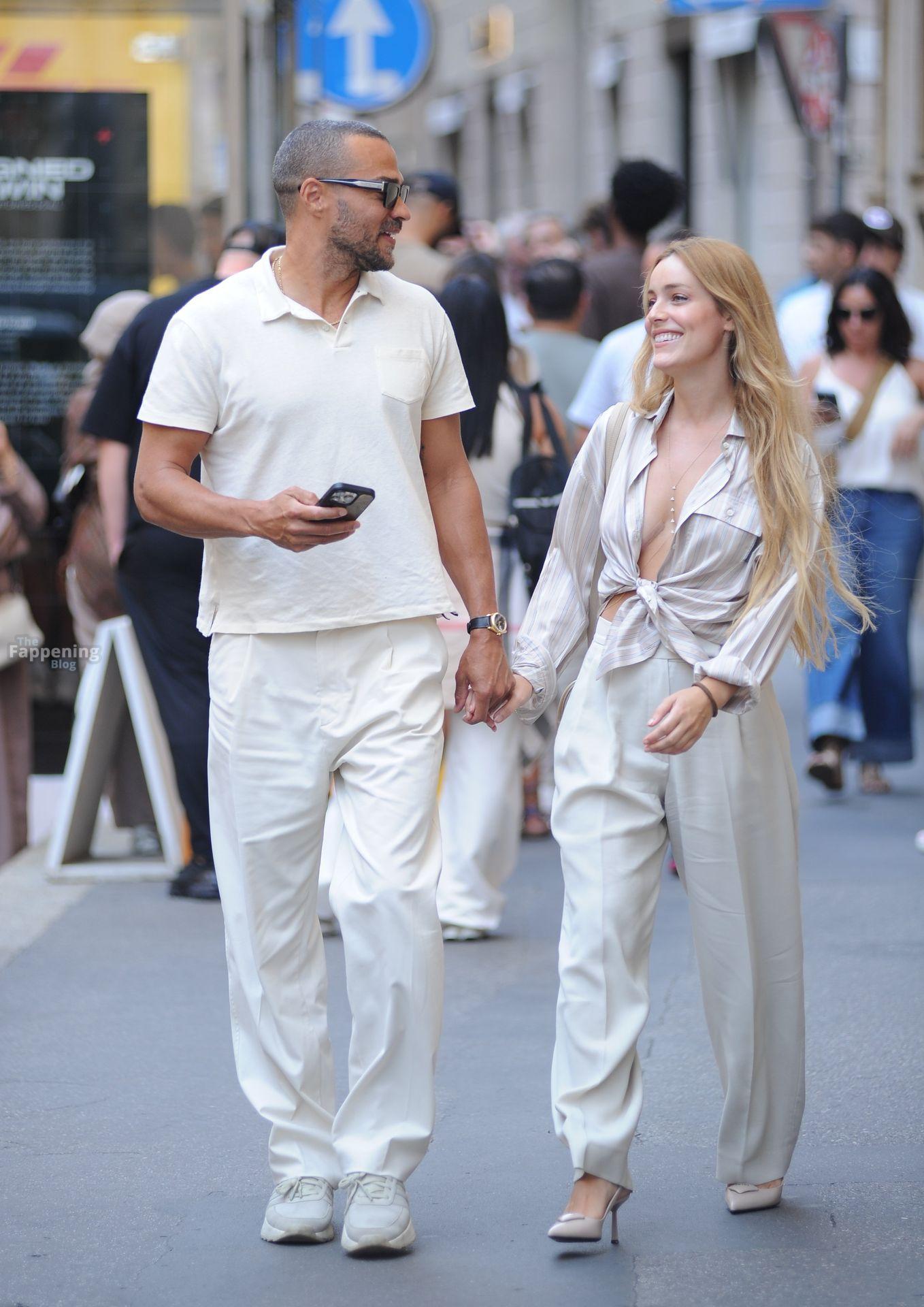 Check out Jesse Williams, the American actor, gettin’ caught grabbin’ lunch with his new girl Alejandra Onieva. After chowin’ down at Il Salumaio di Montenapoleone, Jesse and Alejandra bounced from the spot and took a long, hand-in-hand walk through the fashion district streets, lockin’ lips in a deep, steamy kiss.