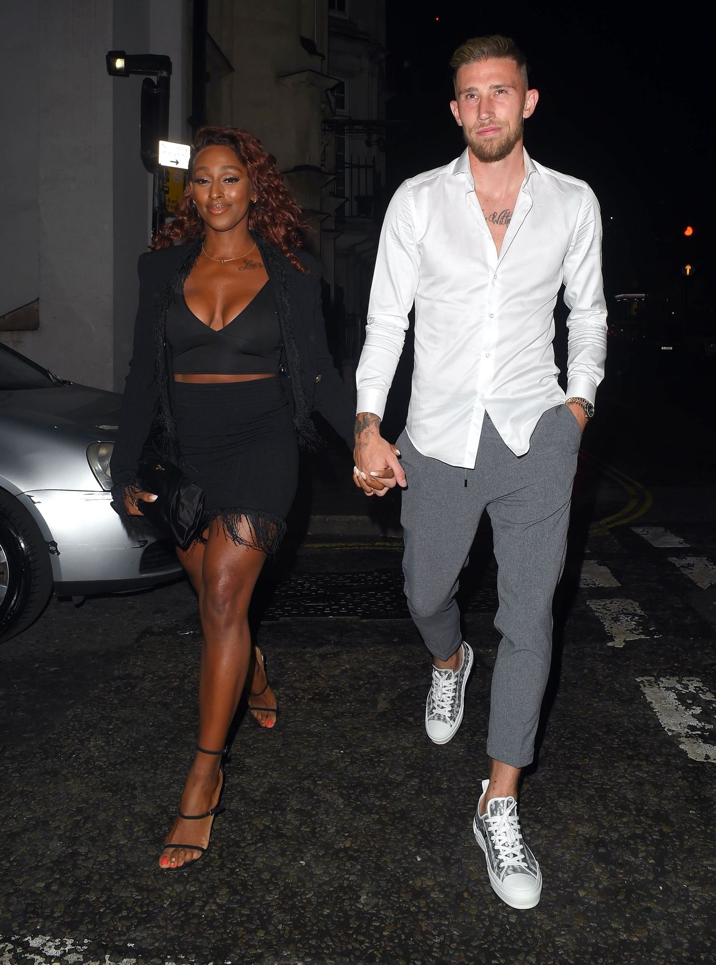 Alexandra Burke was seen arriving at Sexy Fish Mayfair to celebrate her 32nd Birthday with Beau Angus MacDonald of Rotherham FC, 08/29/2020.