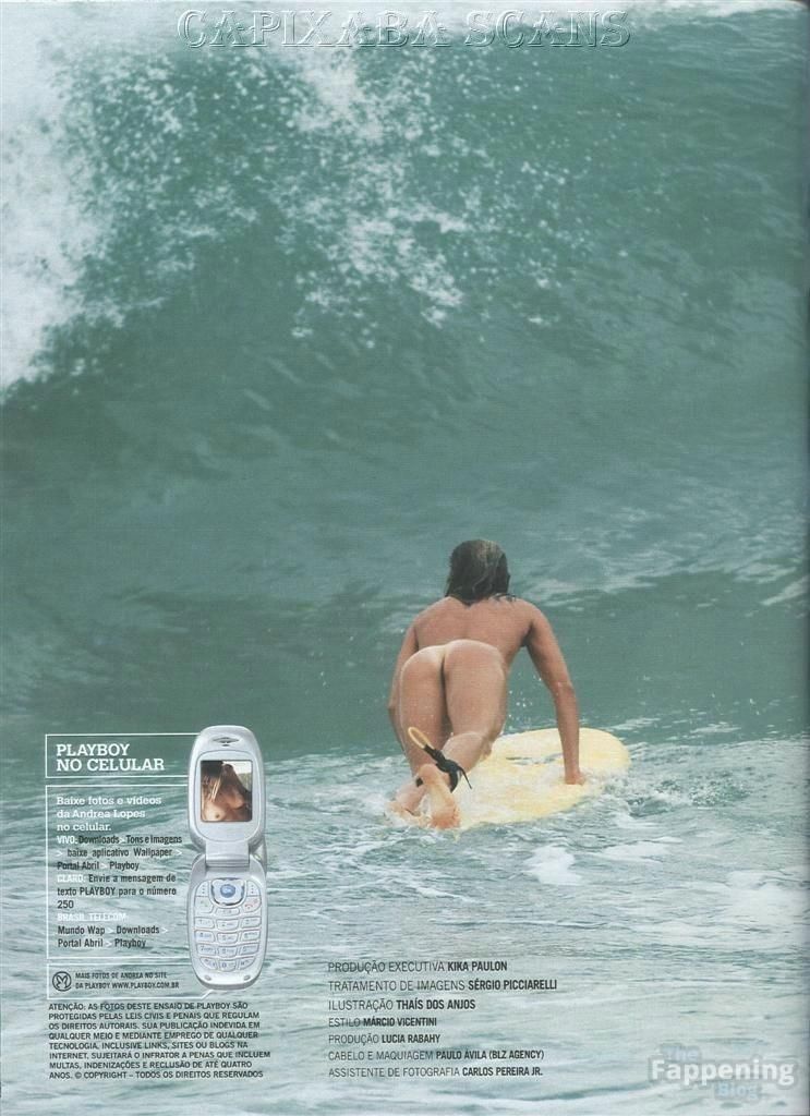 Brazilian Playboy model and surfer Andrea Lopes looks hot in the nude beach photos below.