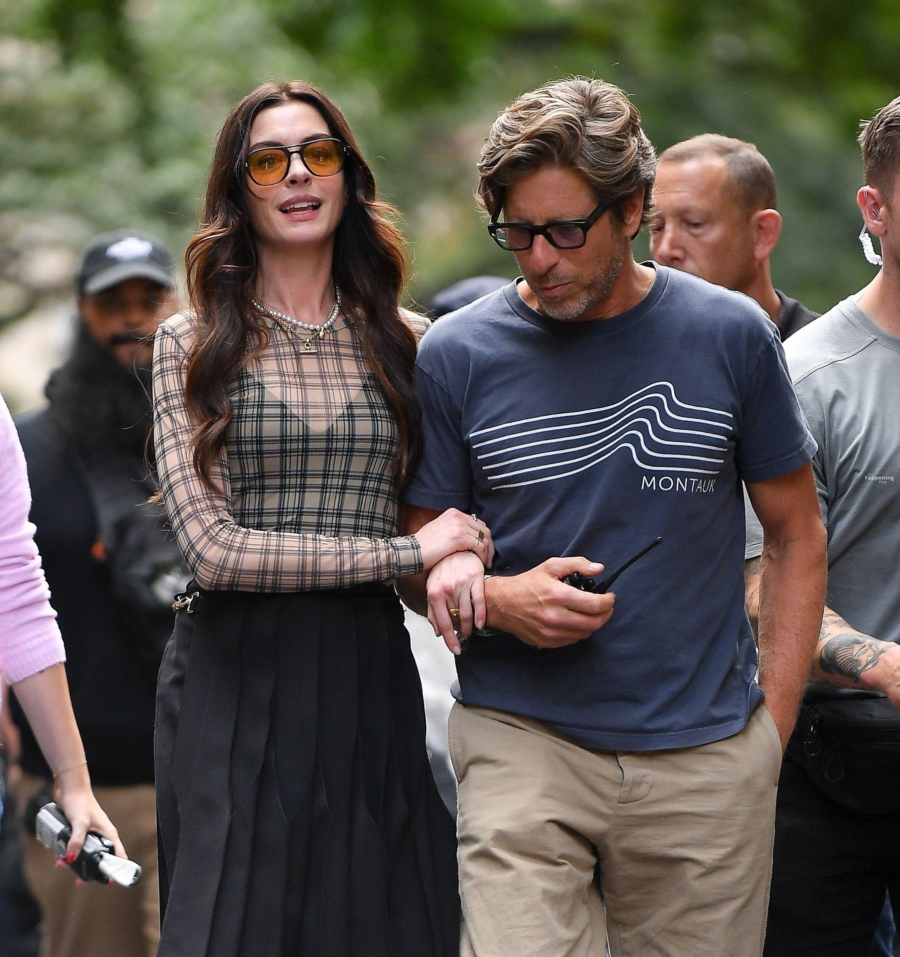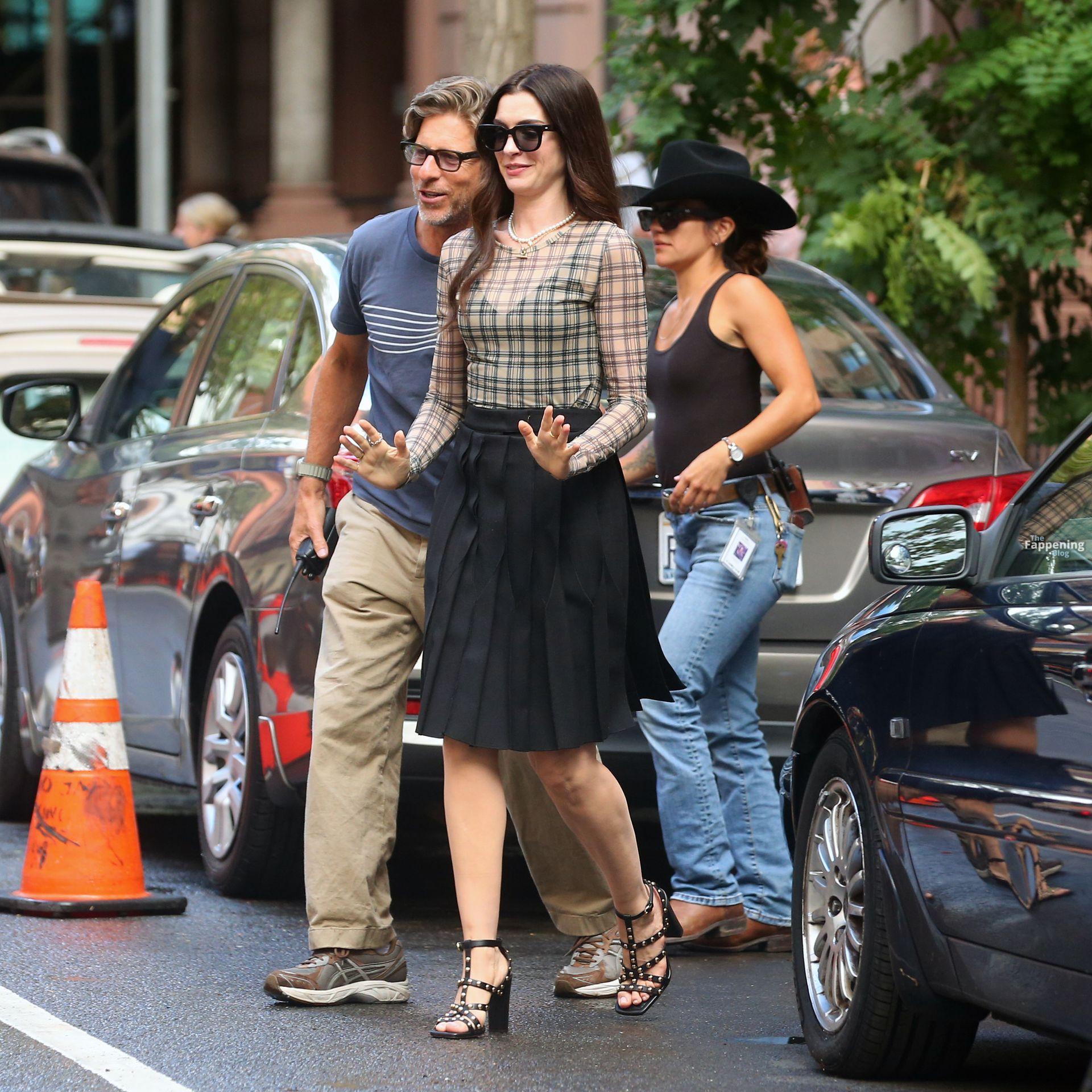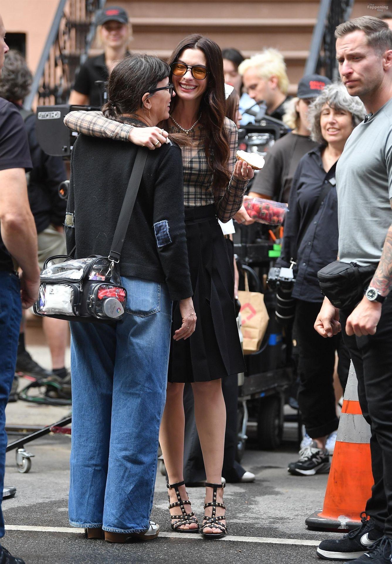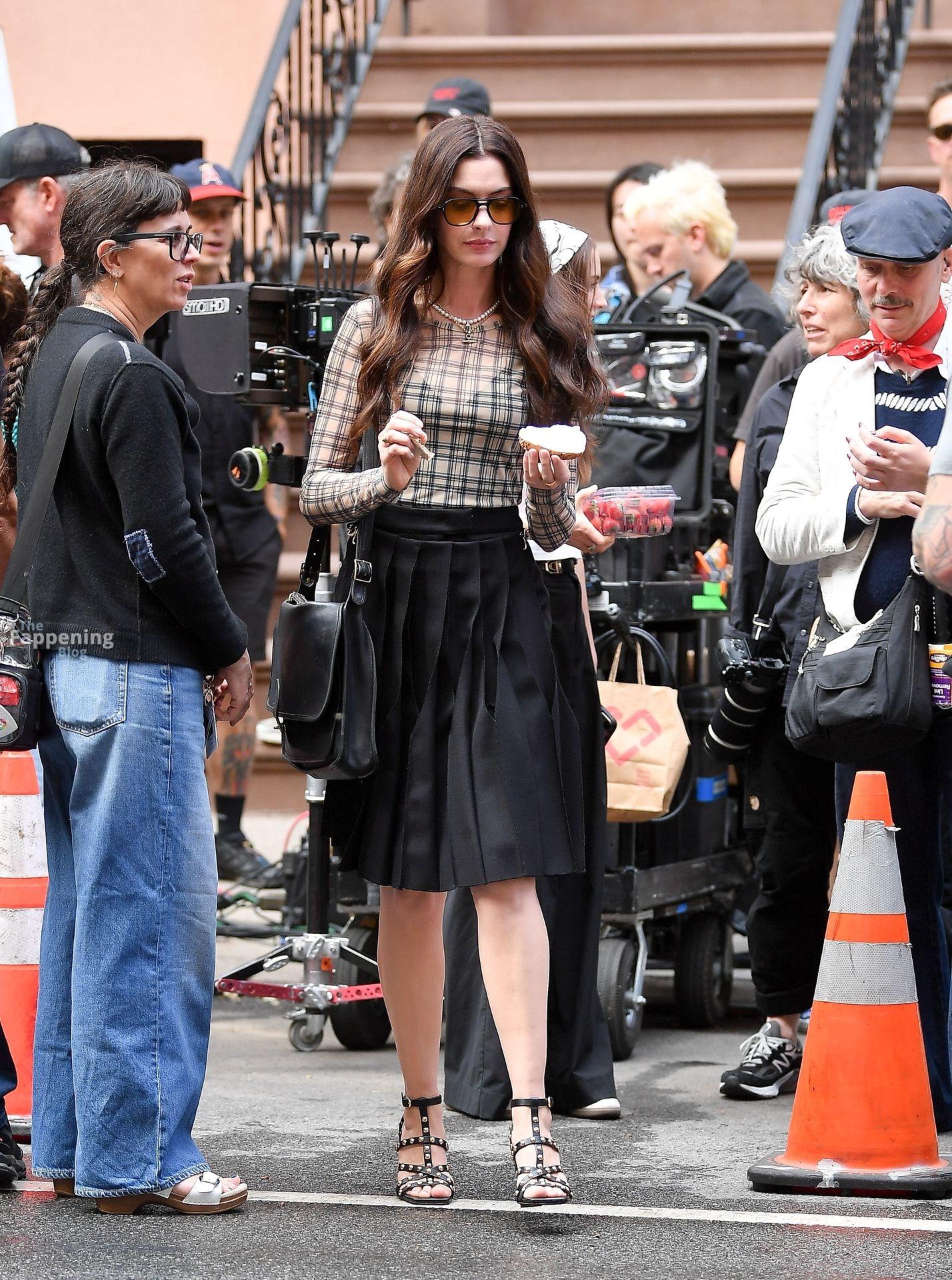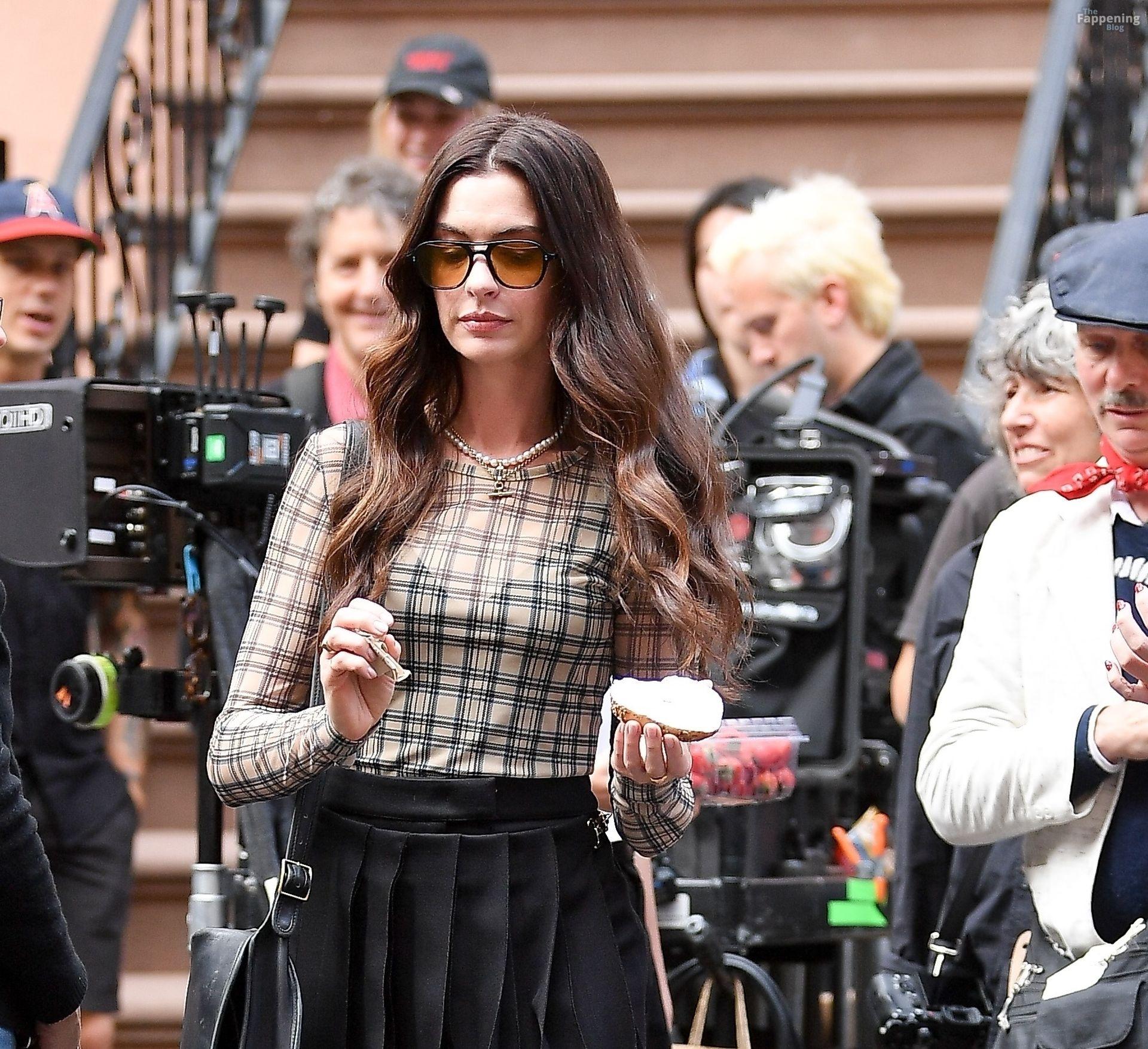 Anne Hathaway Falls Down the Stairs While Filming “The Devil Wears Prada 2” in NYC (94 Photos)