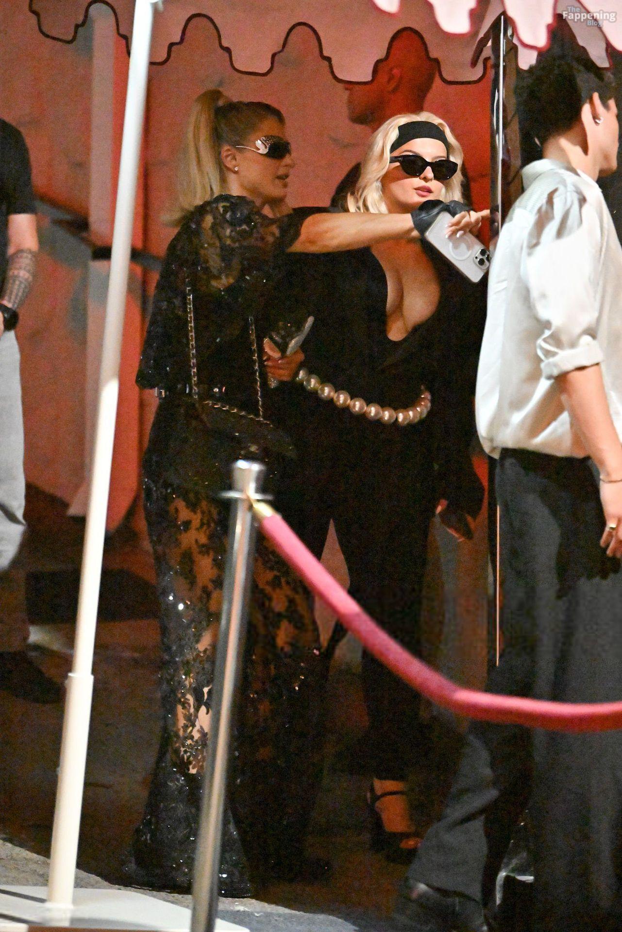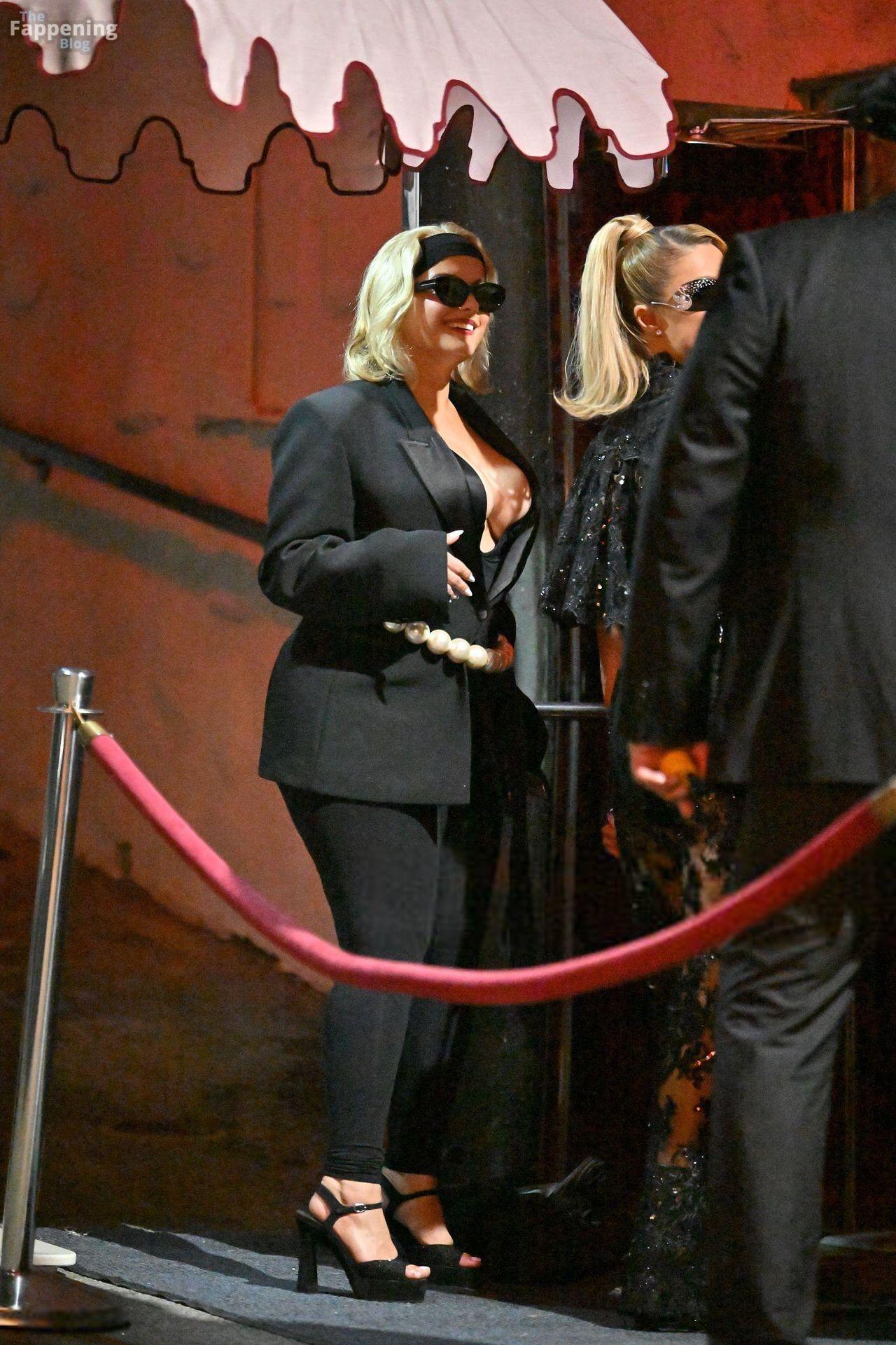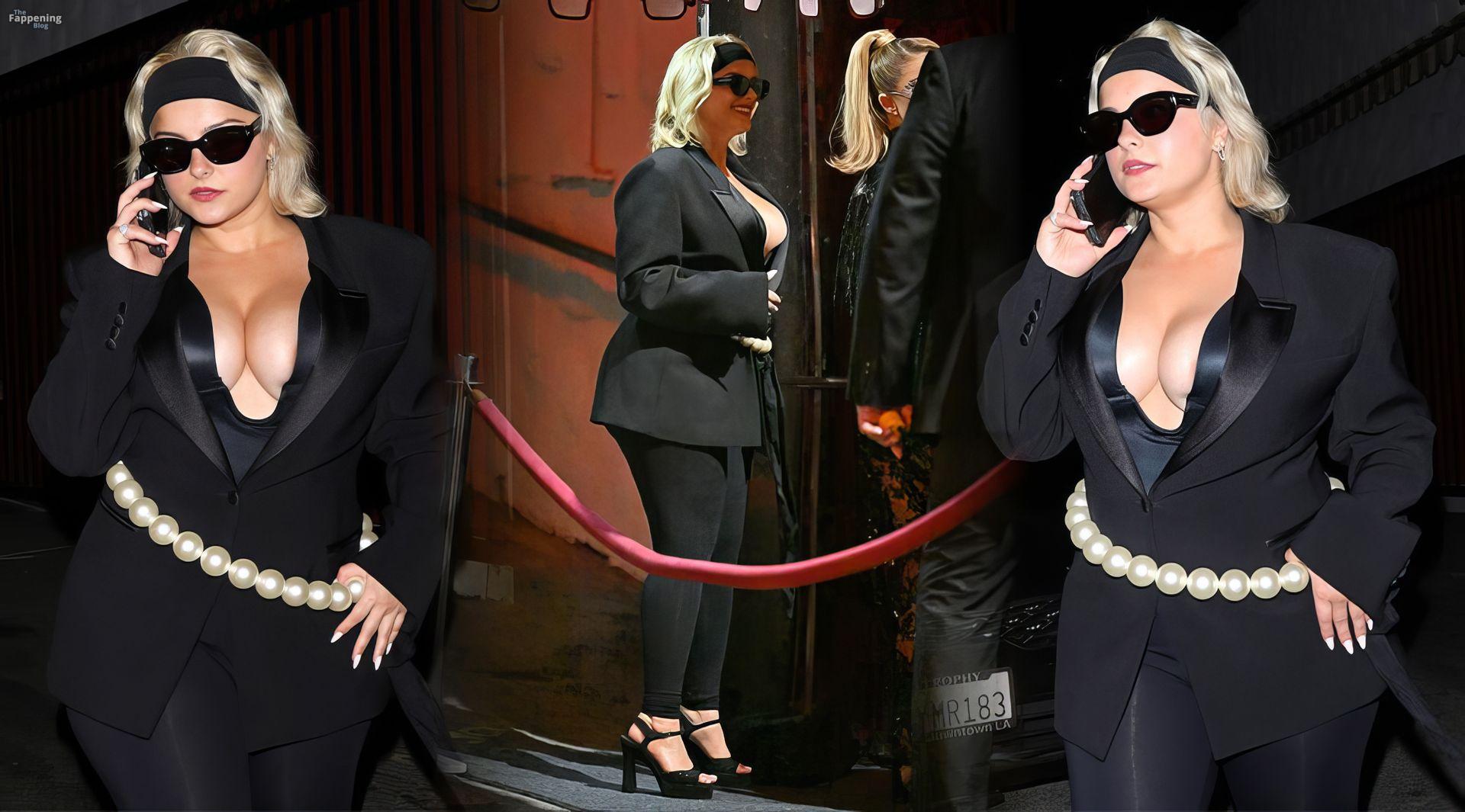 Singer Bebe Rexha owned Cara Delevingne’s party, rockin’ a deep satin bodysuit, showin’ off her big boobs.