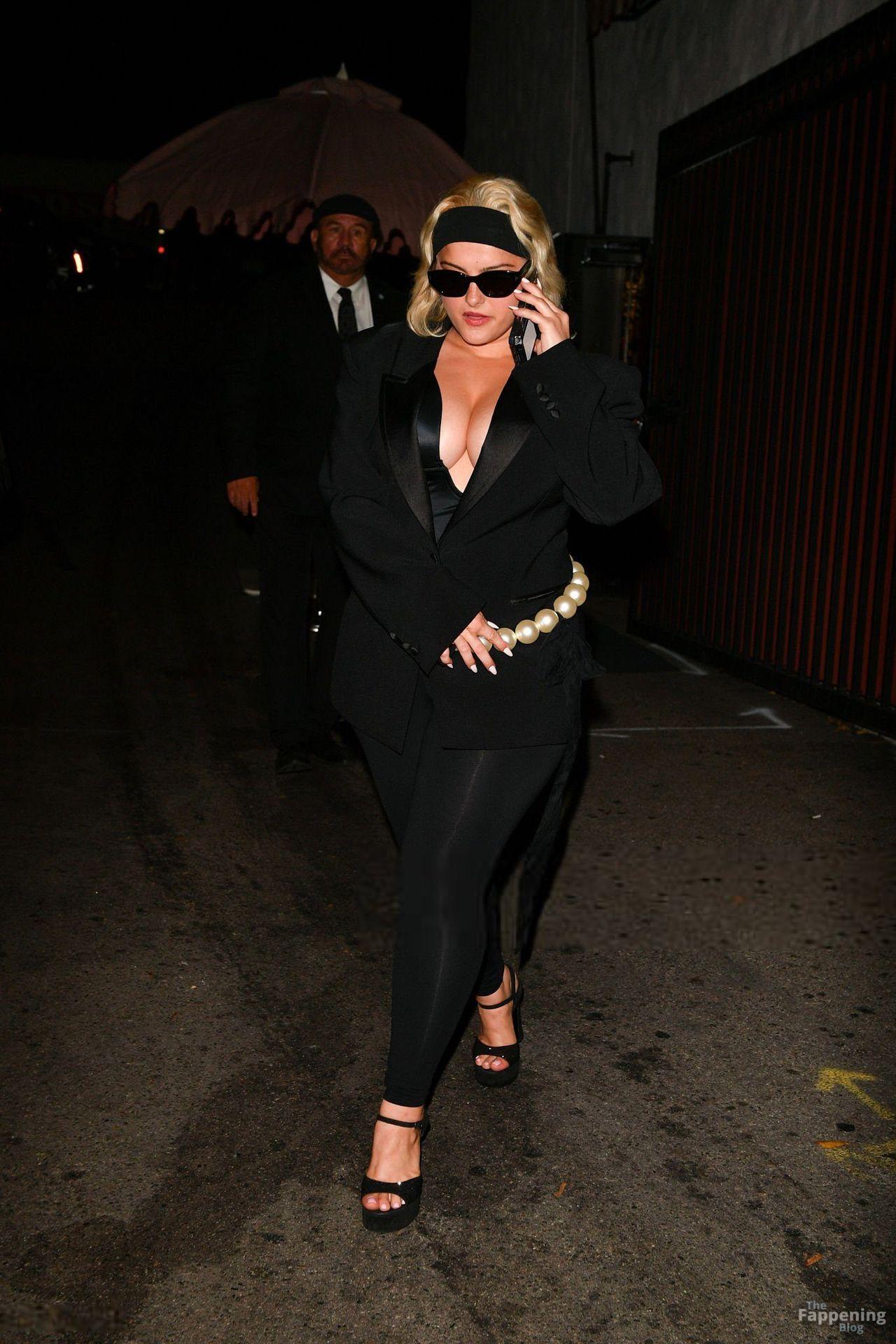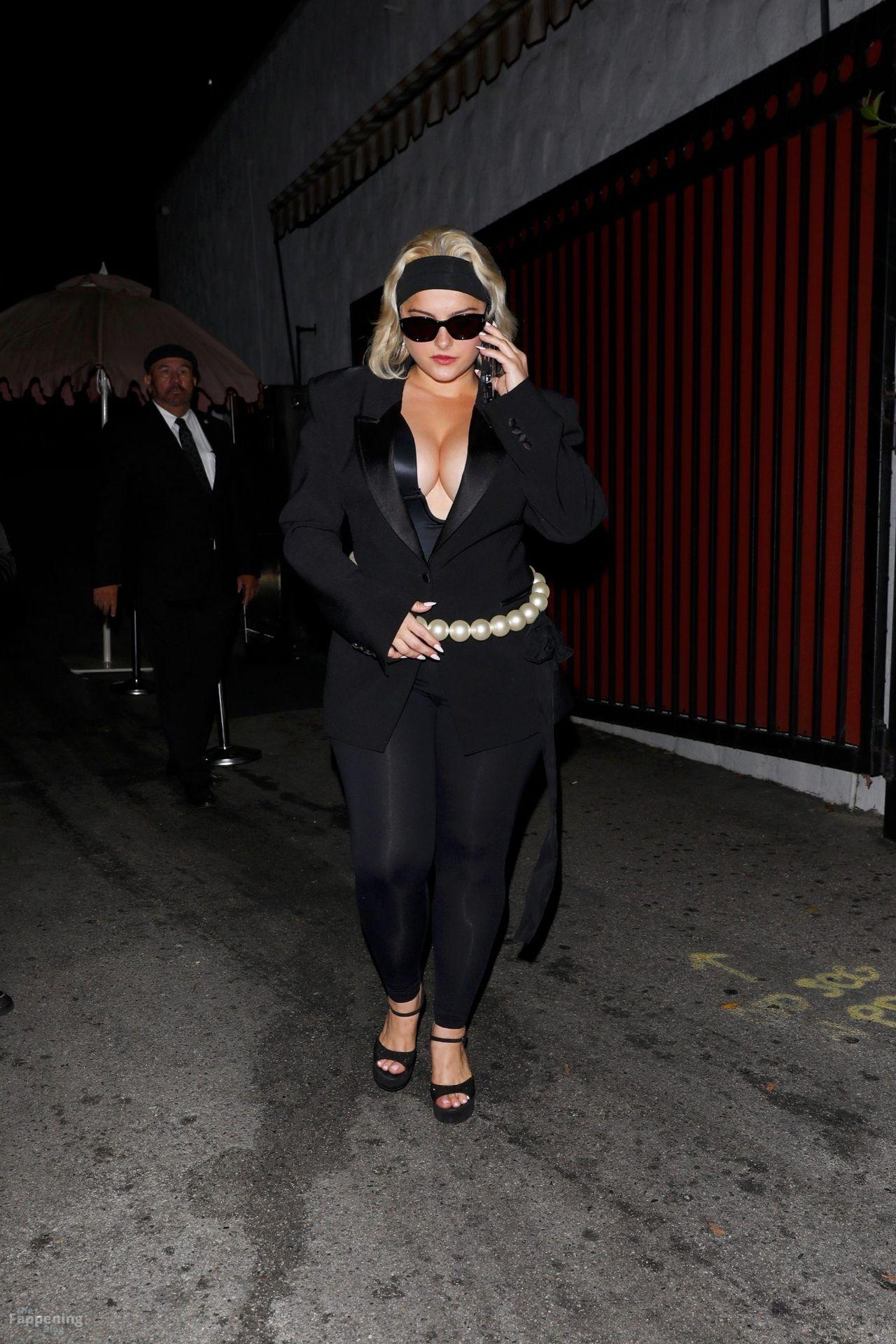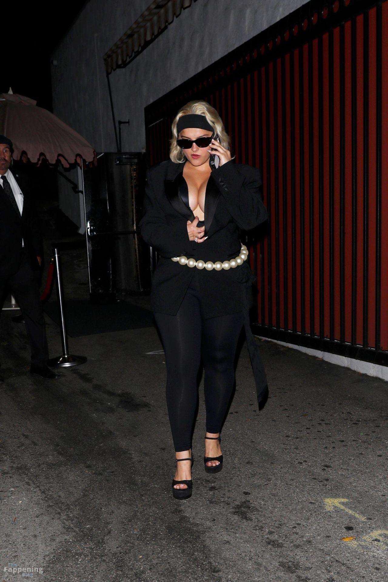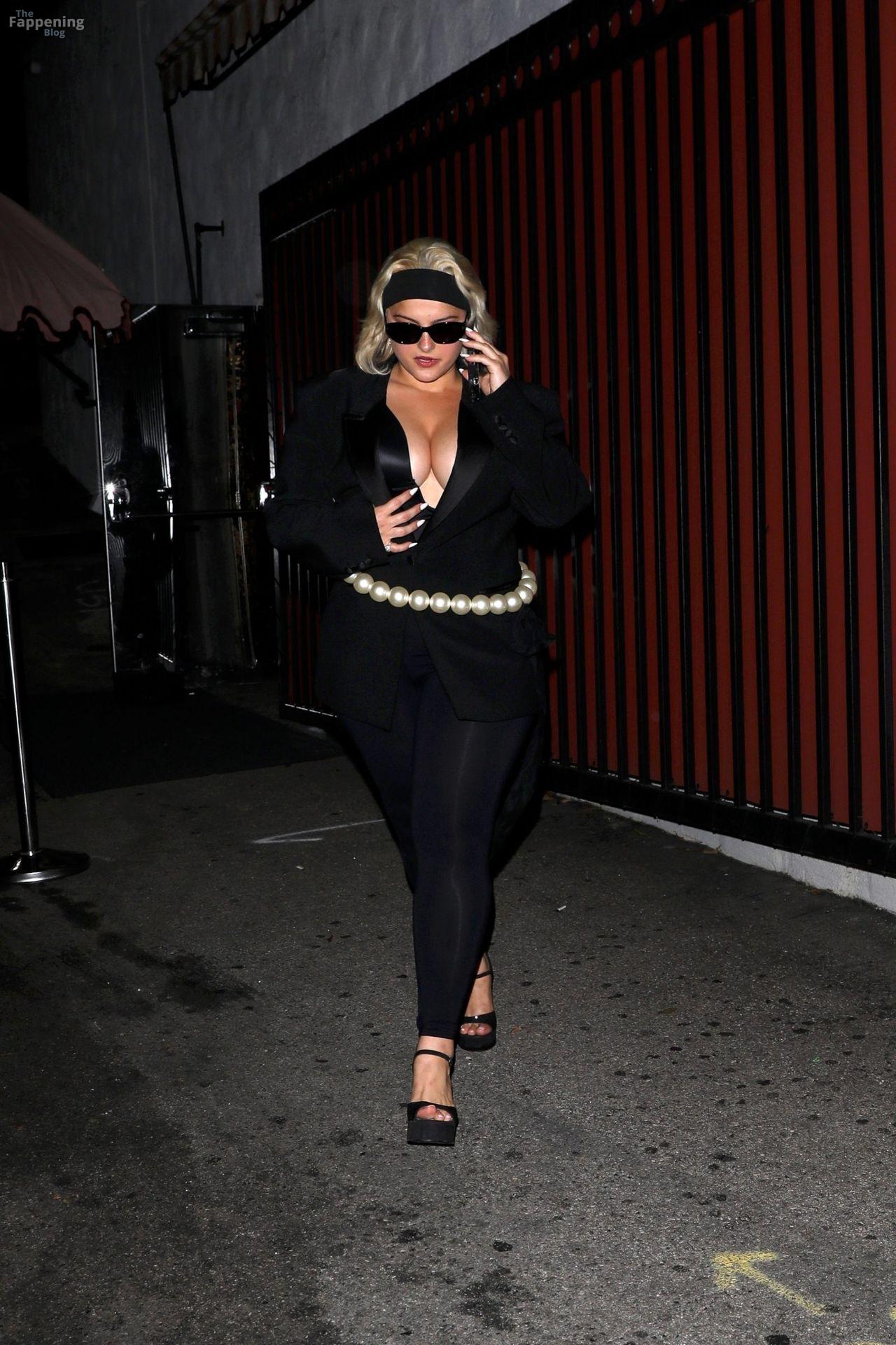 Singer Bebe Rexha owned Cara Delevingne’s party, rockin’ a deep satin bodysuit, showin’ off her big boobs.
