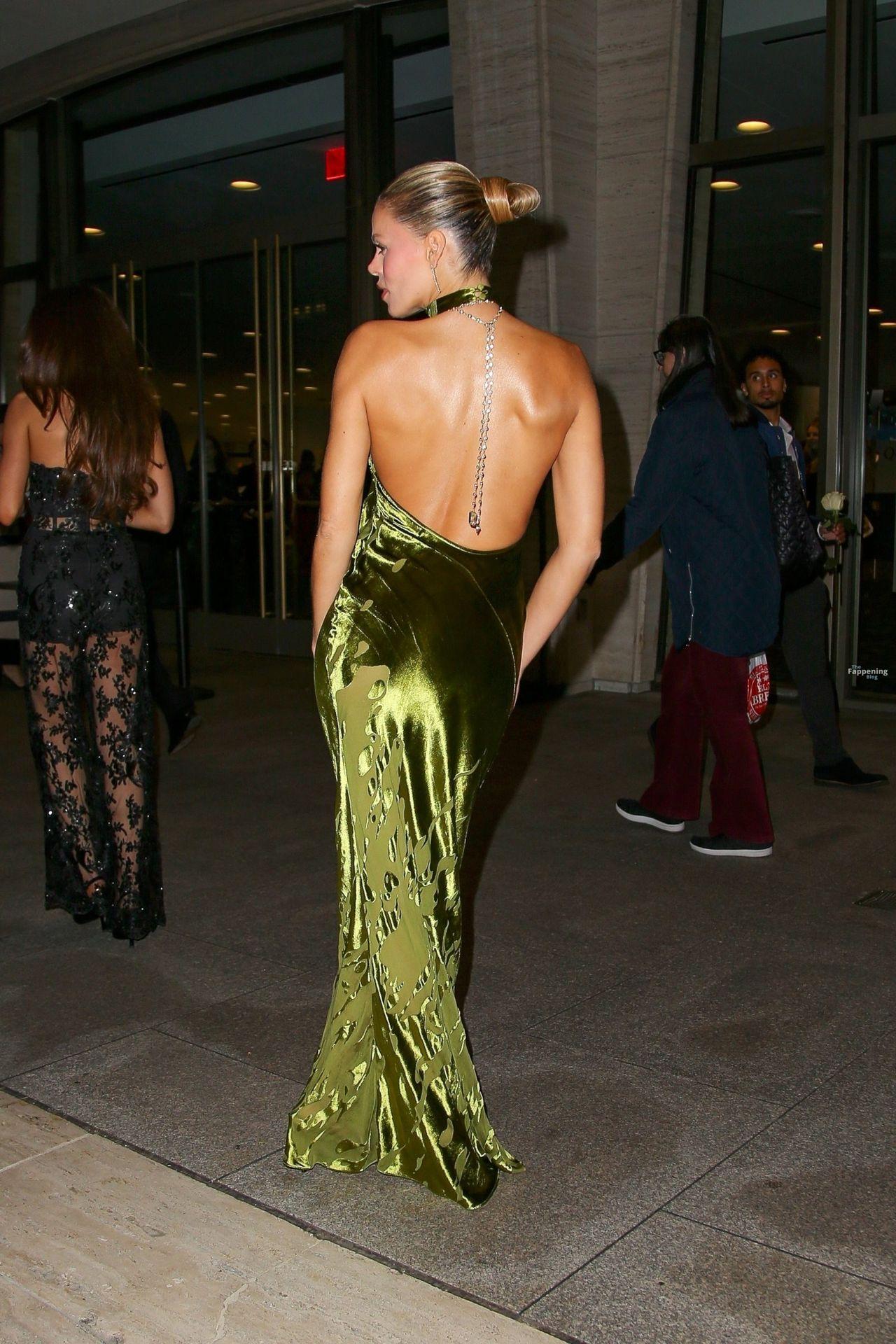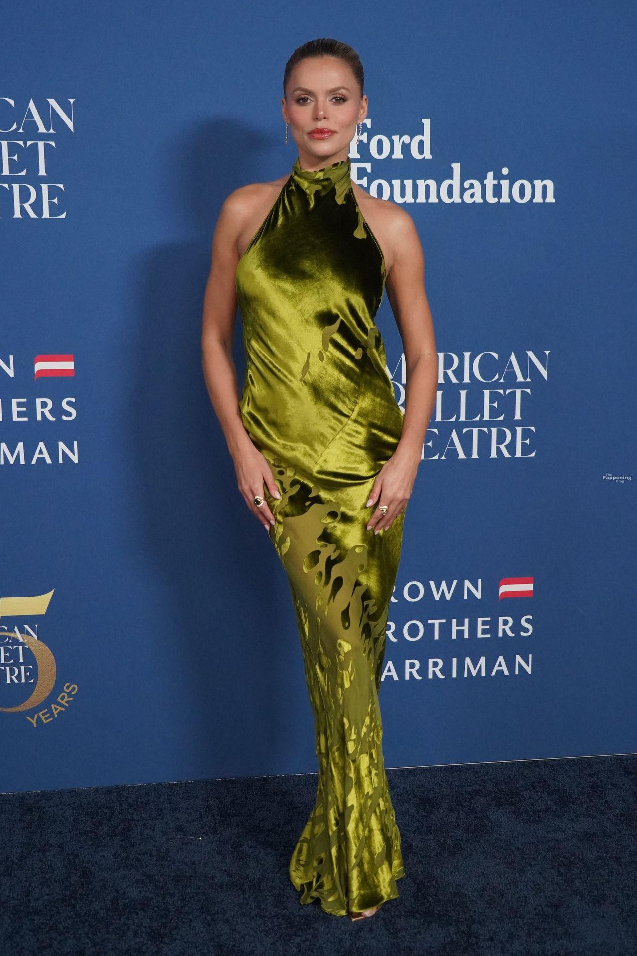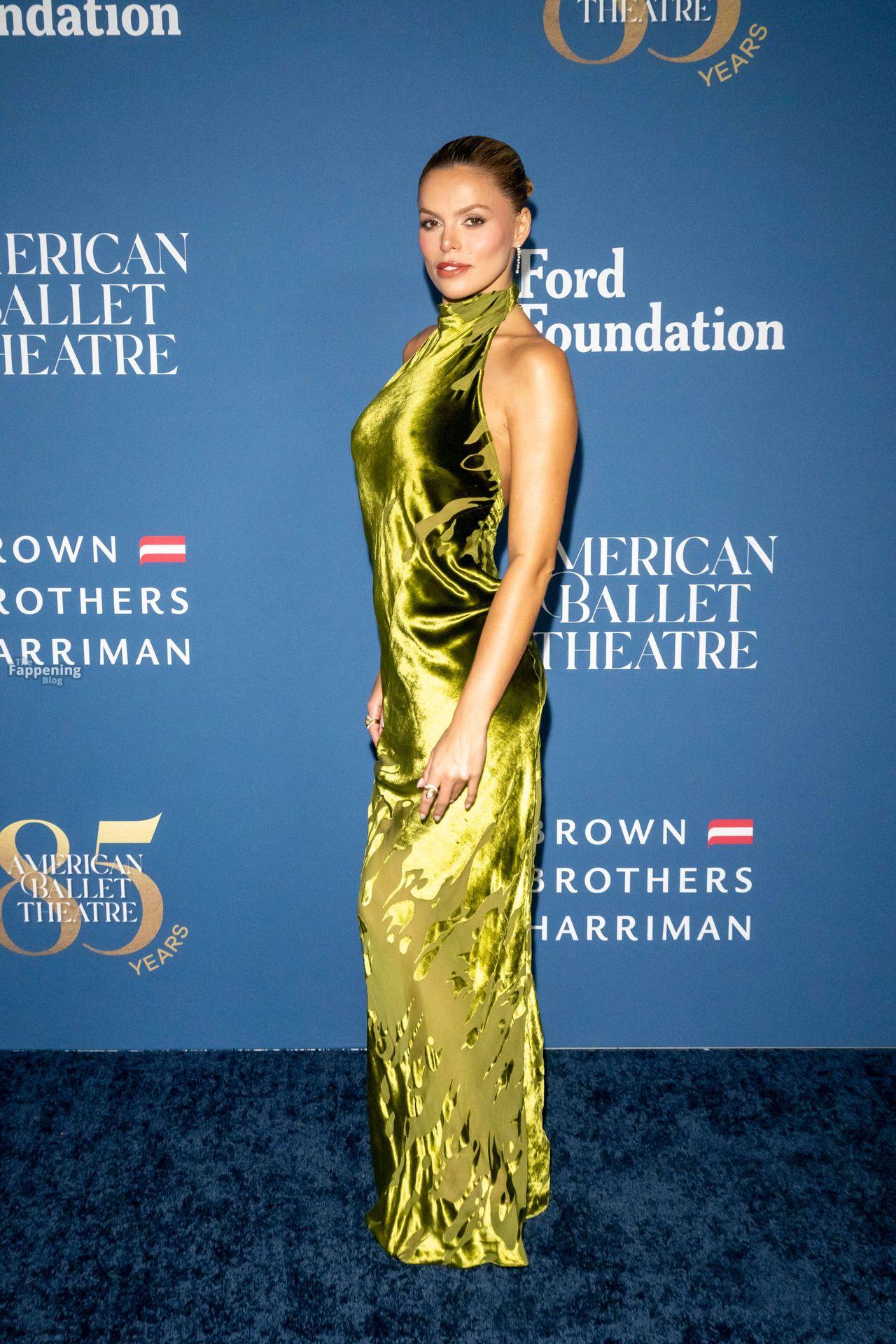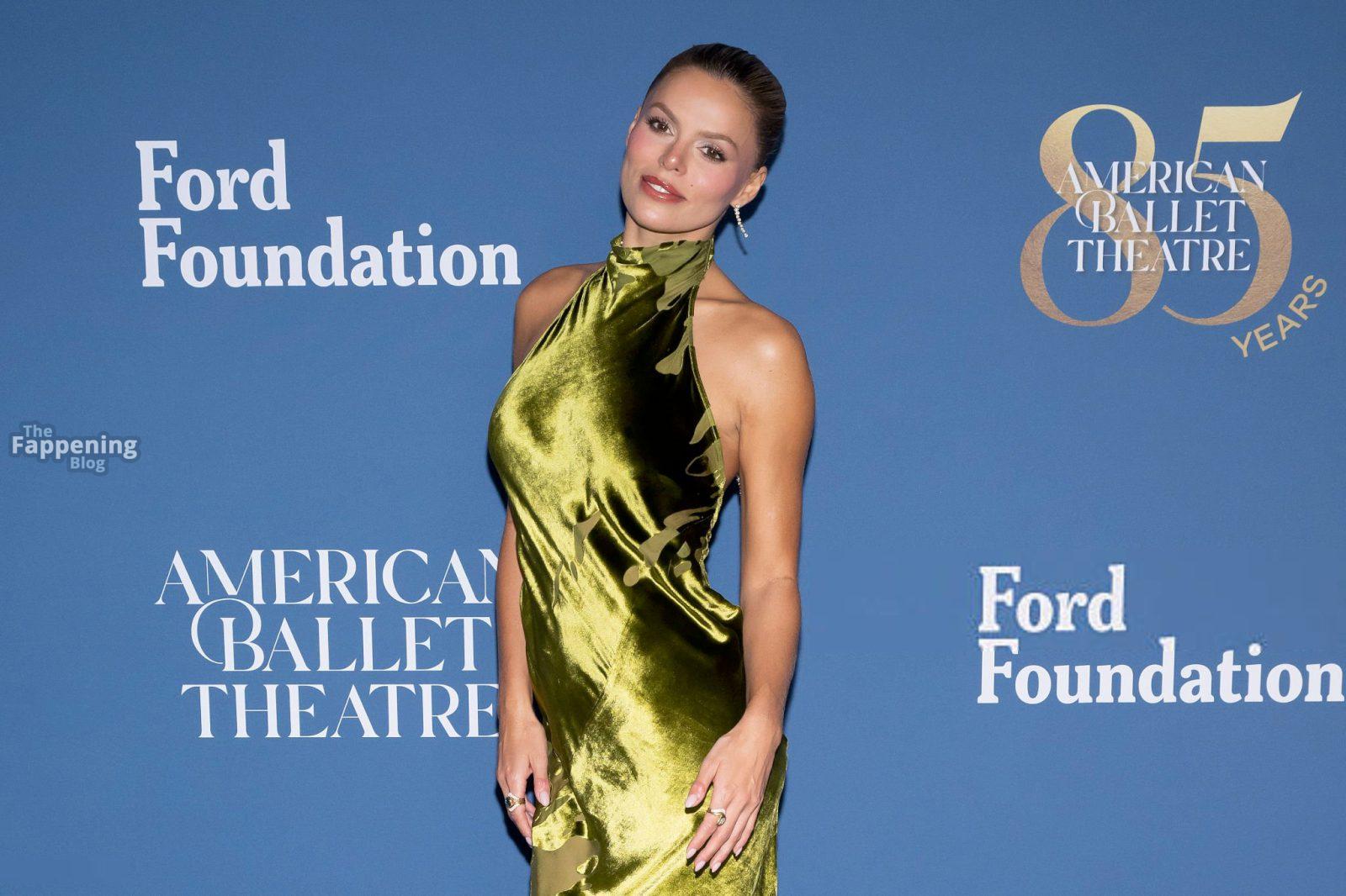 Brooks Nader was at the American Ballet Theatre’s Fall Gala at David Geffen Hall in New York City. She went braless in a plunging black velvet dress and showed off her pokies.