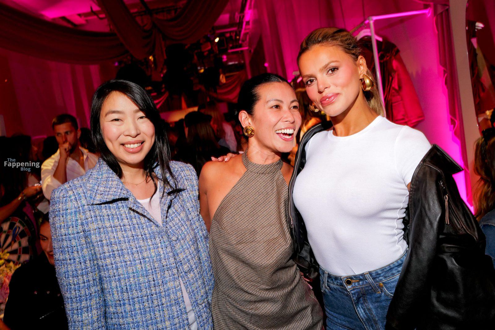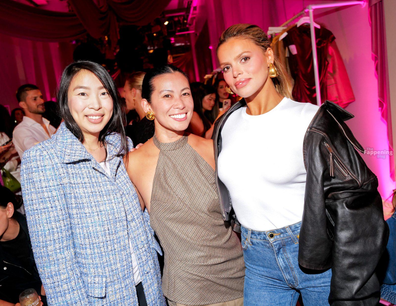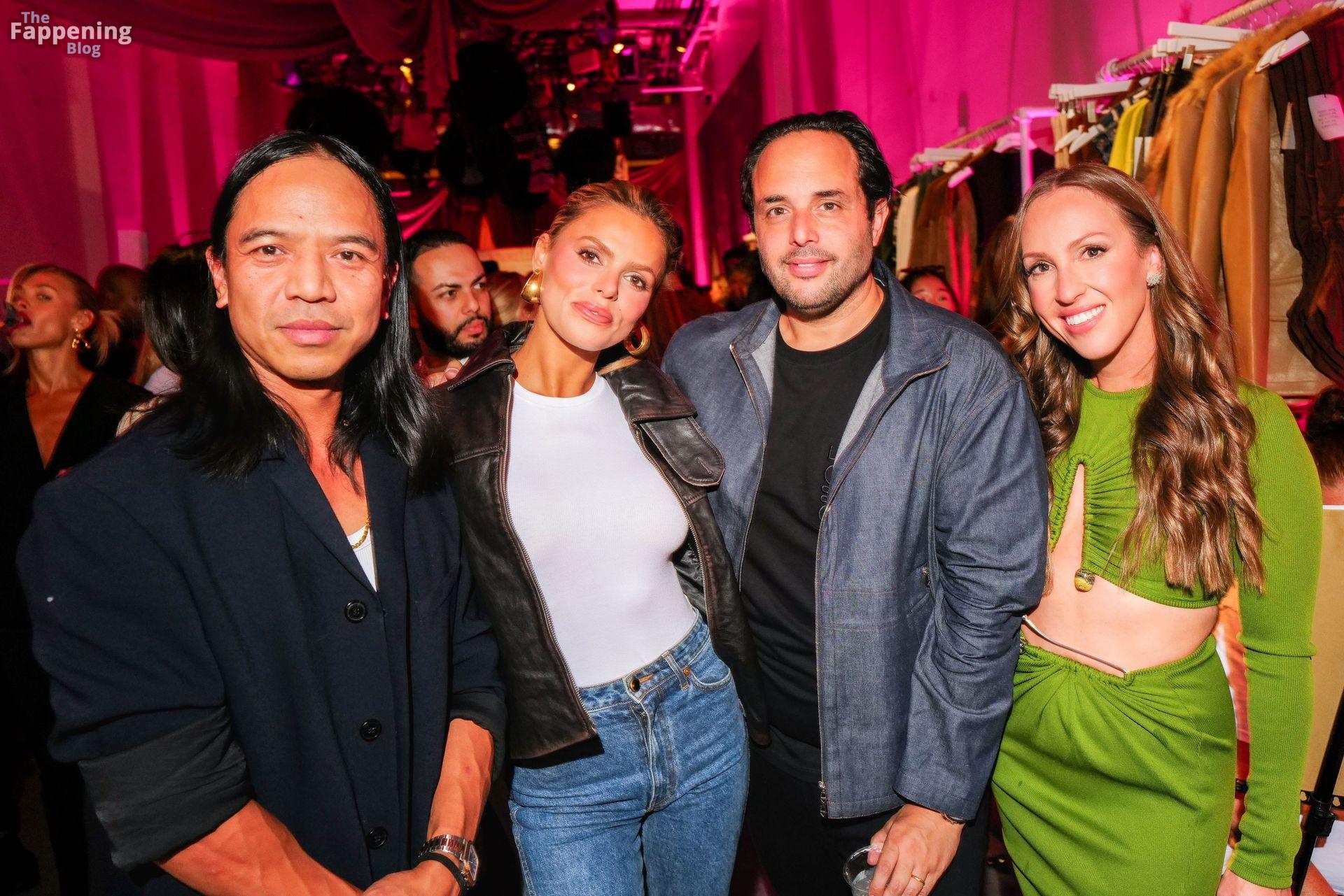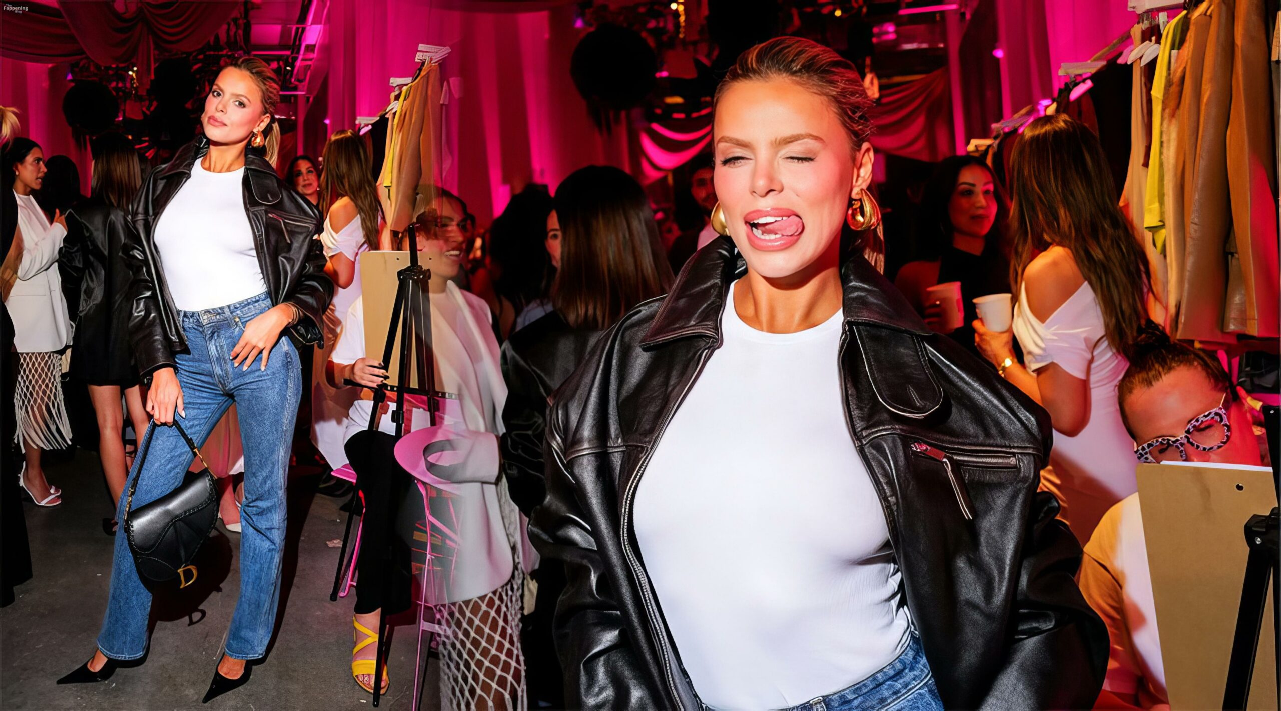 Check out Brooks Nader at the Vivrelle x REVOLVE|FWRD NYFW Pop-Up party in NYC on 09/11/2025, rockin’ a tight white tee, jeans, and leather jacket.