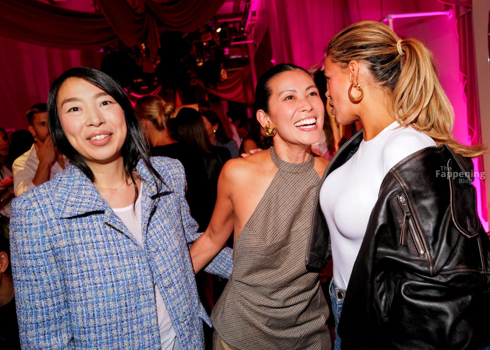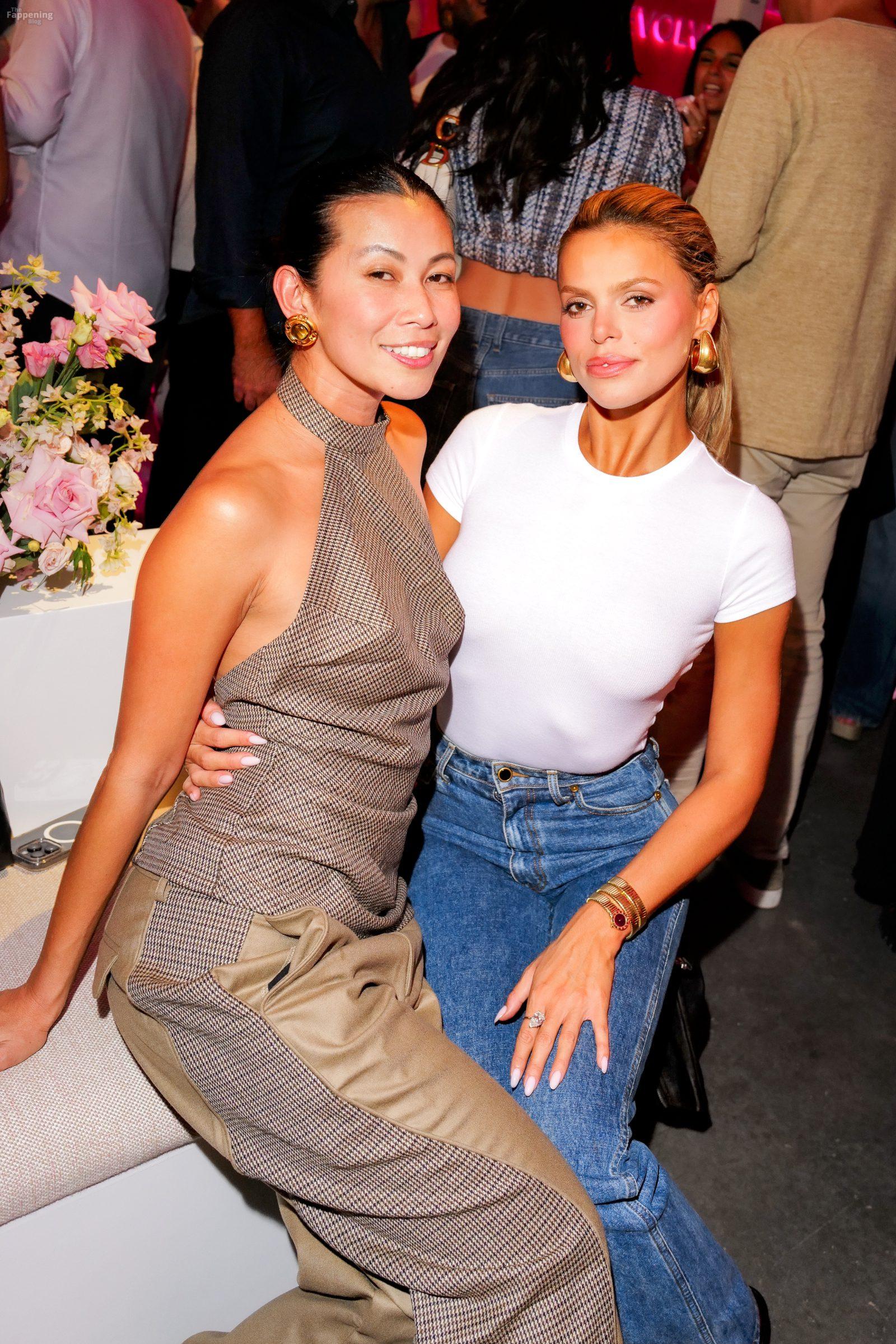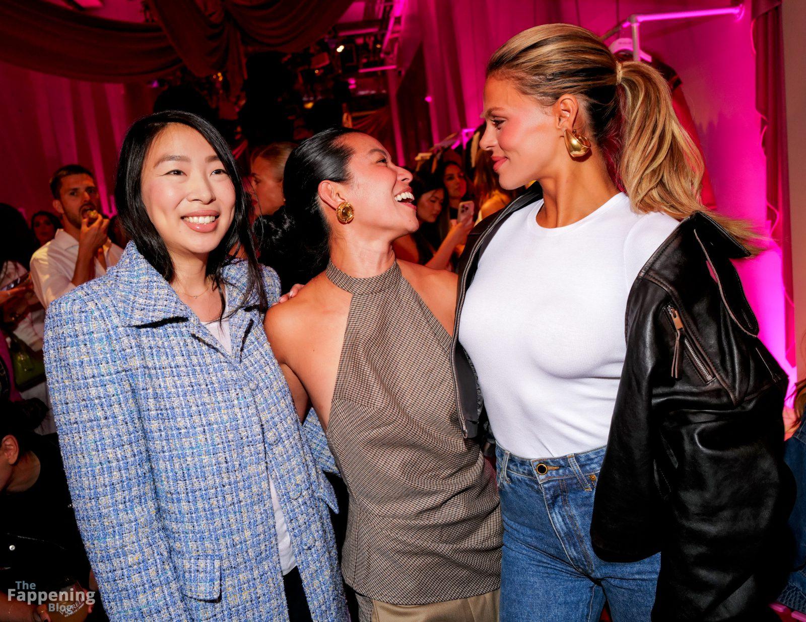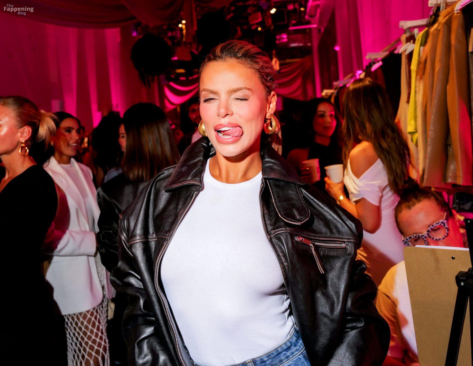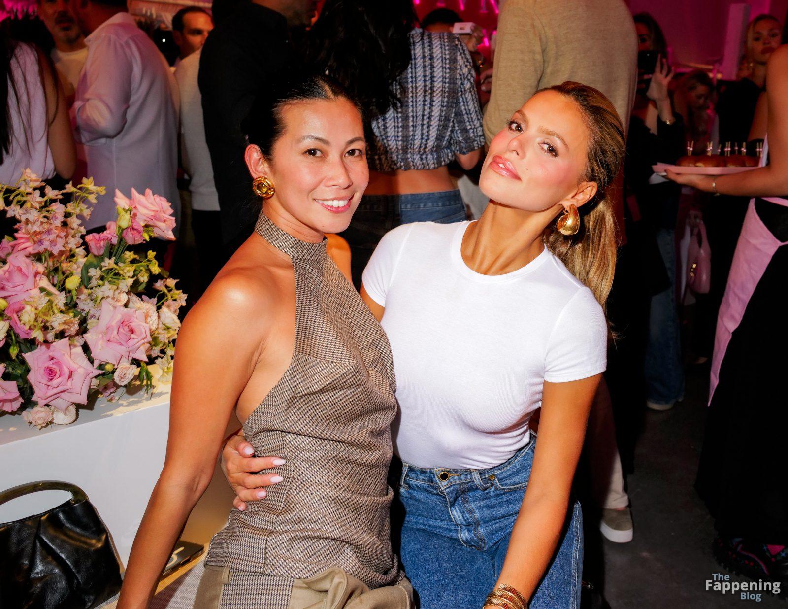Check out Brooks Nader at the Vivrelle x REVOLVE|FWRD NYFW Pop-Up party in NYC on 09/11/2025, rockin’ a tight white tee, jeans, and leather jacket.
