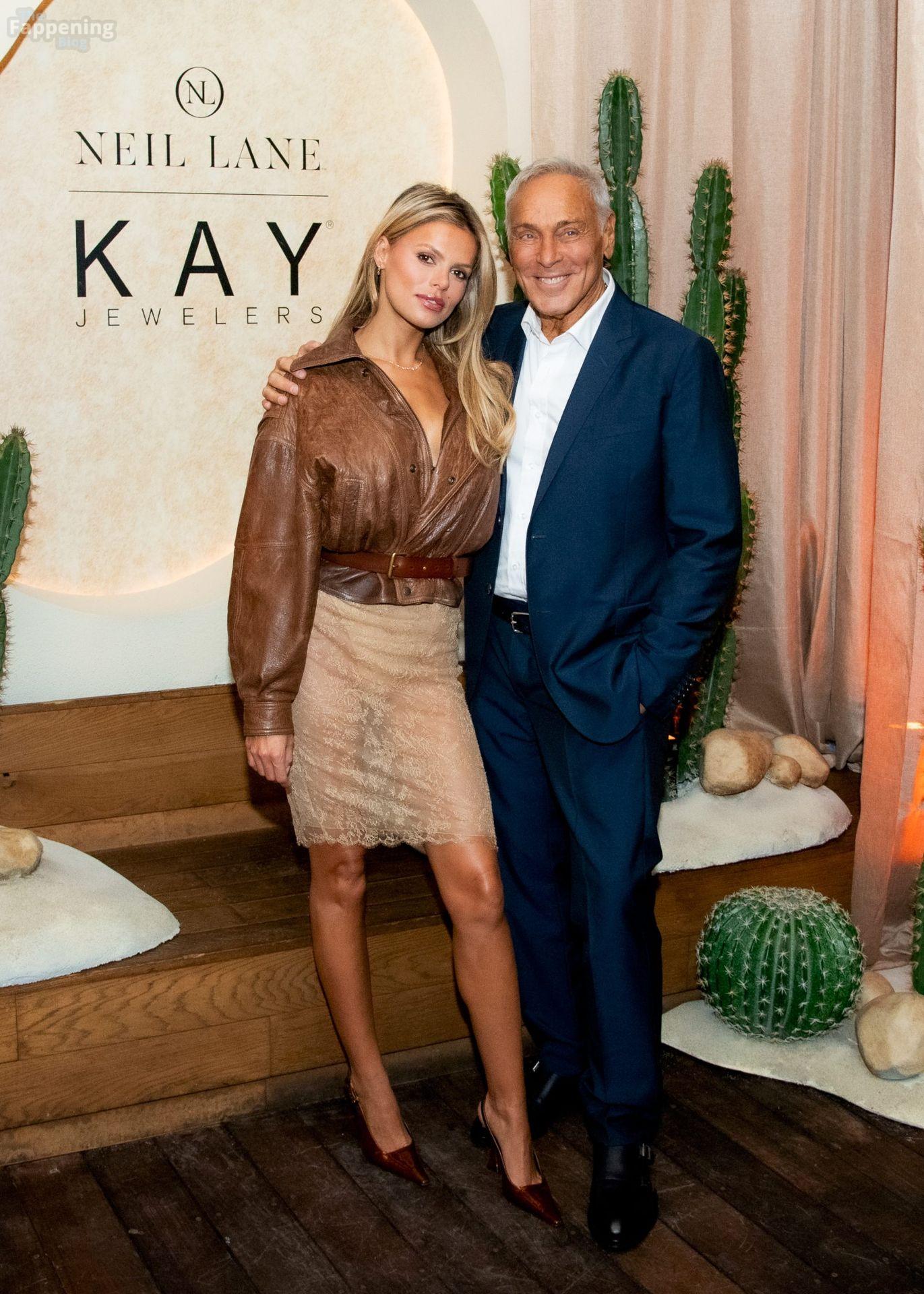 Brooks Nader rocked a sheer lace skirt at the Desert Diamonds launch. Her panties were out there, with her fit legs on full show.