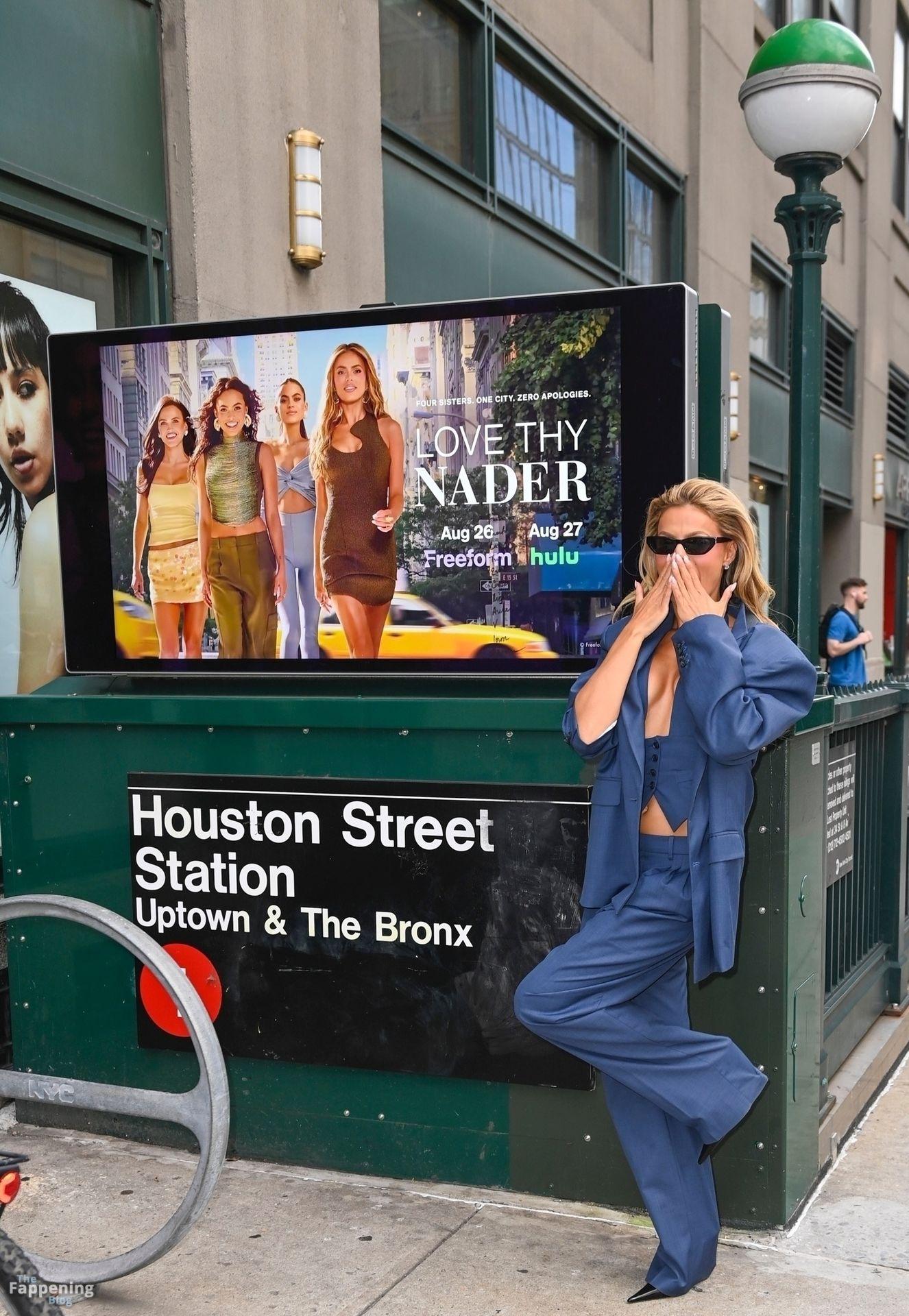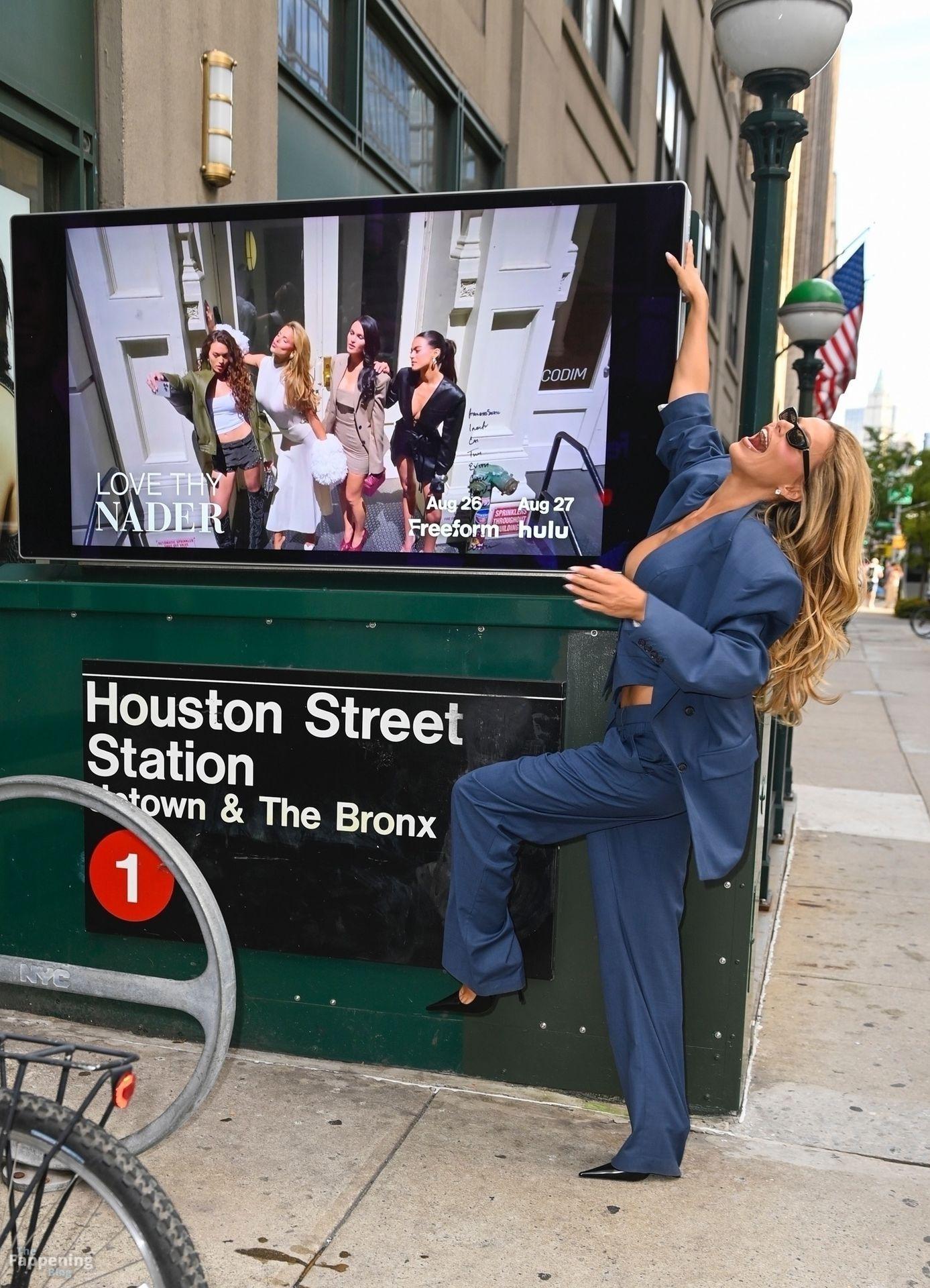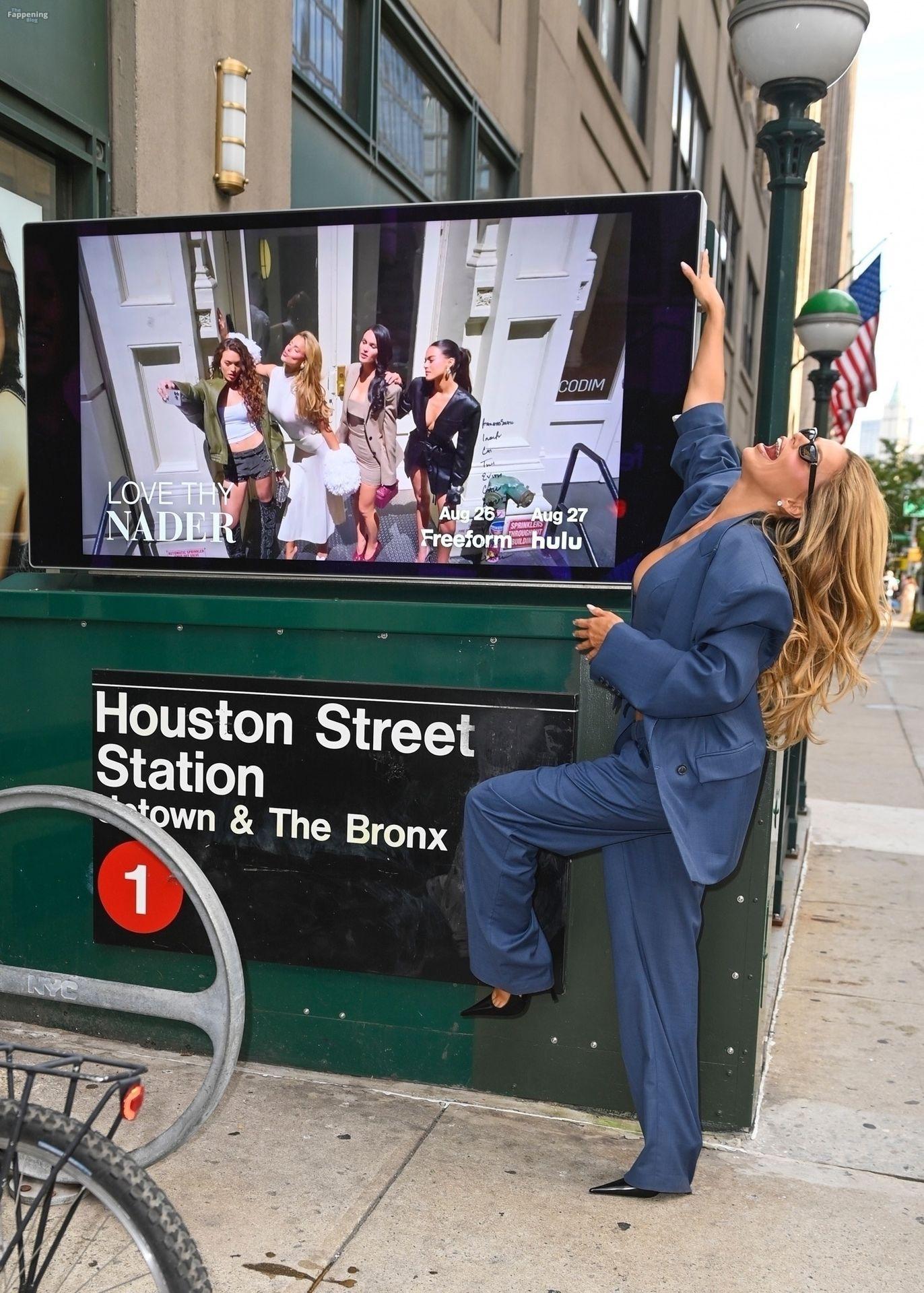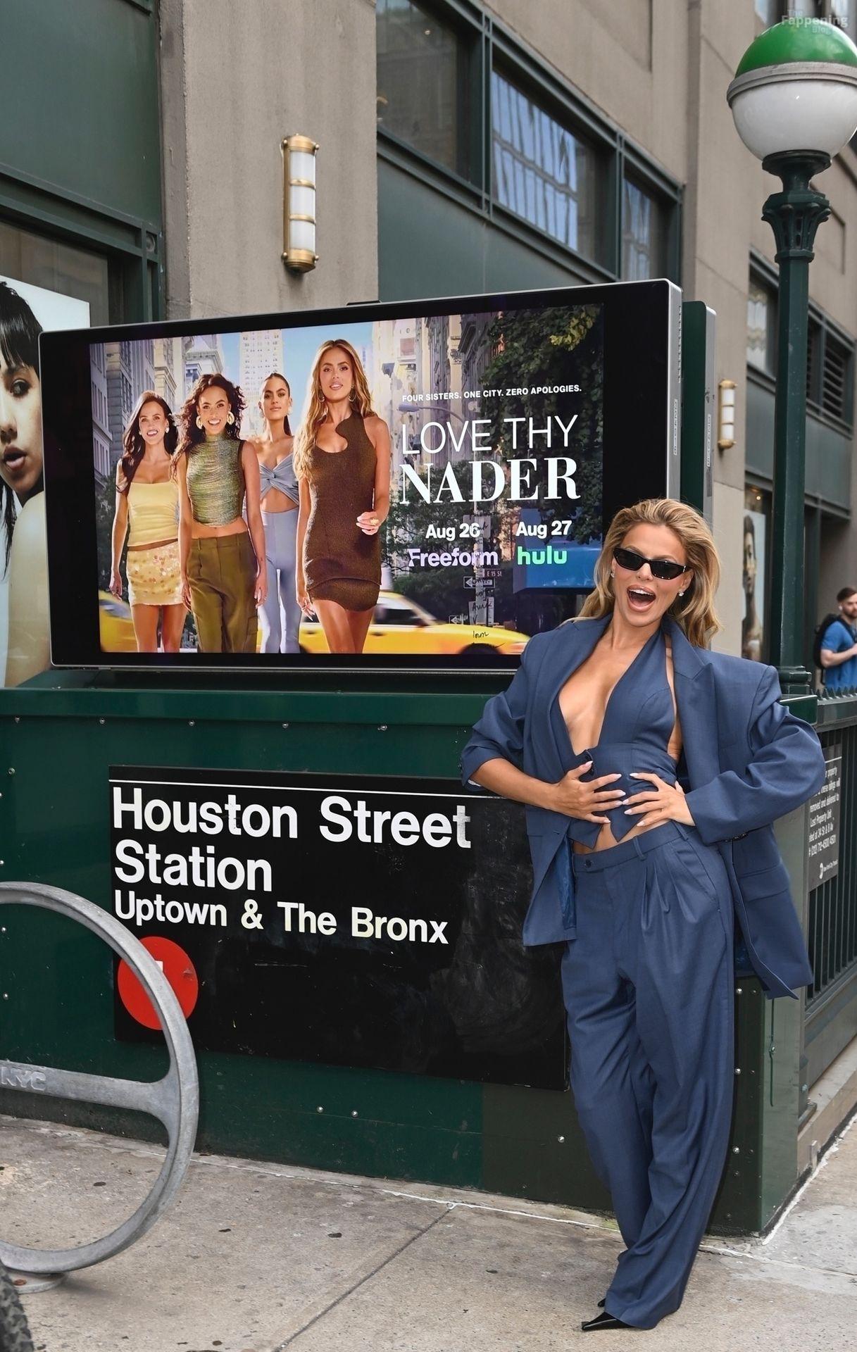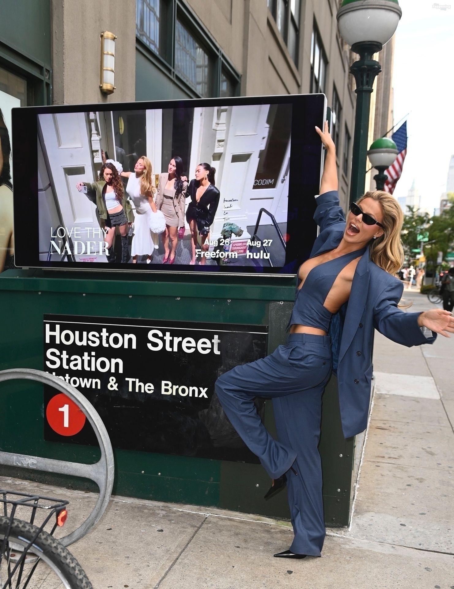 Brooks Nader was seen in NYC chillin’ by a subway ad for her new reality show Love Thy Nader, starrin’ her and her three sisters – Mary Holland, Grace Ann, and Sarah Jane. She rocked a slick blue suit, with her sisters also flexin’ their sharp styles, hypin’ up the show’s big launch.