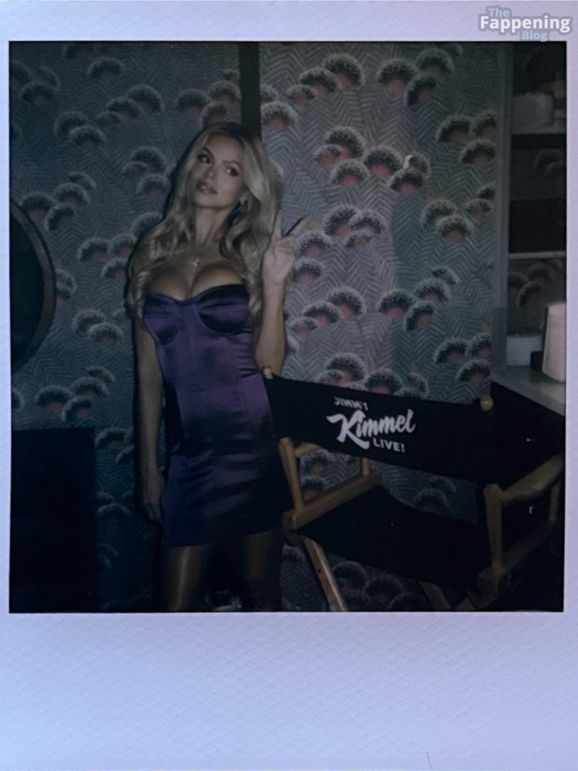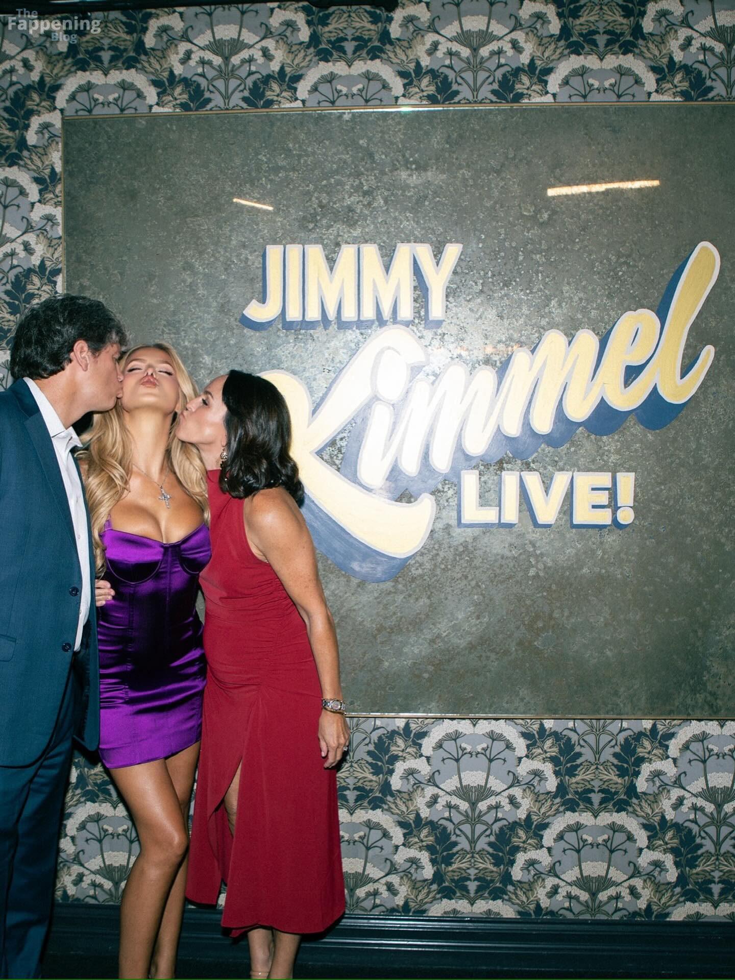 Model and reality TV star Brooks Nader’s rack was almost poppin’ outta a tight purple satin dress in this Jimmy Kimmel Live photoshoot by Isabelle Passaglia.