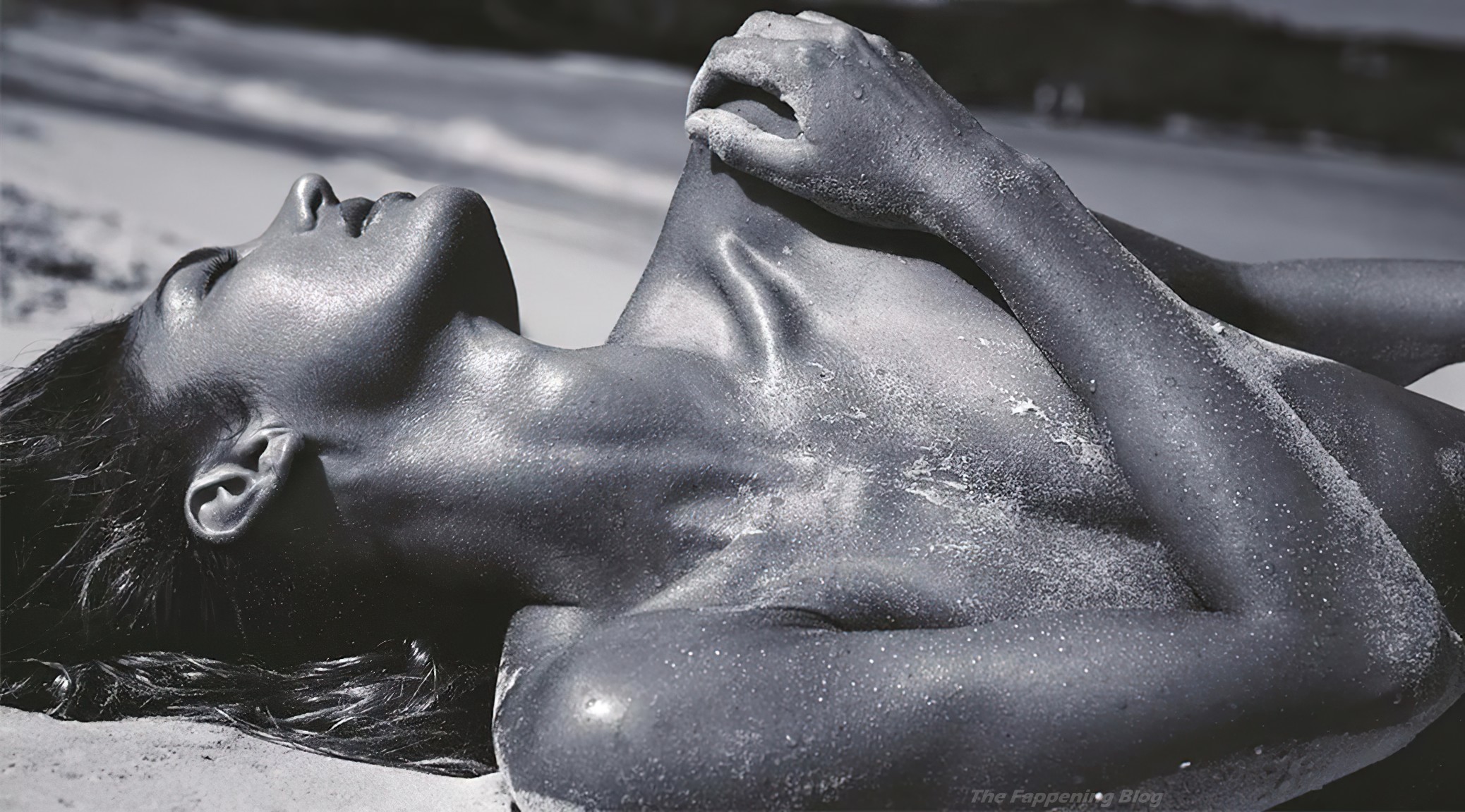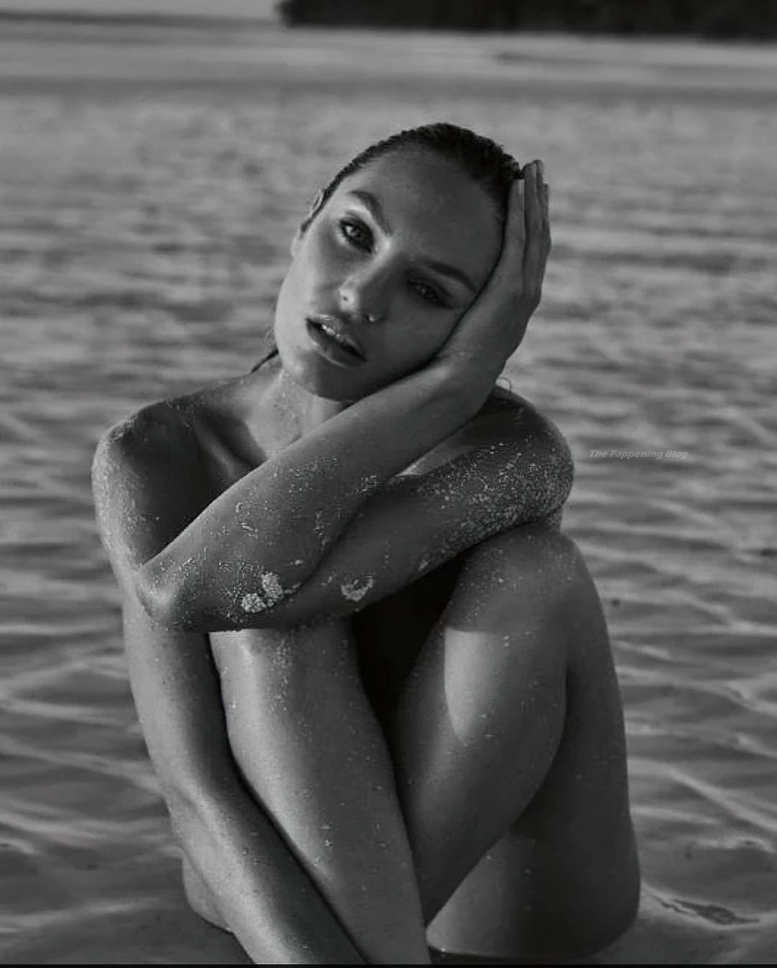 Model Candice Swanepoel gets wet and shows her nude breasts posing almost naked in a photoshoot by David Roemer for Madame Figaro Paris magazine April 2021 Issue.
