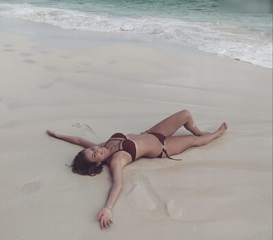 American actress and singer Chloe Bennet shows her right pokie, posing braless in a tank top for Irwin Rivera’s camera – Instagram, 10/15/2020.