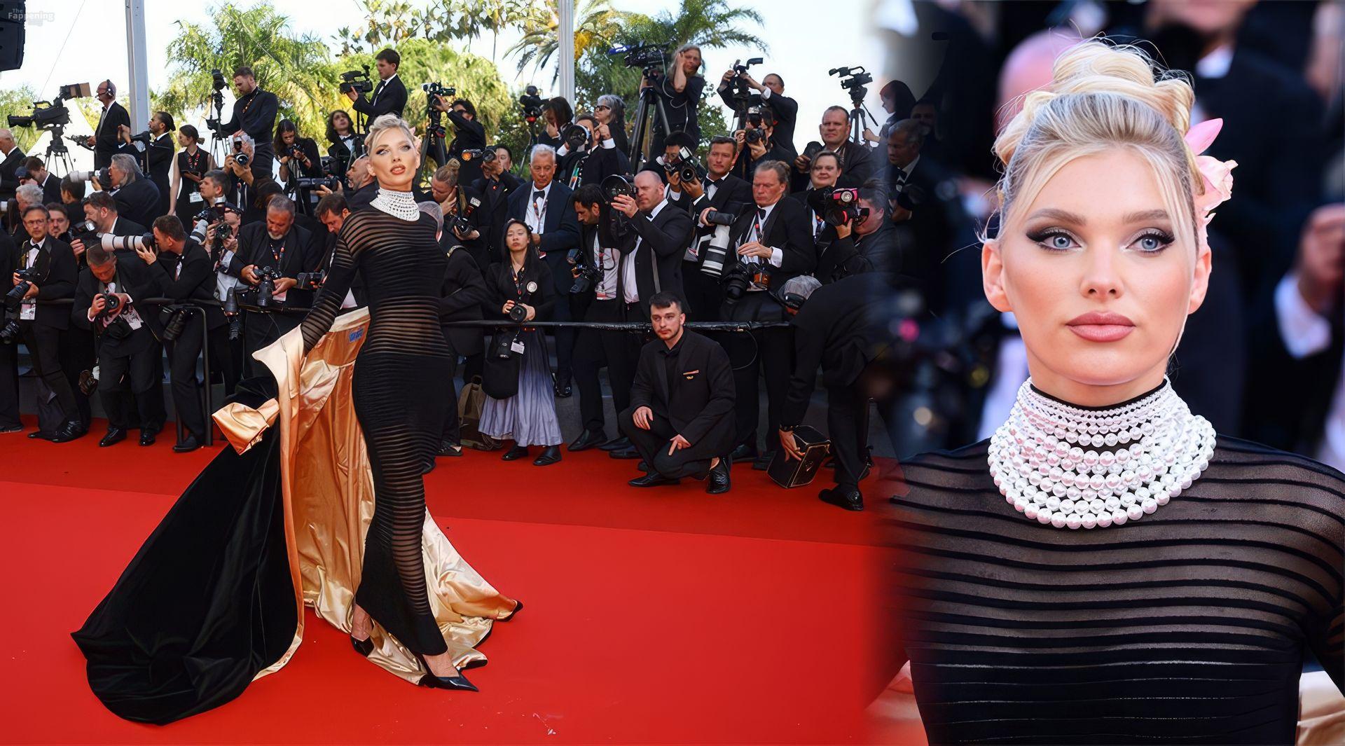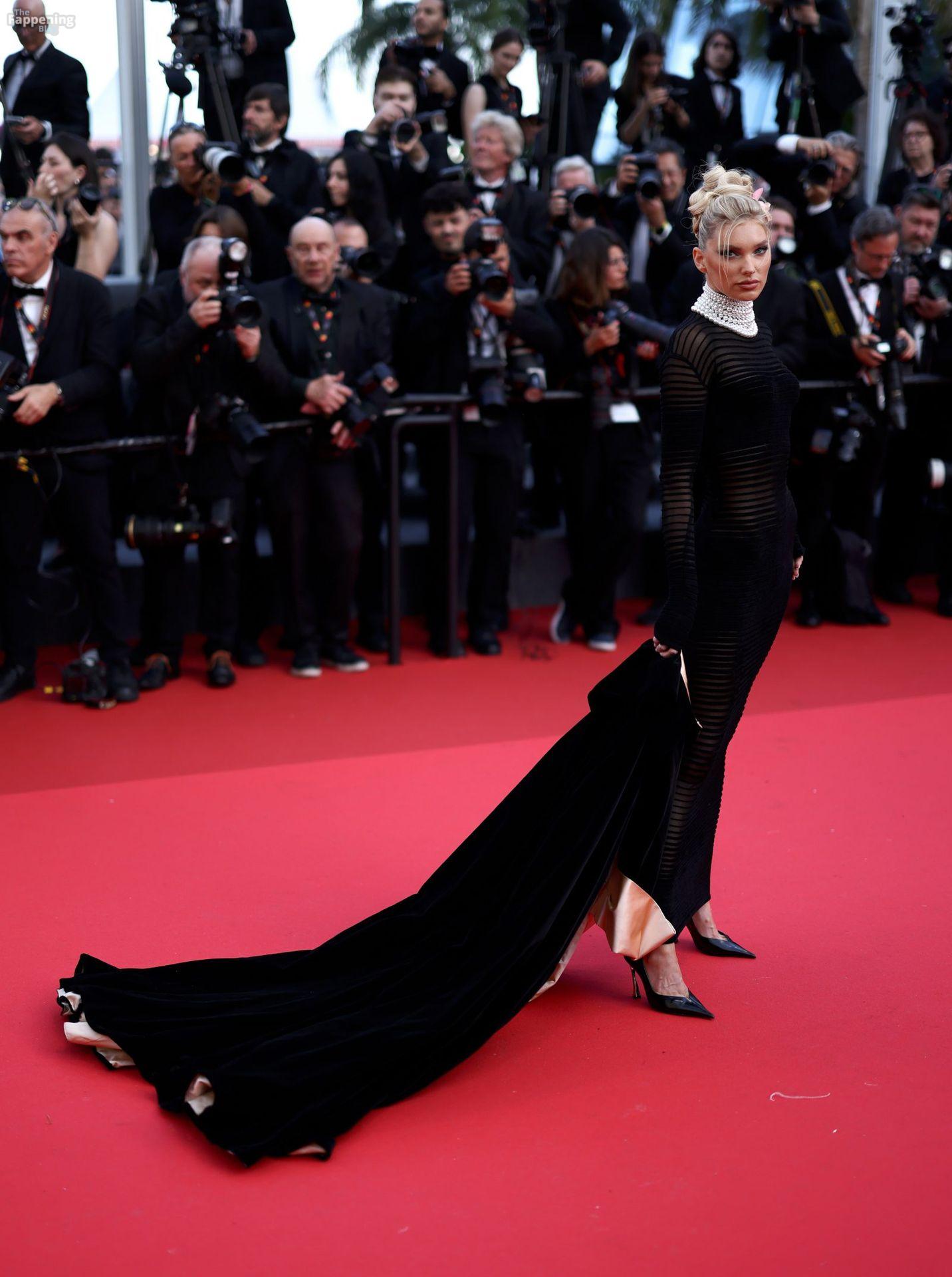 Model Elsa Hosk was at the 78th Cannes Film Festival in a sheer black striped dress. She was among celebs hittin’ the red carpet for “The History of Sound” premiere.