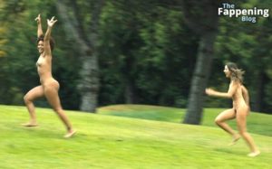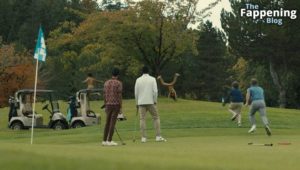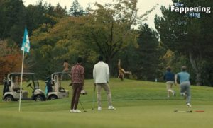 Nah she popped in to see the greenskeeper and he gave her rough a trim and turned it into a putting greenIn the first part where she is streaking across the golf course she has a big fluffy bush but near the end where she hugs the other woman she has no bush at all.