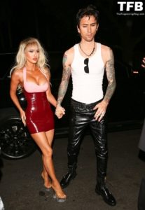 Arrives at Clive Davis’ Grammy Party at Beverly Hilton in Beverly Hills 02/03/2023