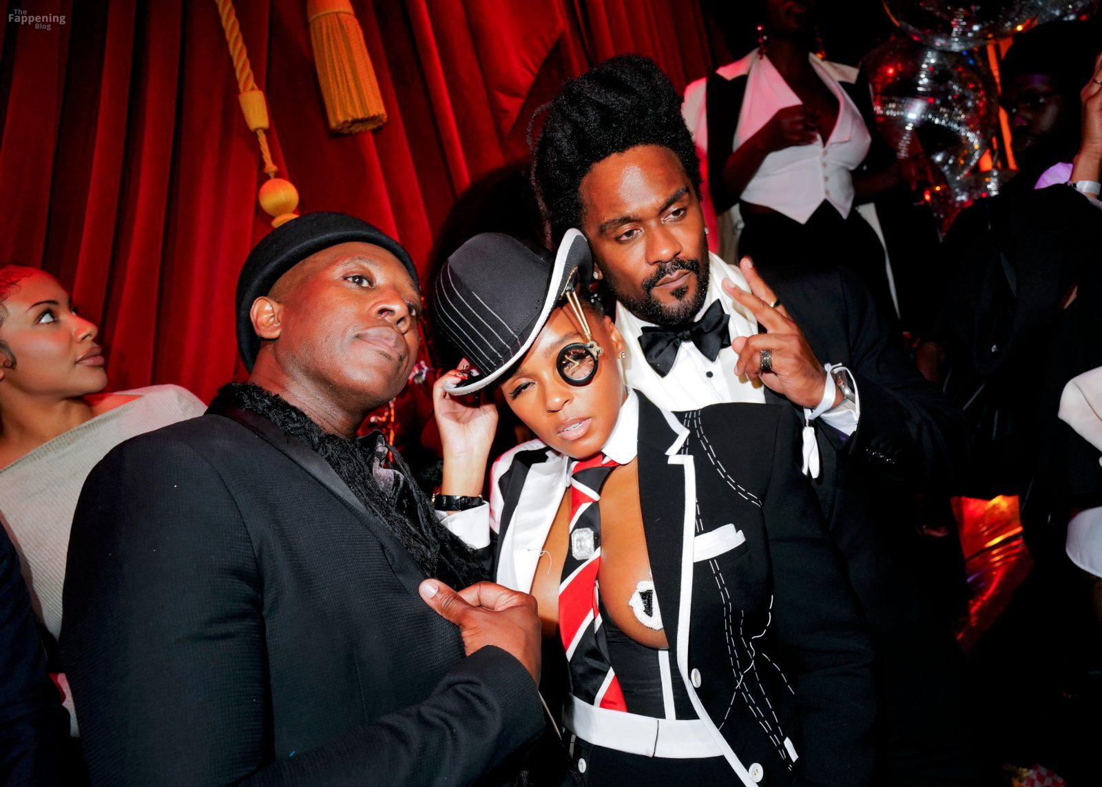 Janelle Monáe was at the 2025 Met Gala after-party, goin’ almost nude with just bold nipple pasties under an open blazer, showin’ off her big breasts.