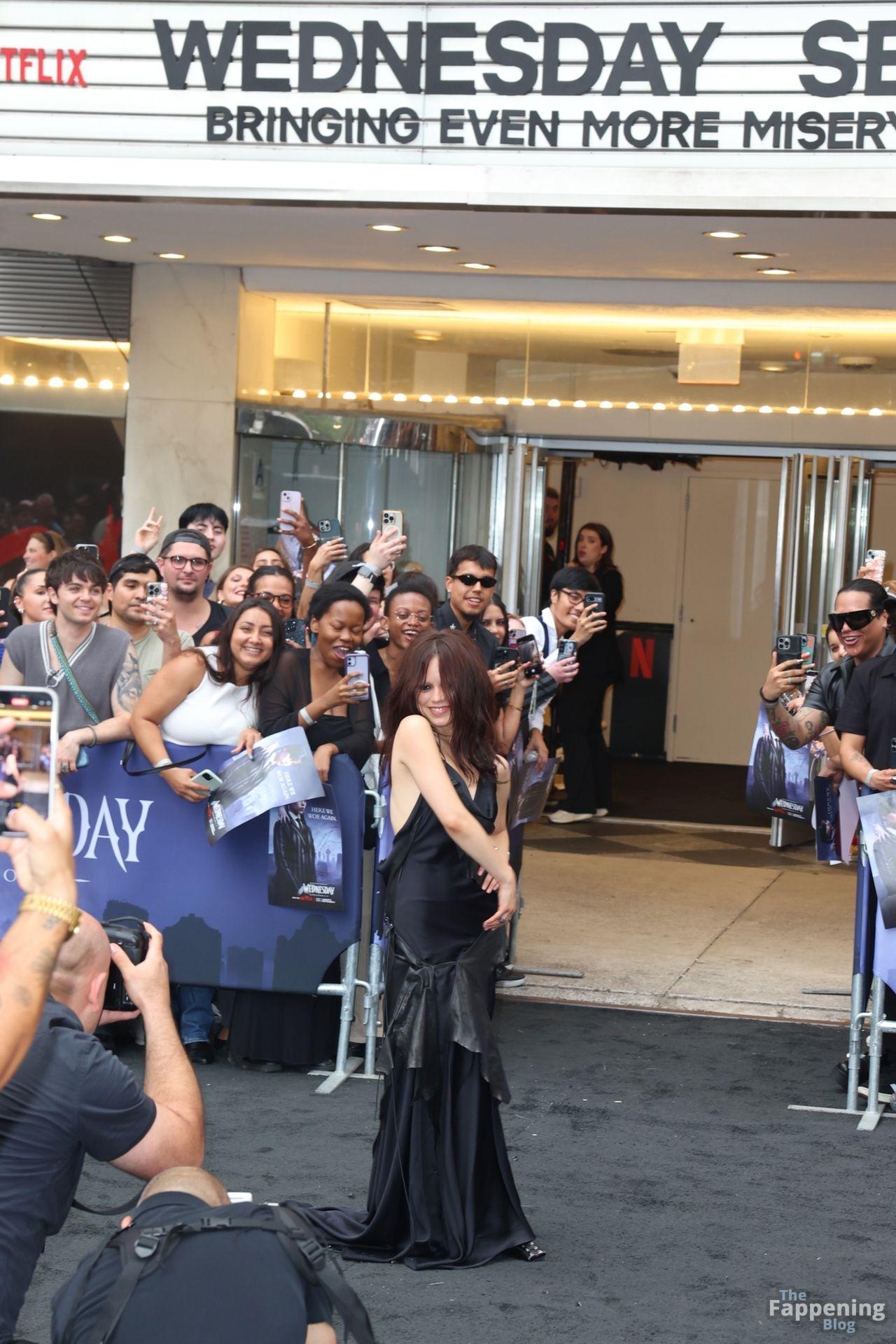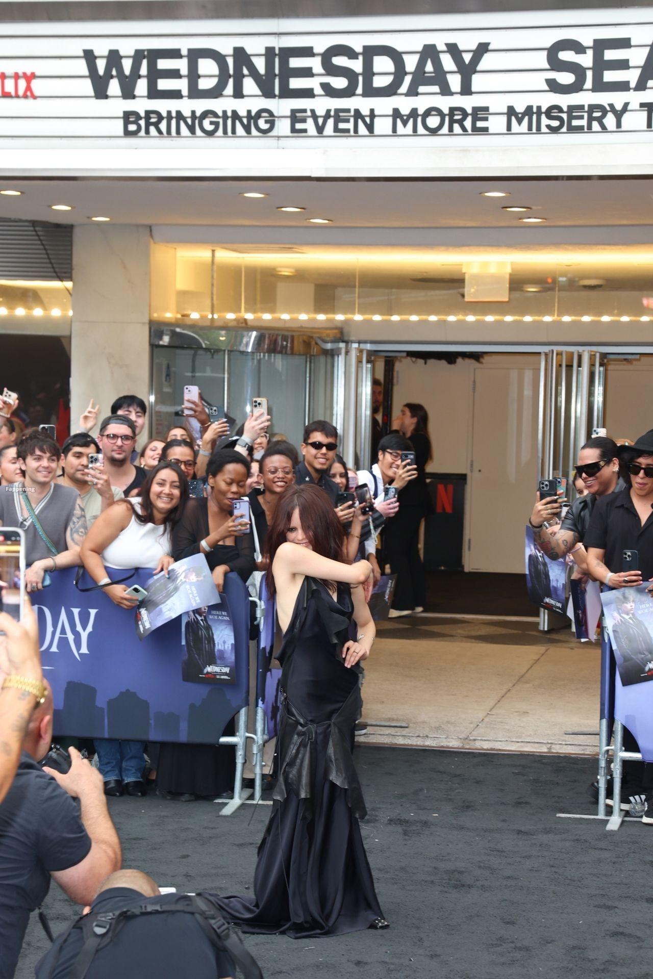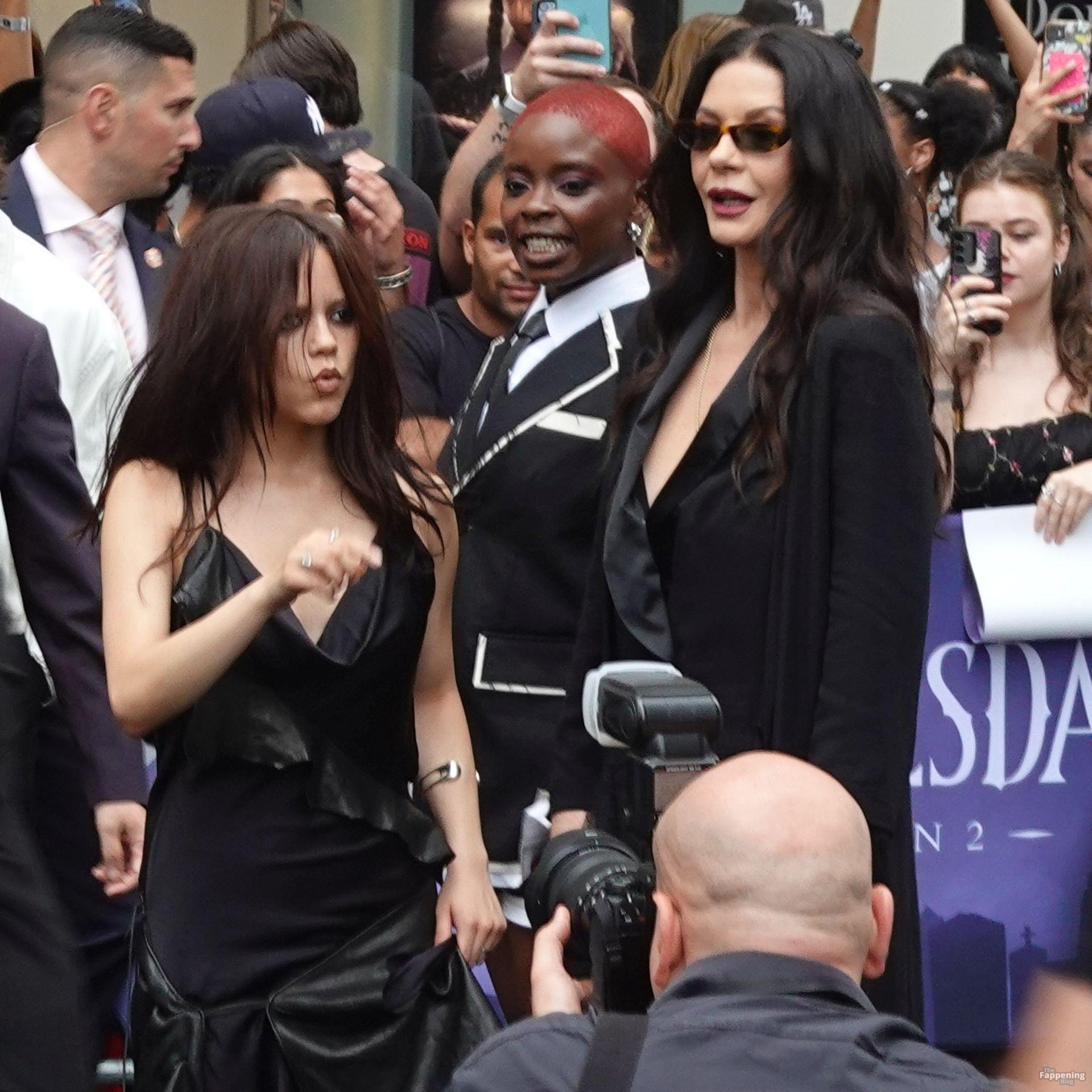 Jenna Ortega was pictured at the “Wednesday” Season 2 premiere in NYC, rockin’ a super low-cut black dress that showed off her tits. The actress, playin’ the iconic character, was all smiles posin’ for pics and chattin’ with fans at the big event.