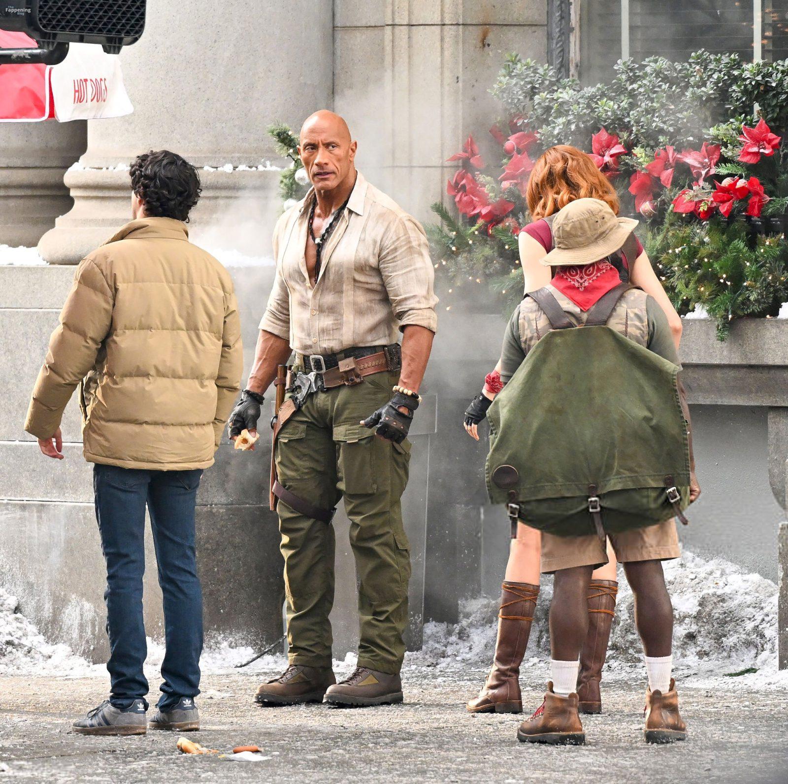 Dwayne Johnson, Jack Black, Karen Gillan, and Kevin Hart were spotted shooting new scenes in Los Angeles for the next Jumanji flick.