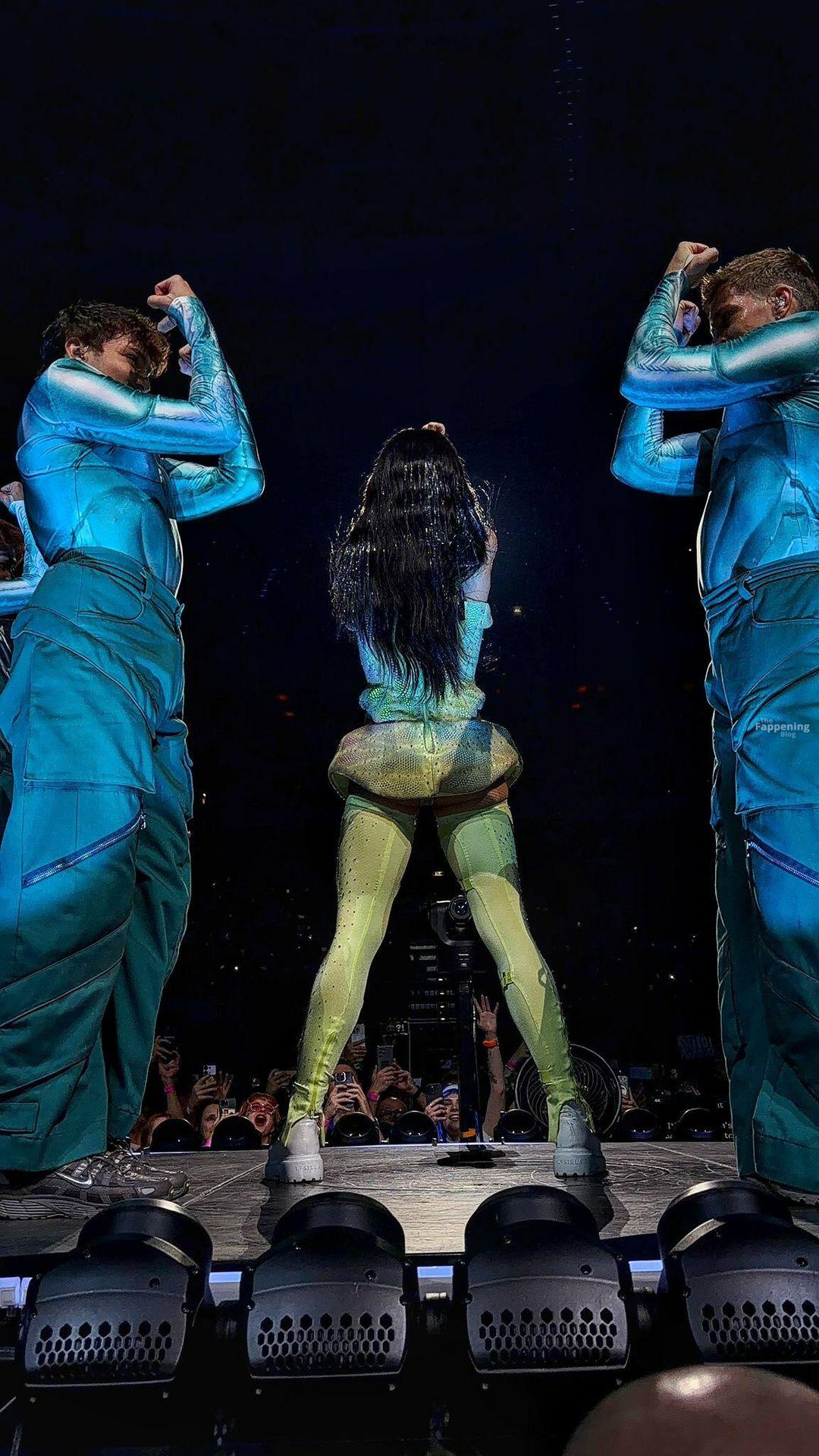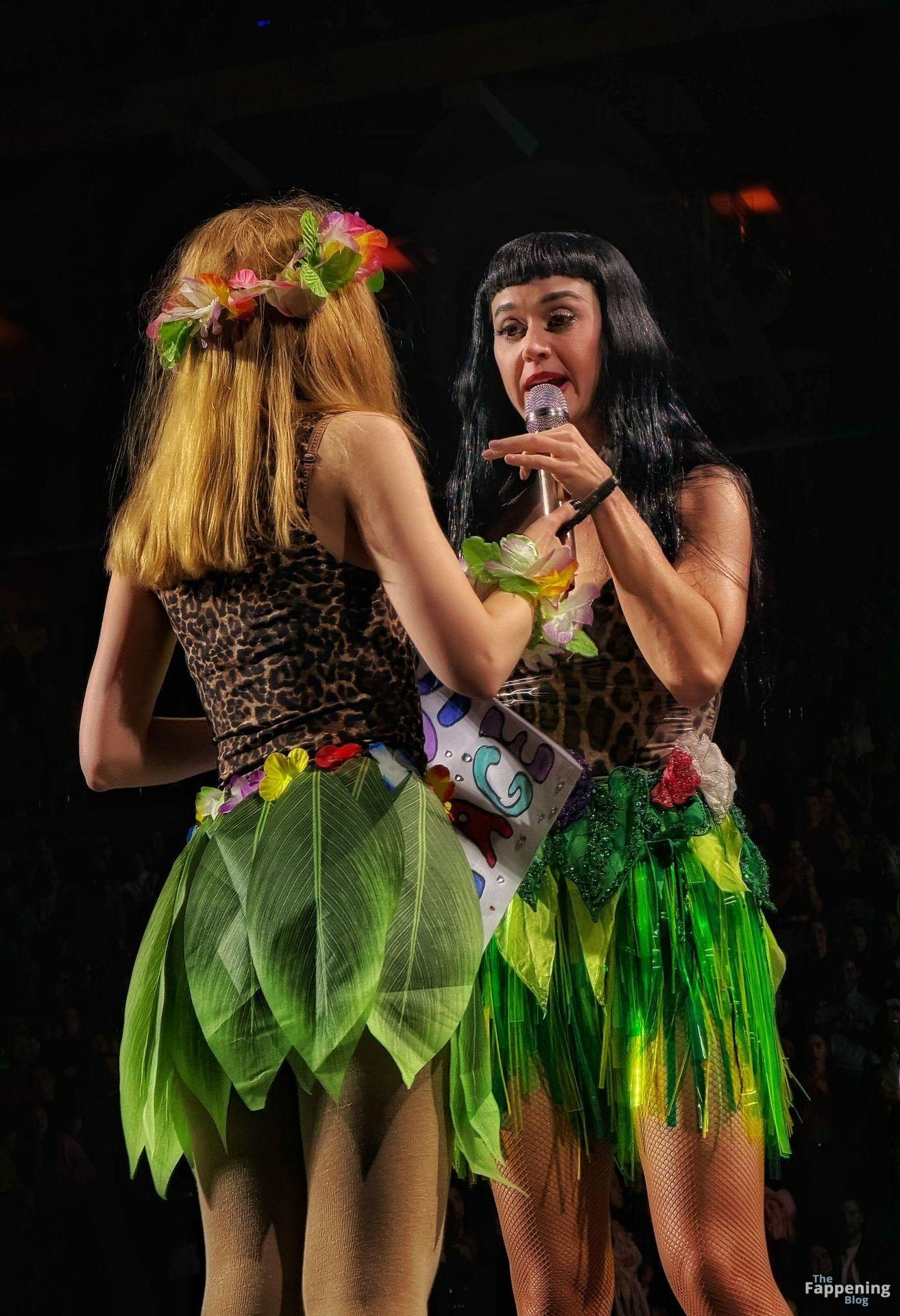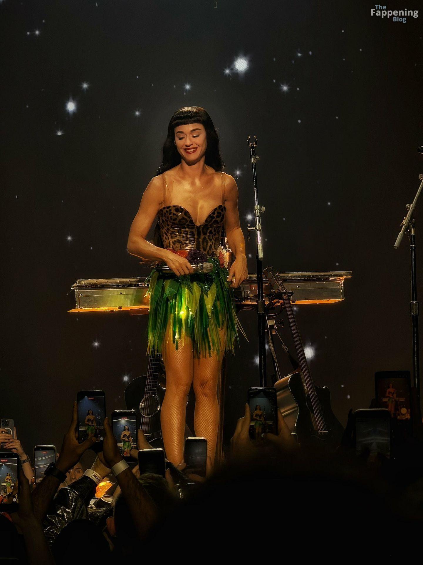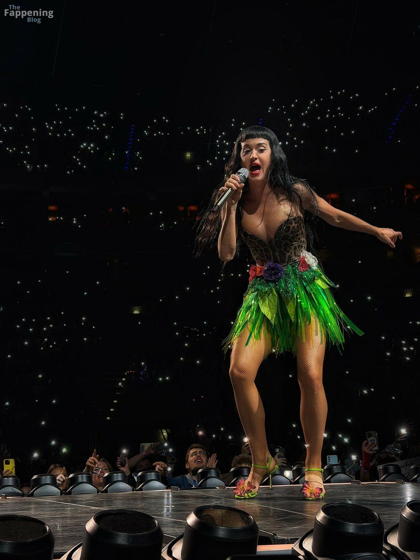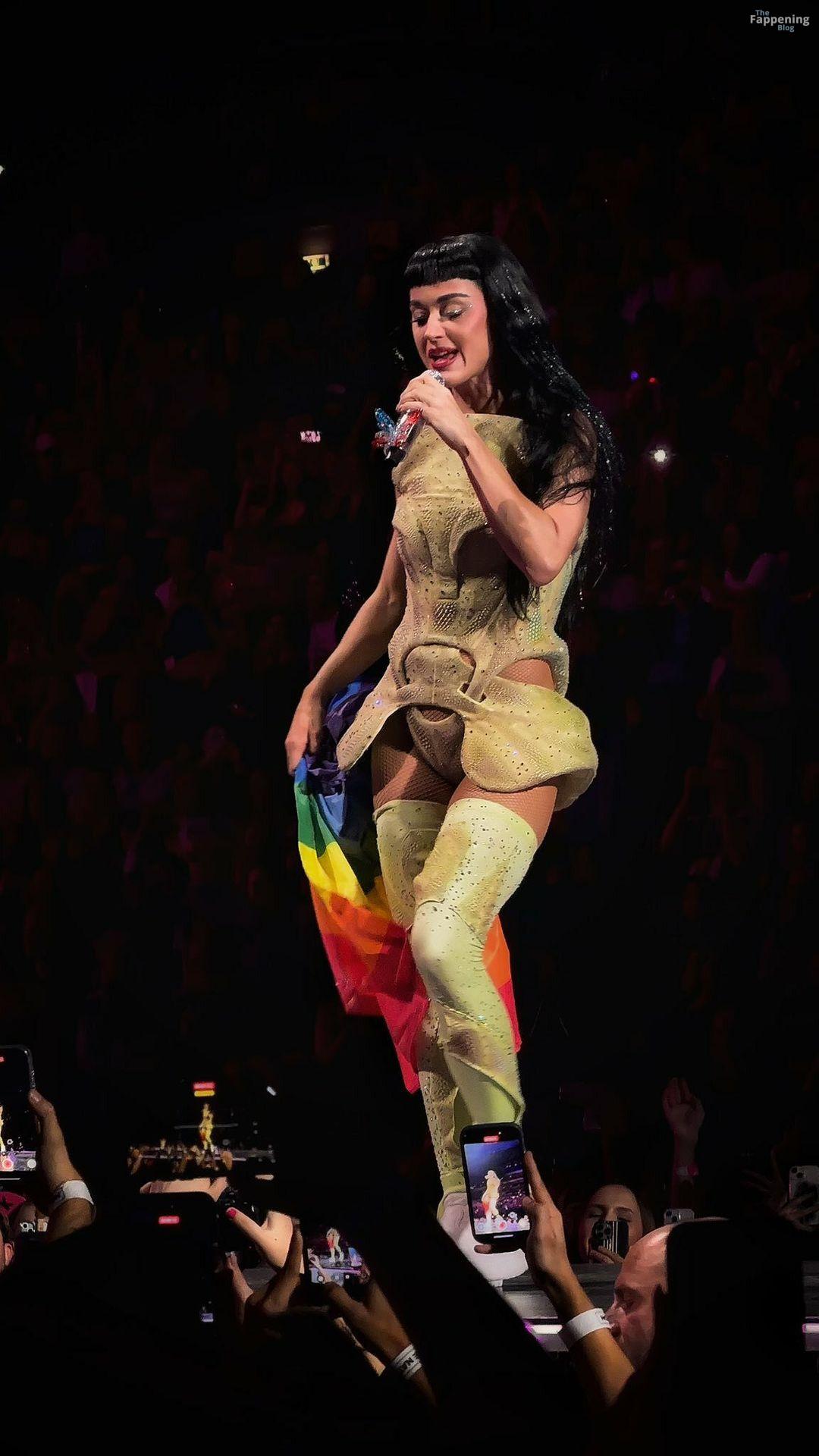 Katy Perry performed on stage in Prague, rockin’ outfits that flashed massive cleavage. She hit the O2 Arena on her 2025 tour stop, posin’ bare and bare in a red lace bodysuit, then switched to a sparkly mini with thigh-high boots.