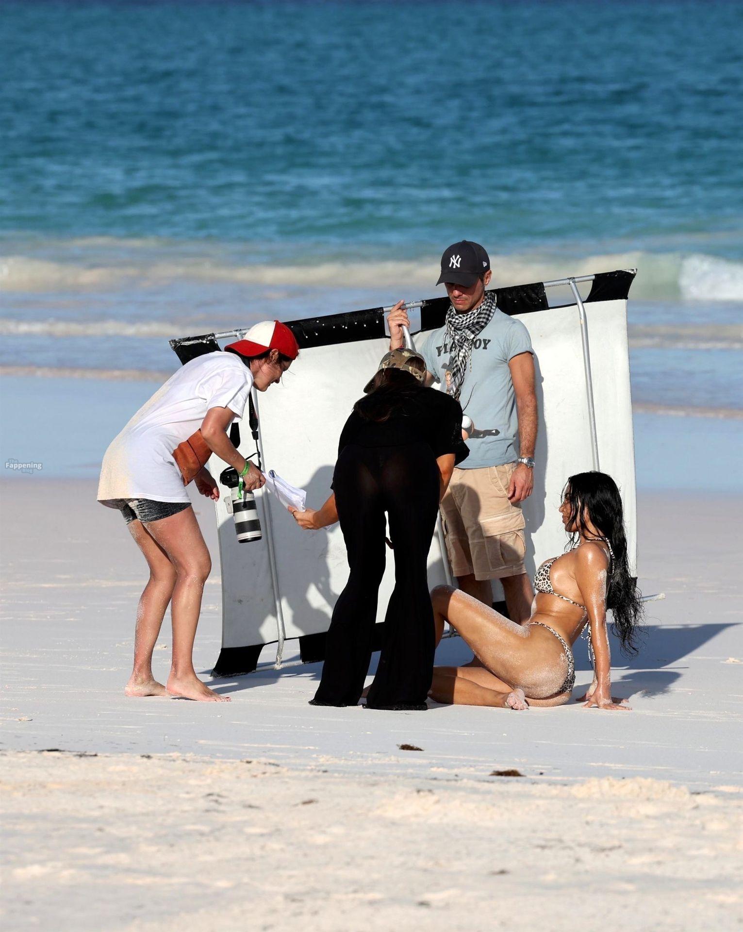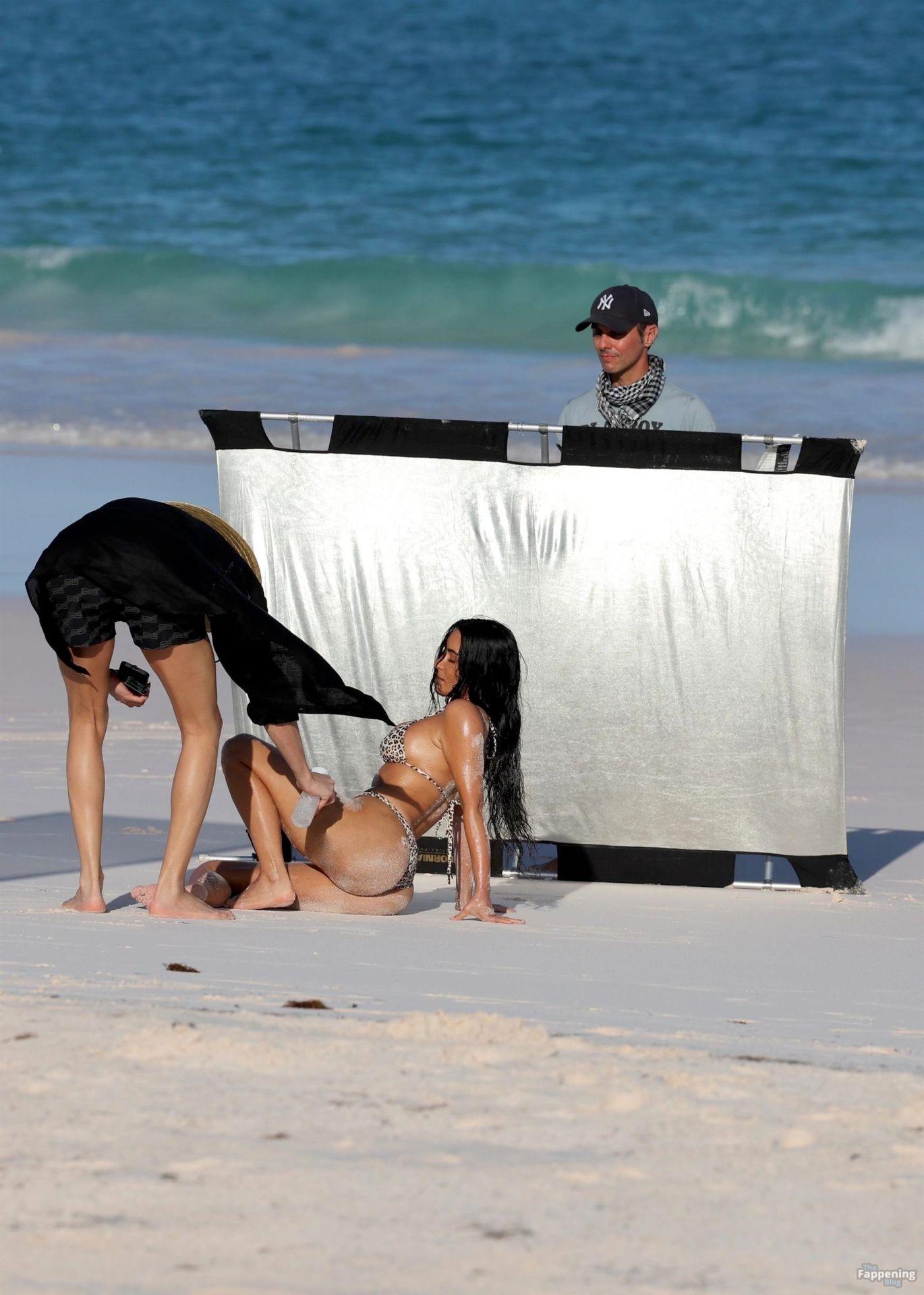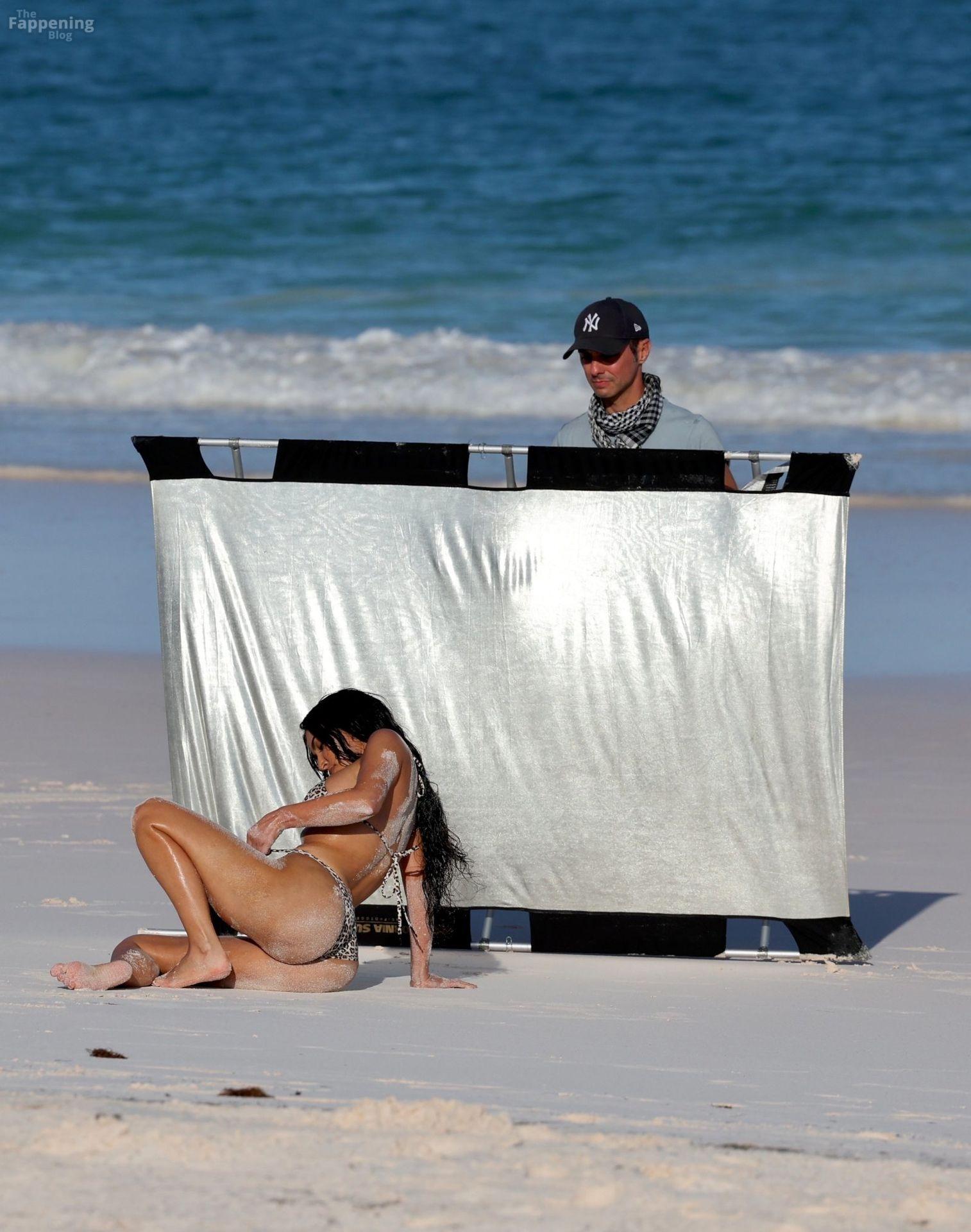 The Fappening Star is seen showing off her famous figure on the beach after attending the 50th SNL Anniversary show where she had a run in with her ex-boyfriend Pete Davidson.