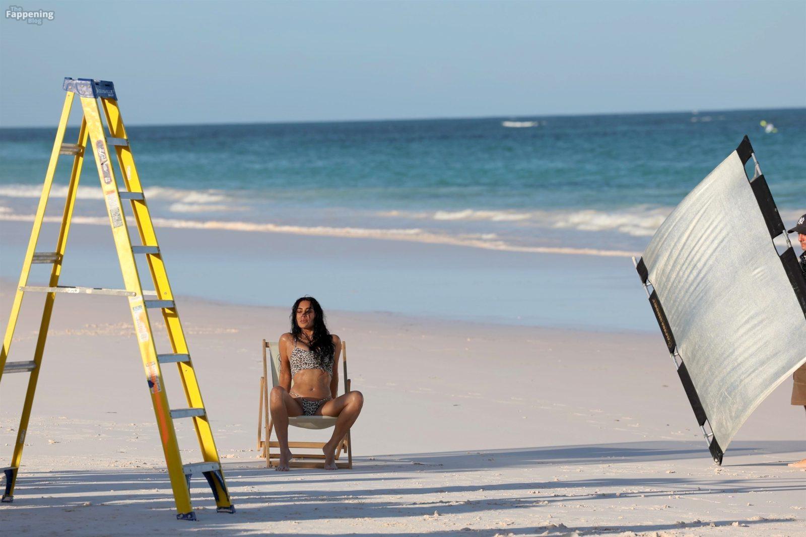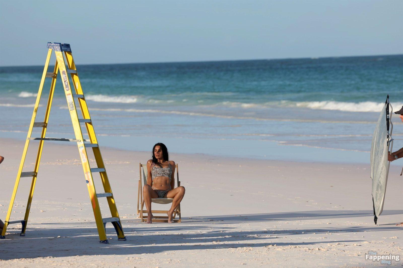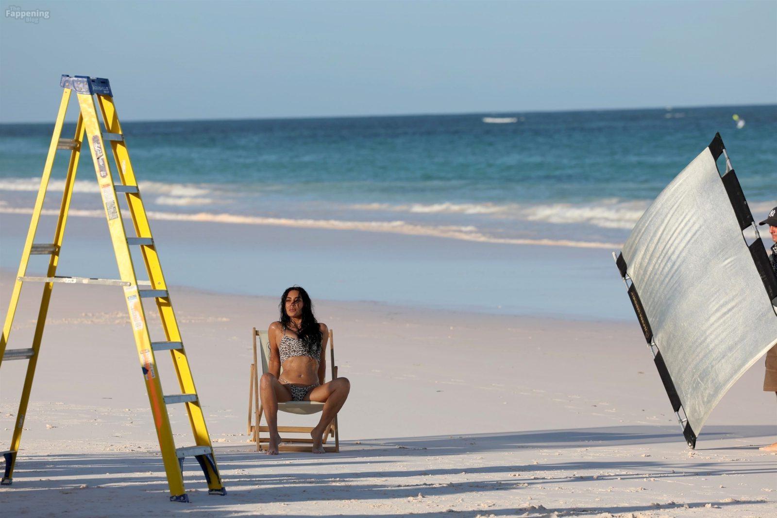 The Fappening Star is seen showing off her famous figure on the beach after attending the 50th SNL Anniversary show where she had a run in with her ex-boyfriend Pete Davidson.