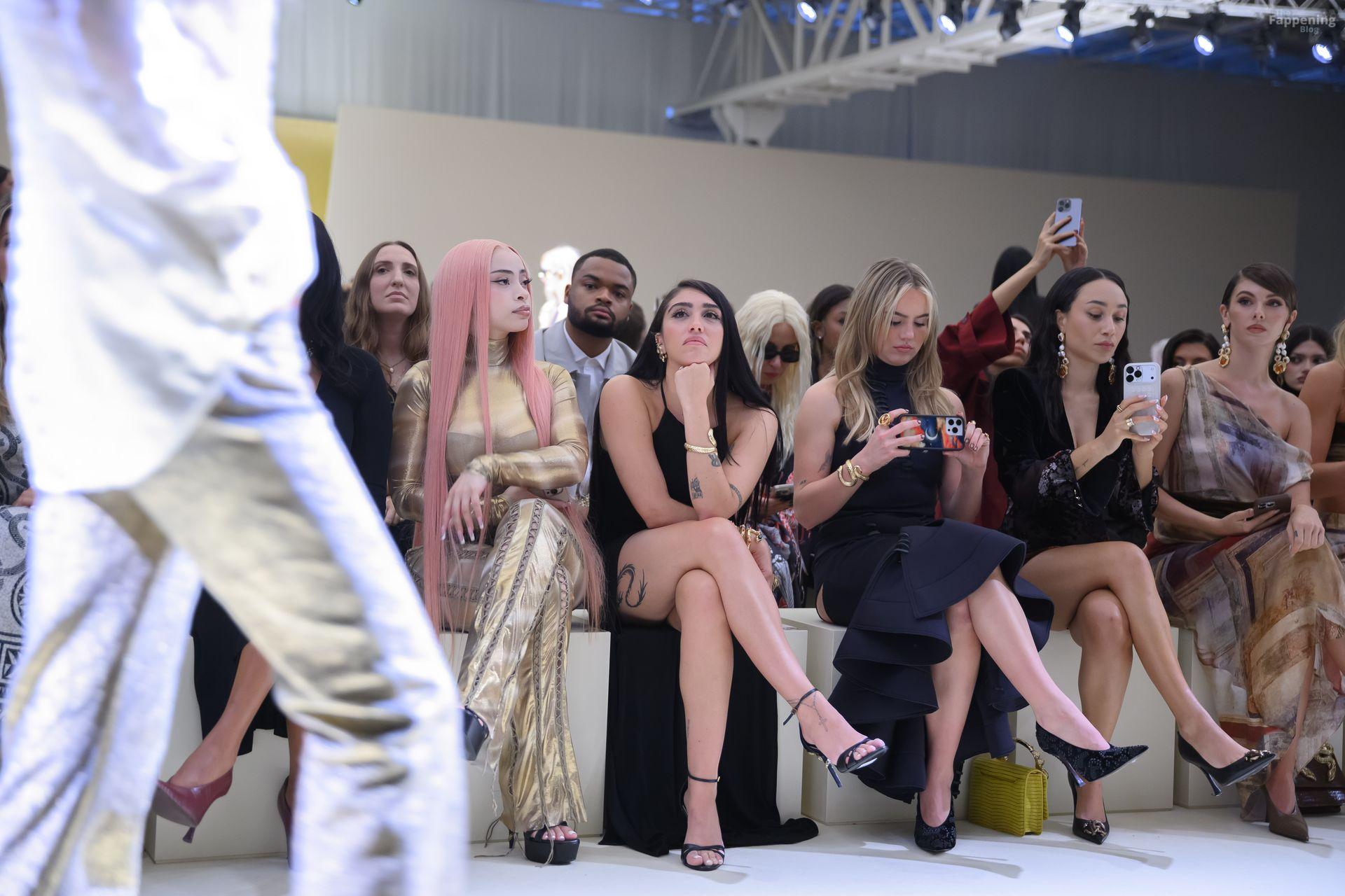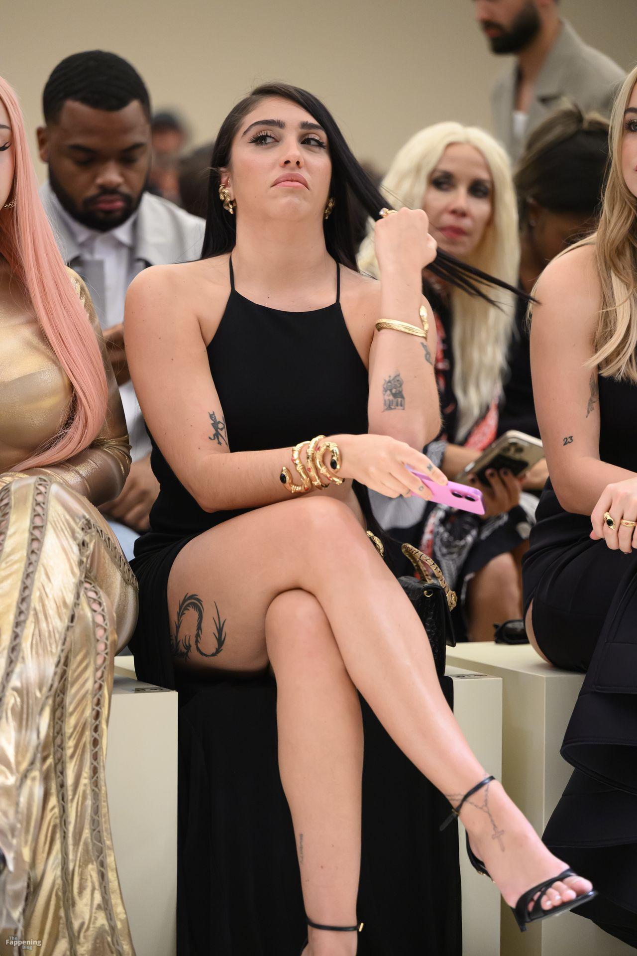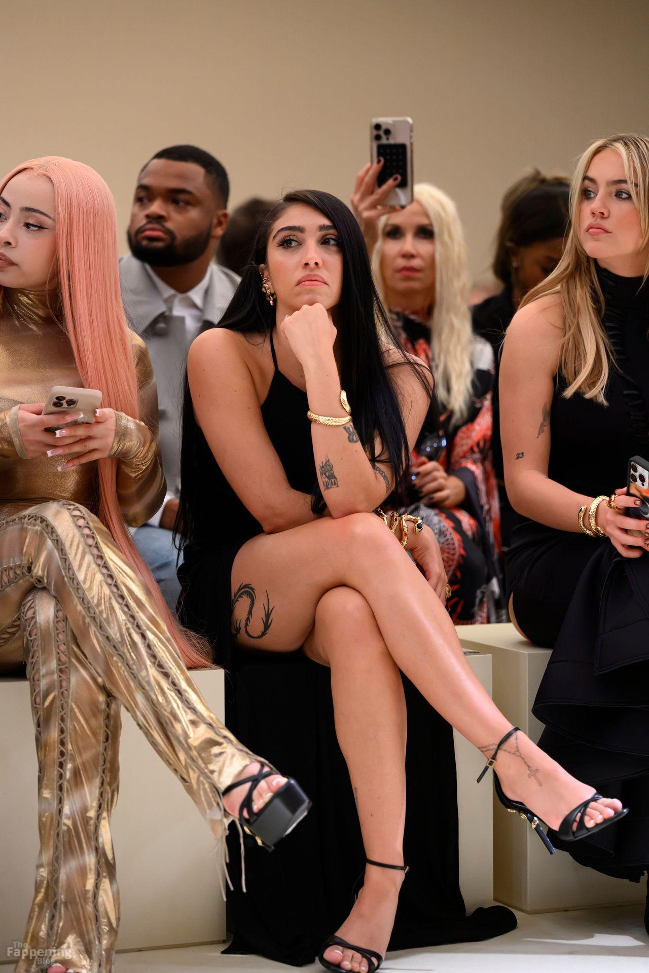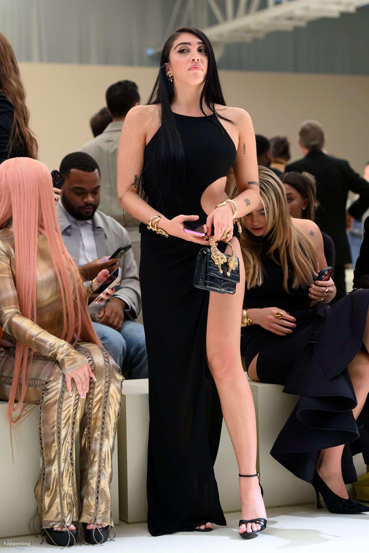 Madonna’s daughter Lourdes Leon stuns with her sexy legs and upskirt moments at the Roberto Cavalli fashion show in Milan.