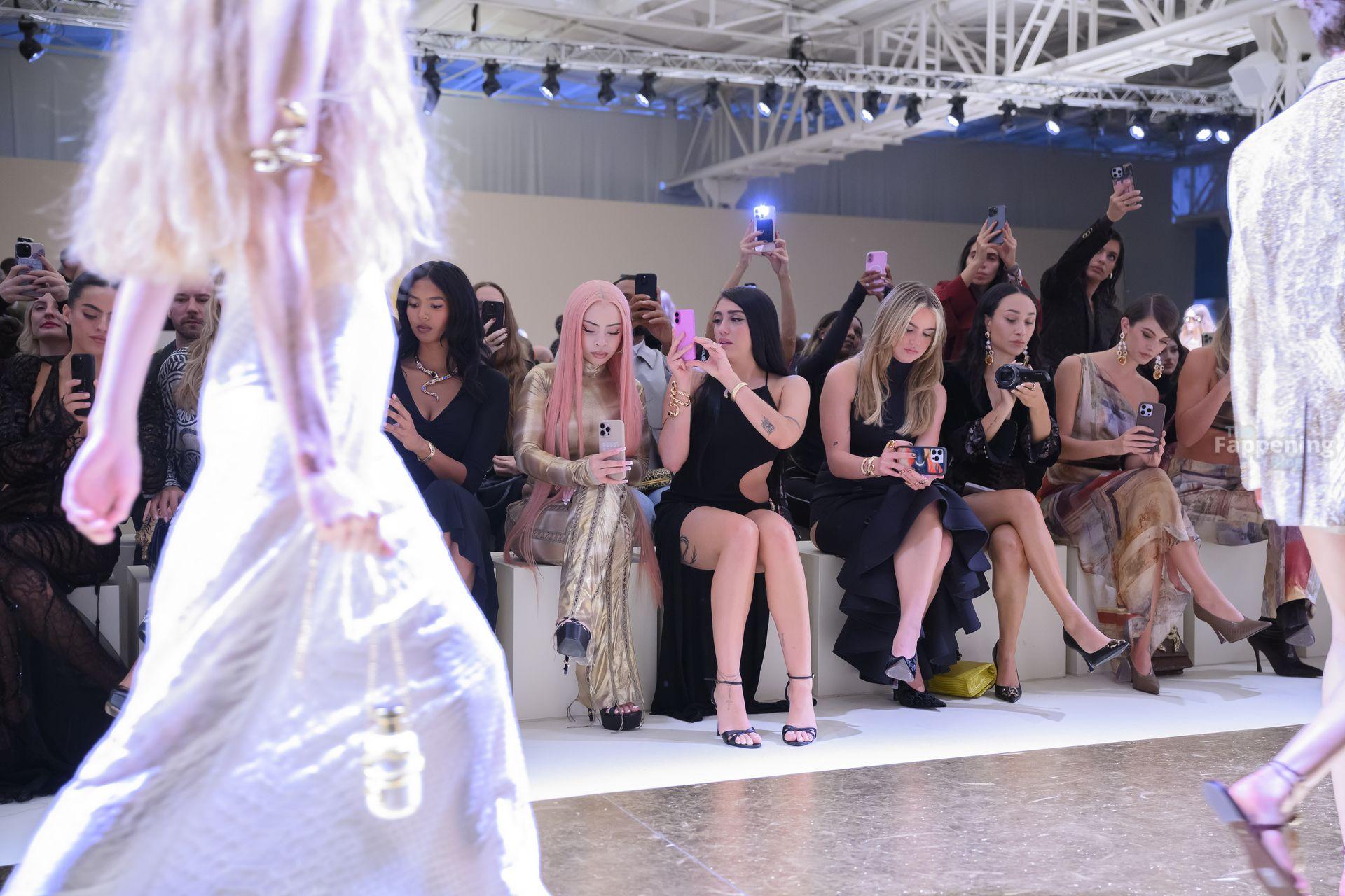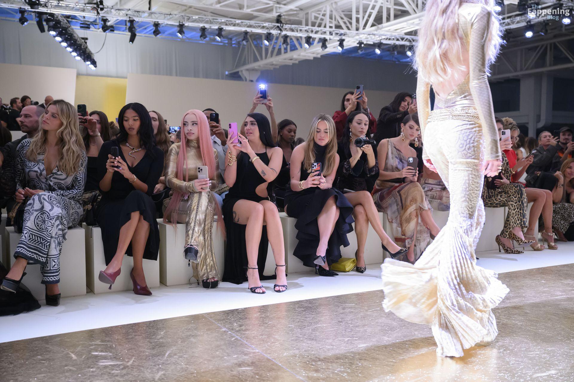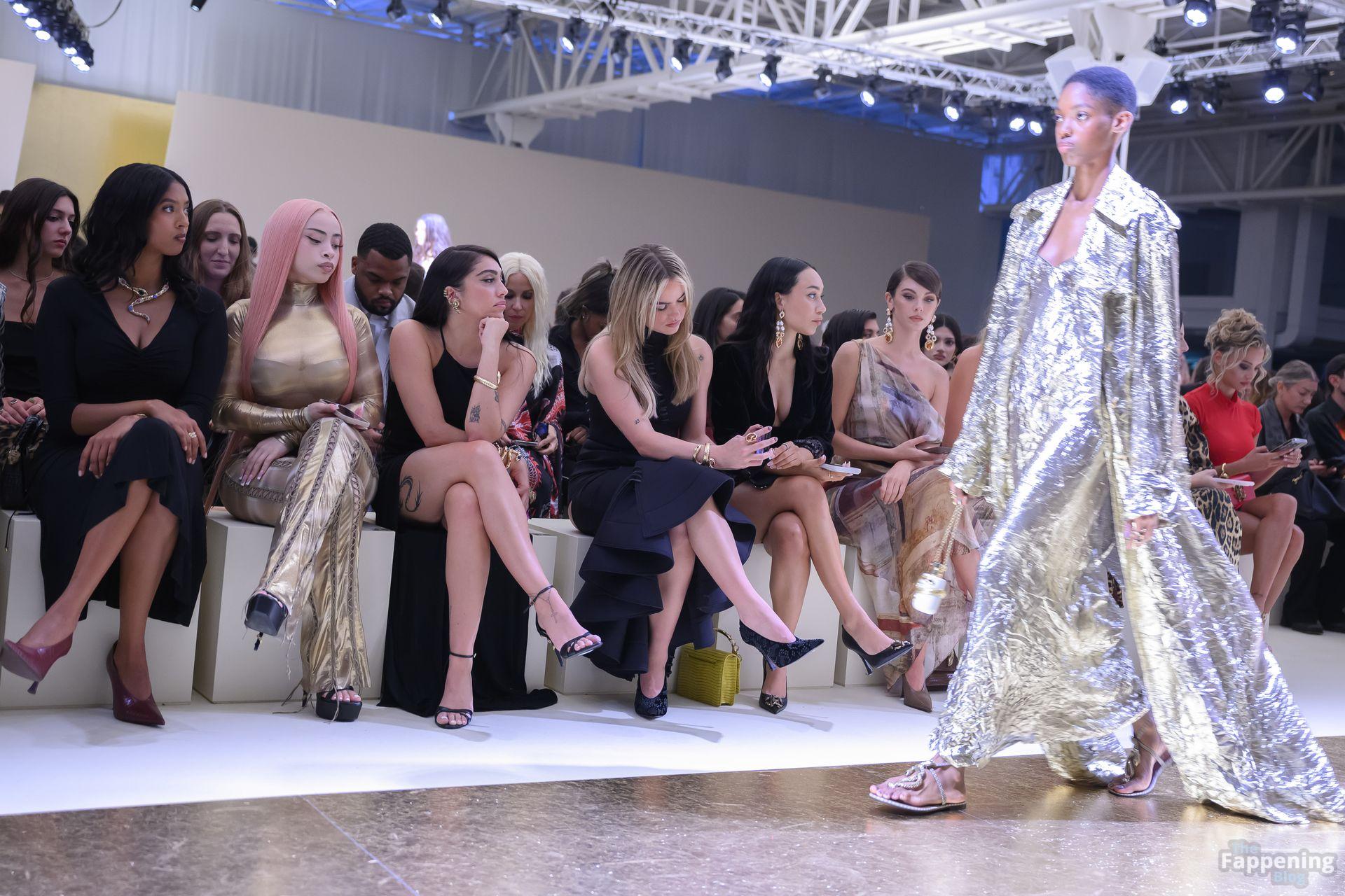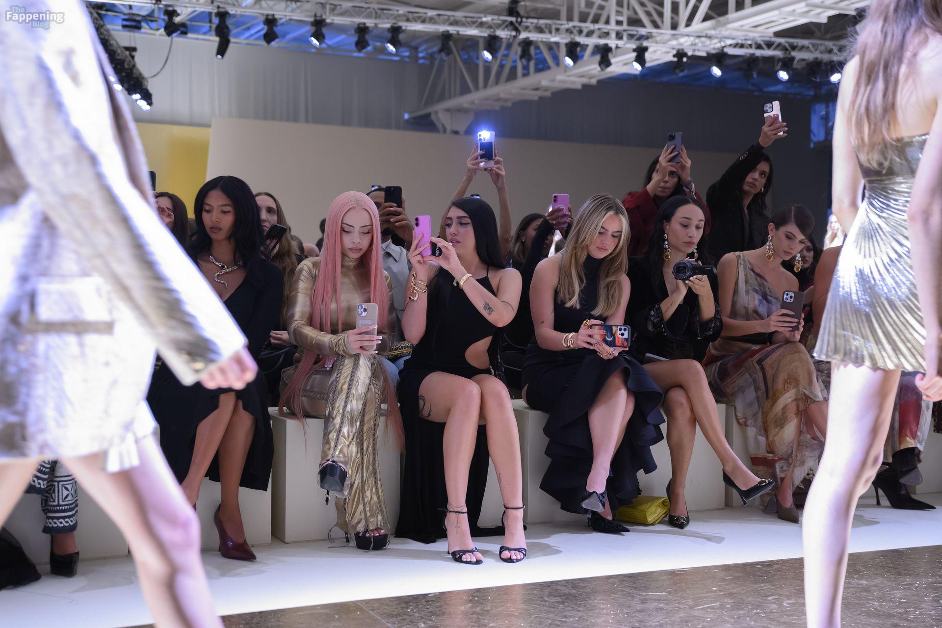 Madonna’s daughter Lourdes Leon stuns with her sexy legs and upskirt moments at the Roberto Cavalli fashion show in Milan.