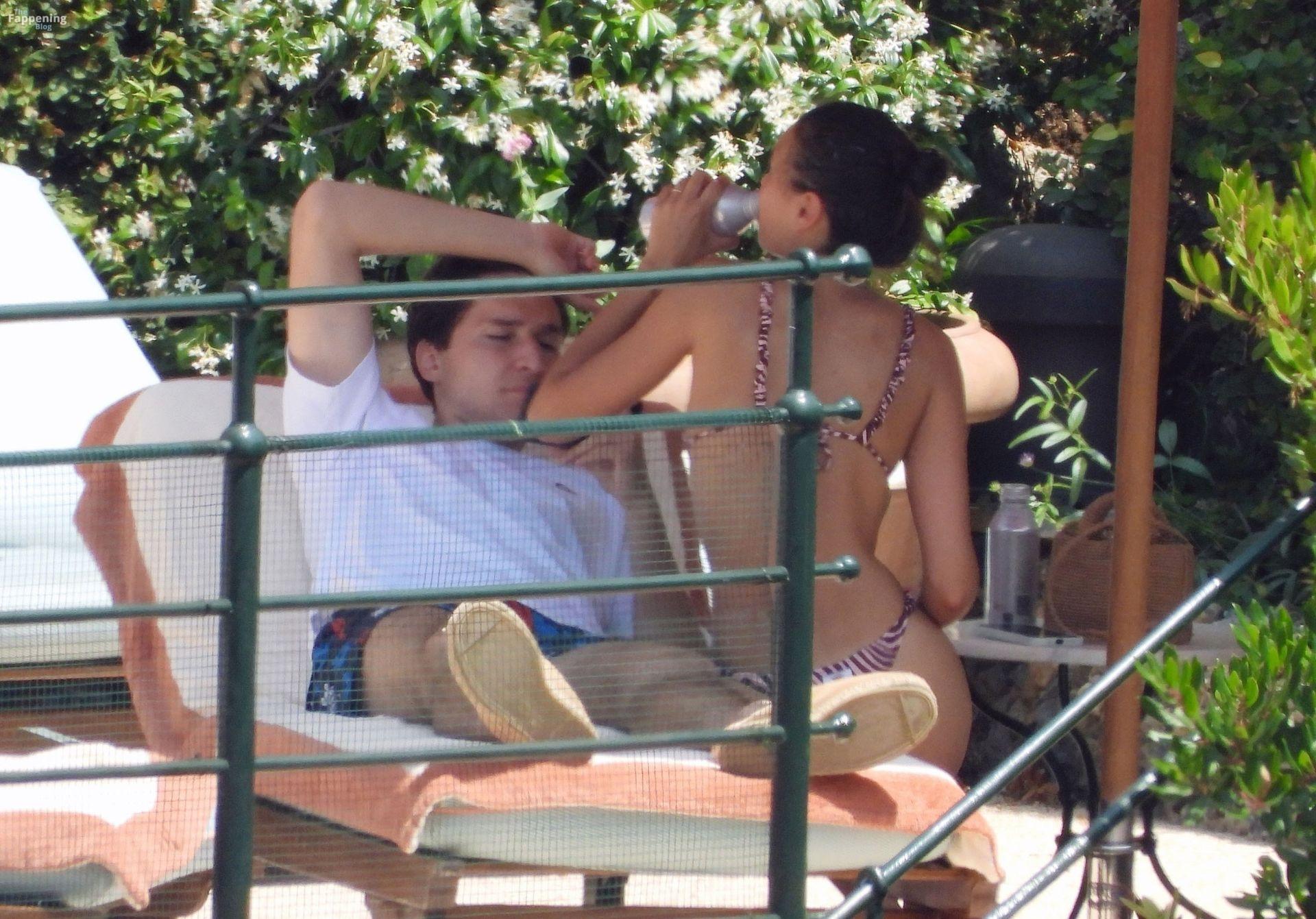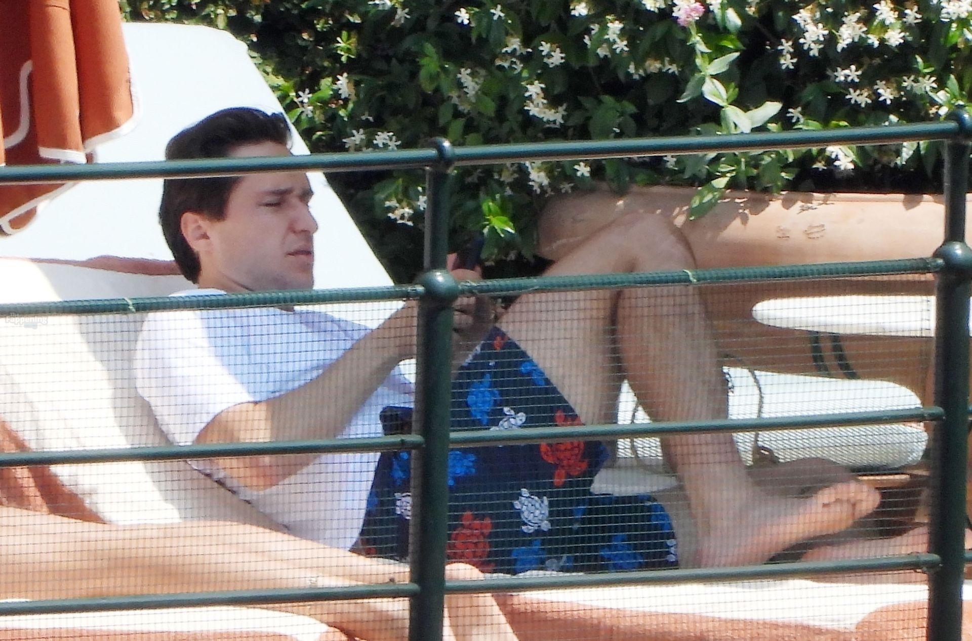 Chiesa, The Premier League Winner chills out on his sunbed taking in the rays but seemed a little distracted with his scantily clad wife Lucia who stunned in her skimpy little animal printed bikini set during Federico’s season break.