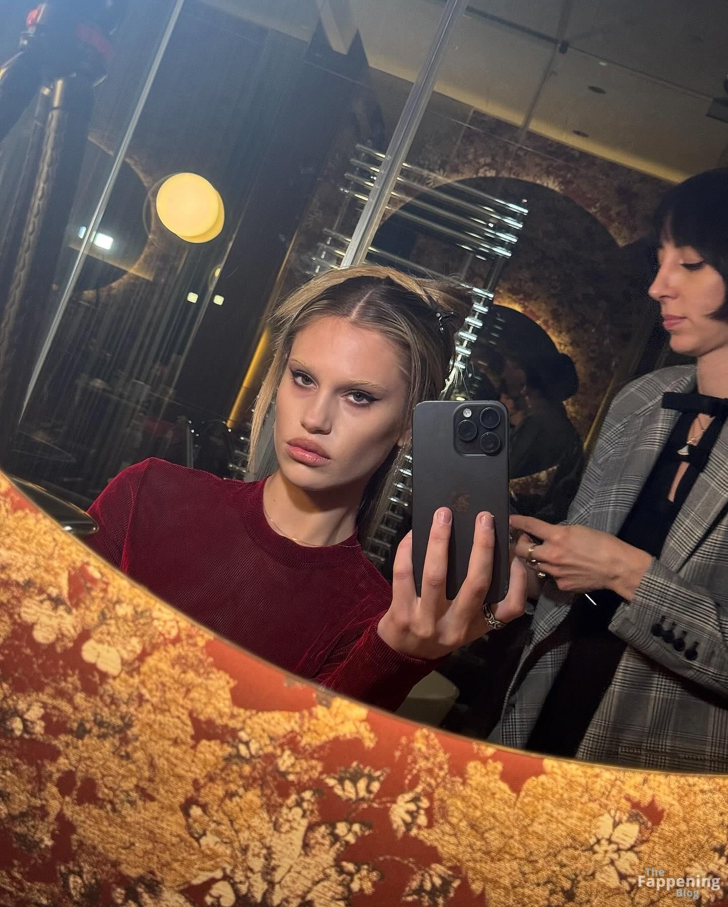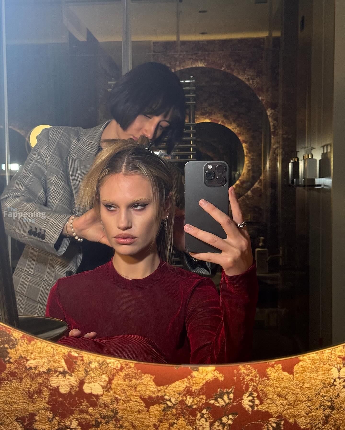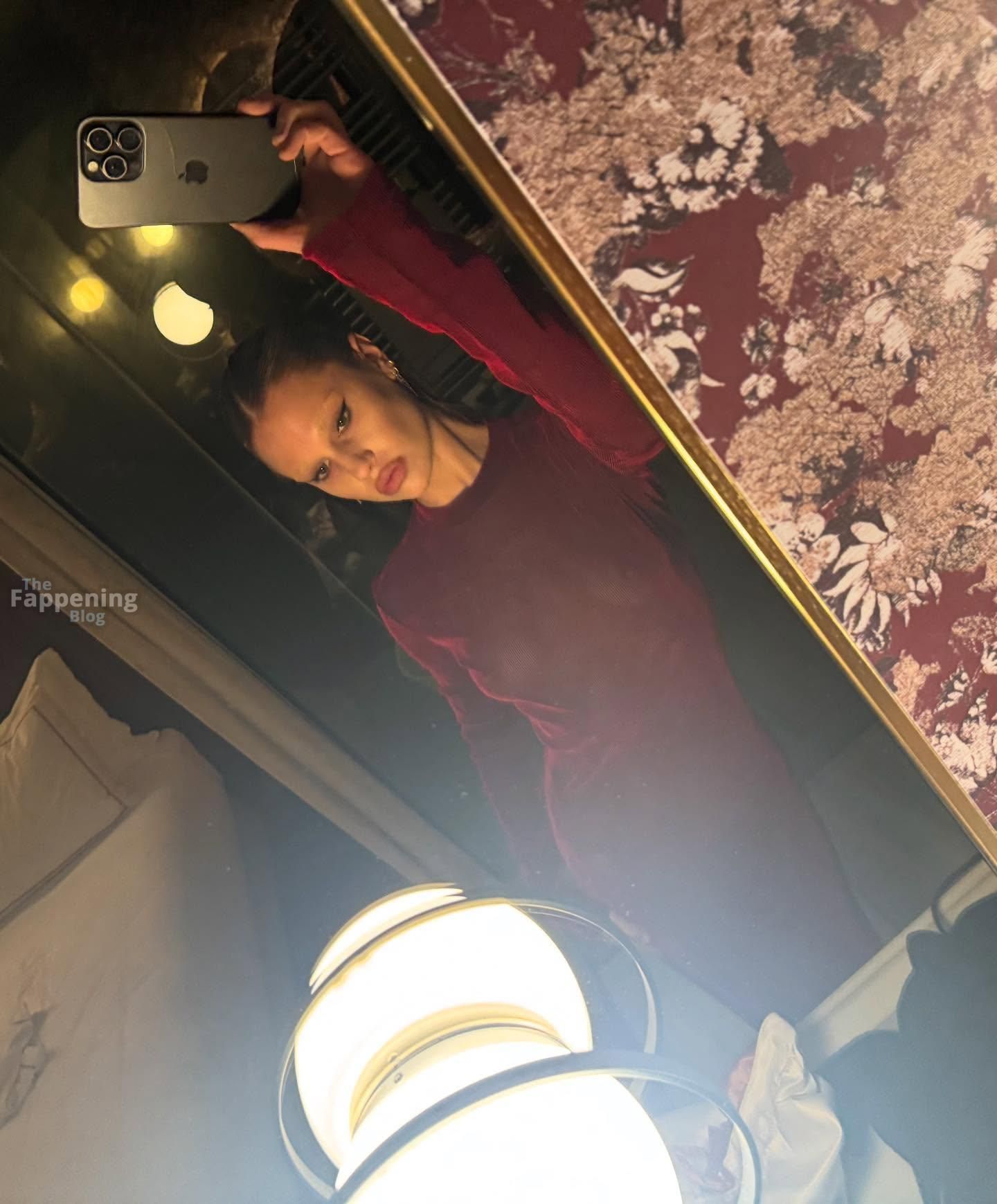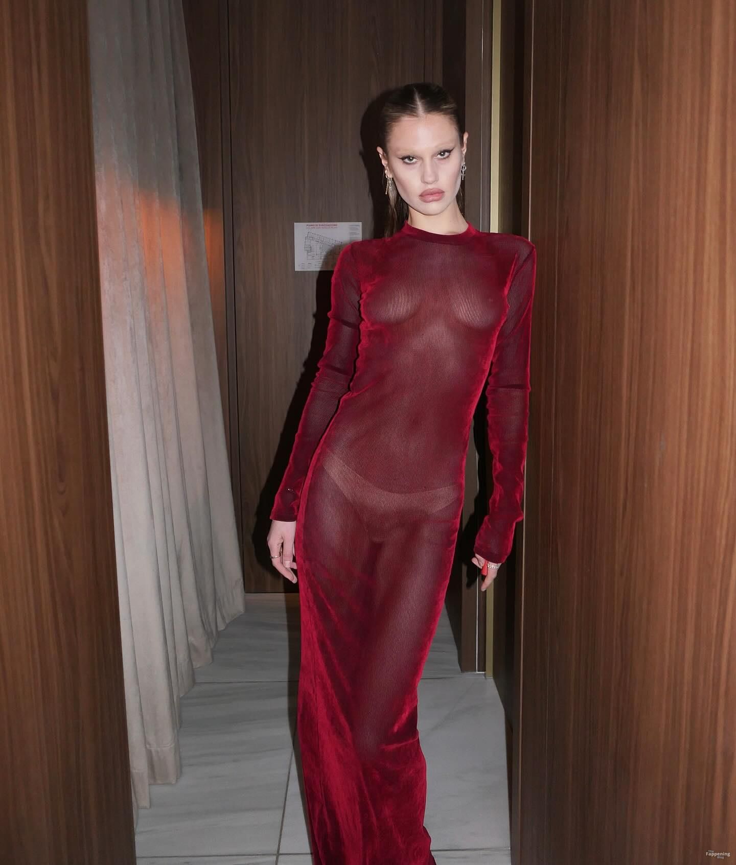 Meredith Mickelson is goin’ braless in a see-through dress and flashin’ her bare titties all up in Milan.