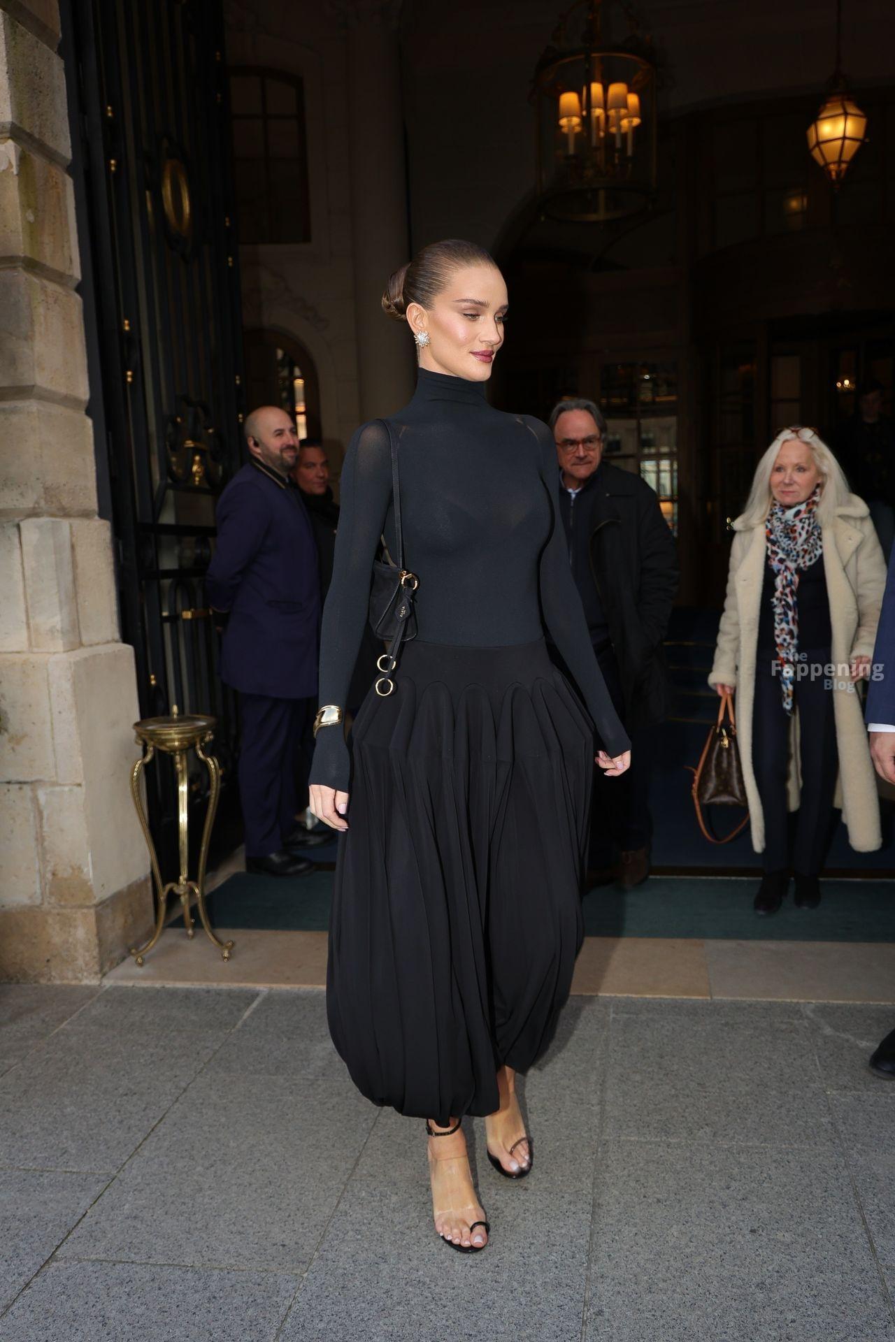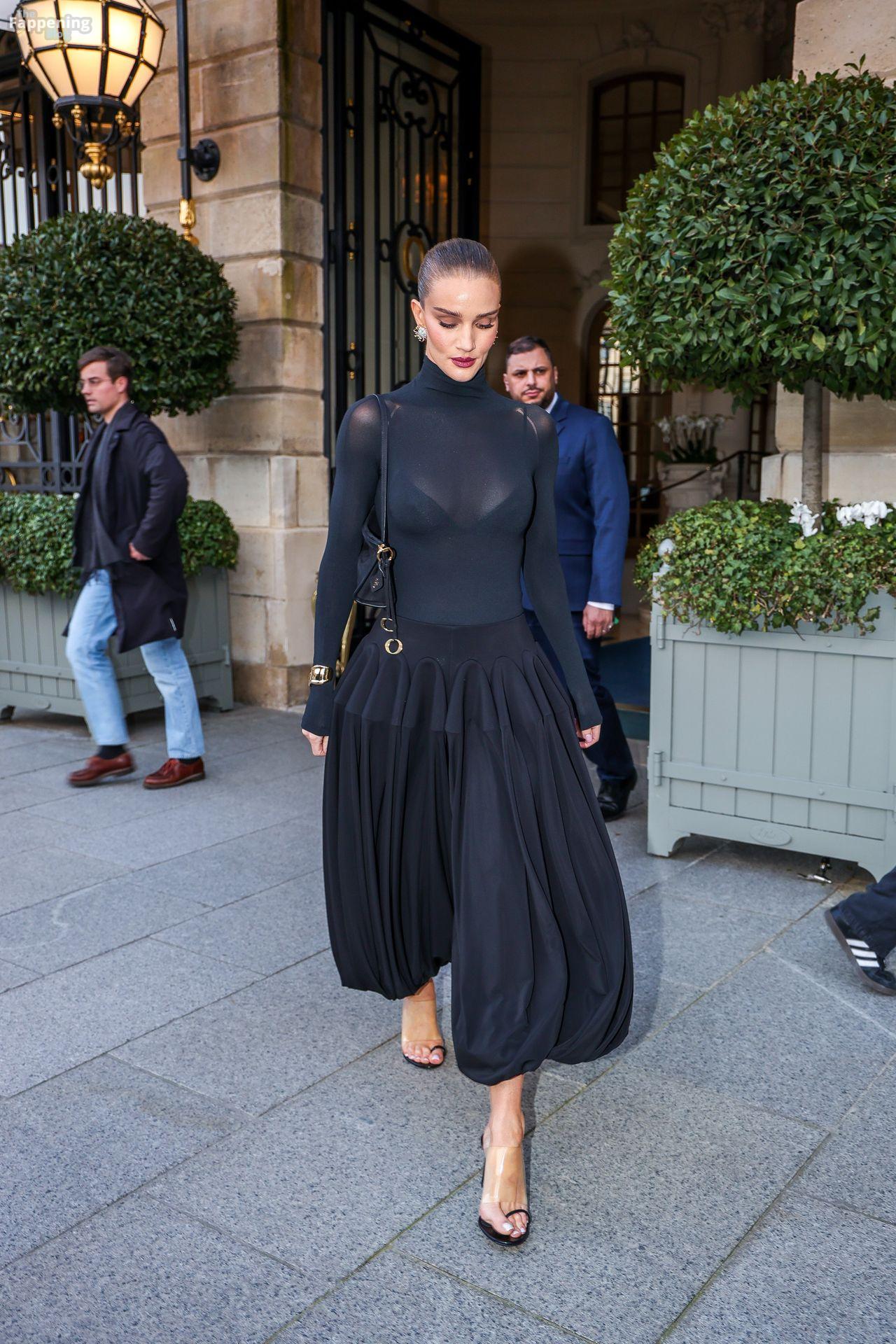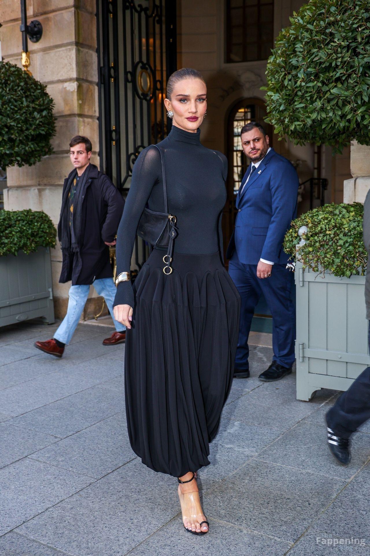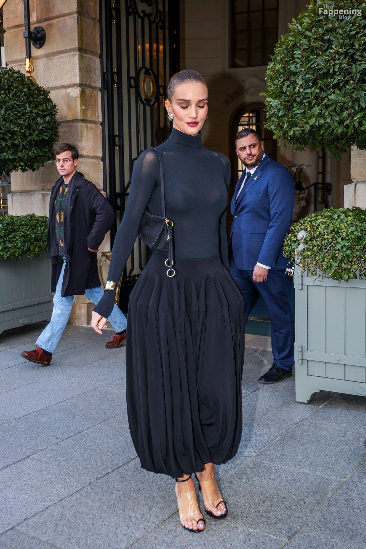 Model Rosie Huntington-Whiteley shows off her pokies as she leaves the Ritz Hotel on the sidelines of Paris Fashion Week (PFW) in Paris, France.