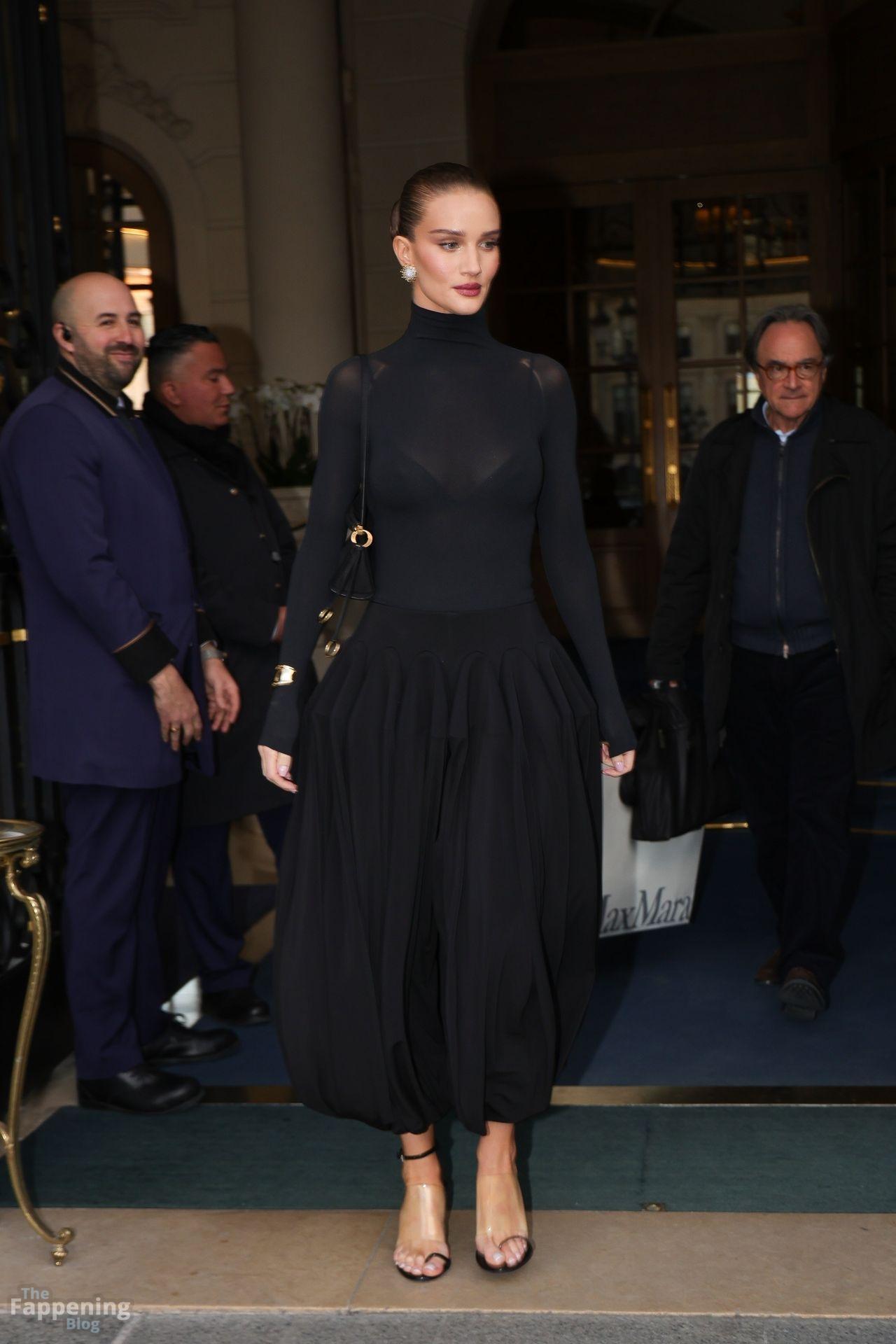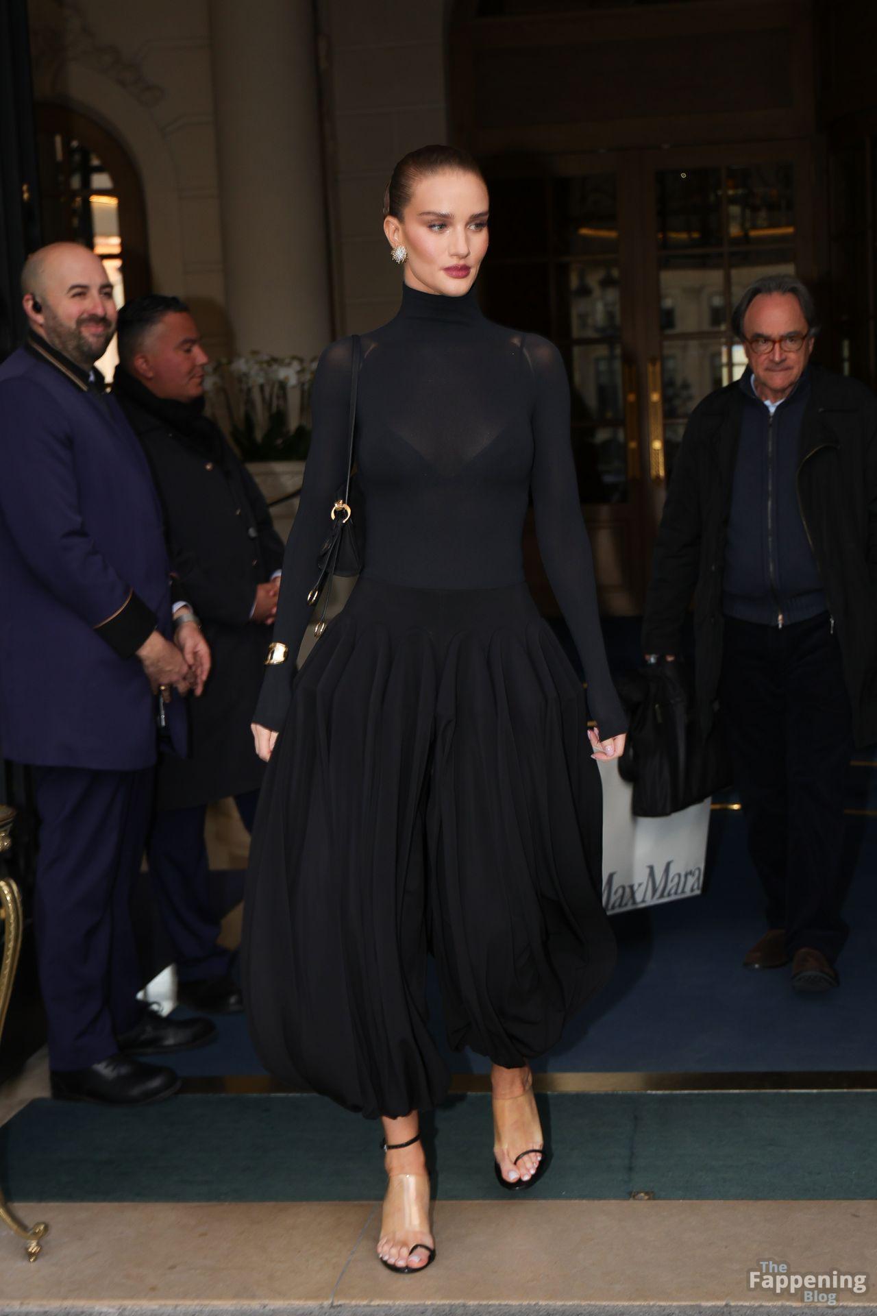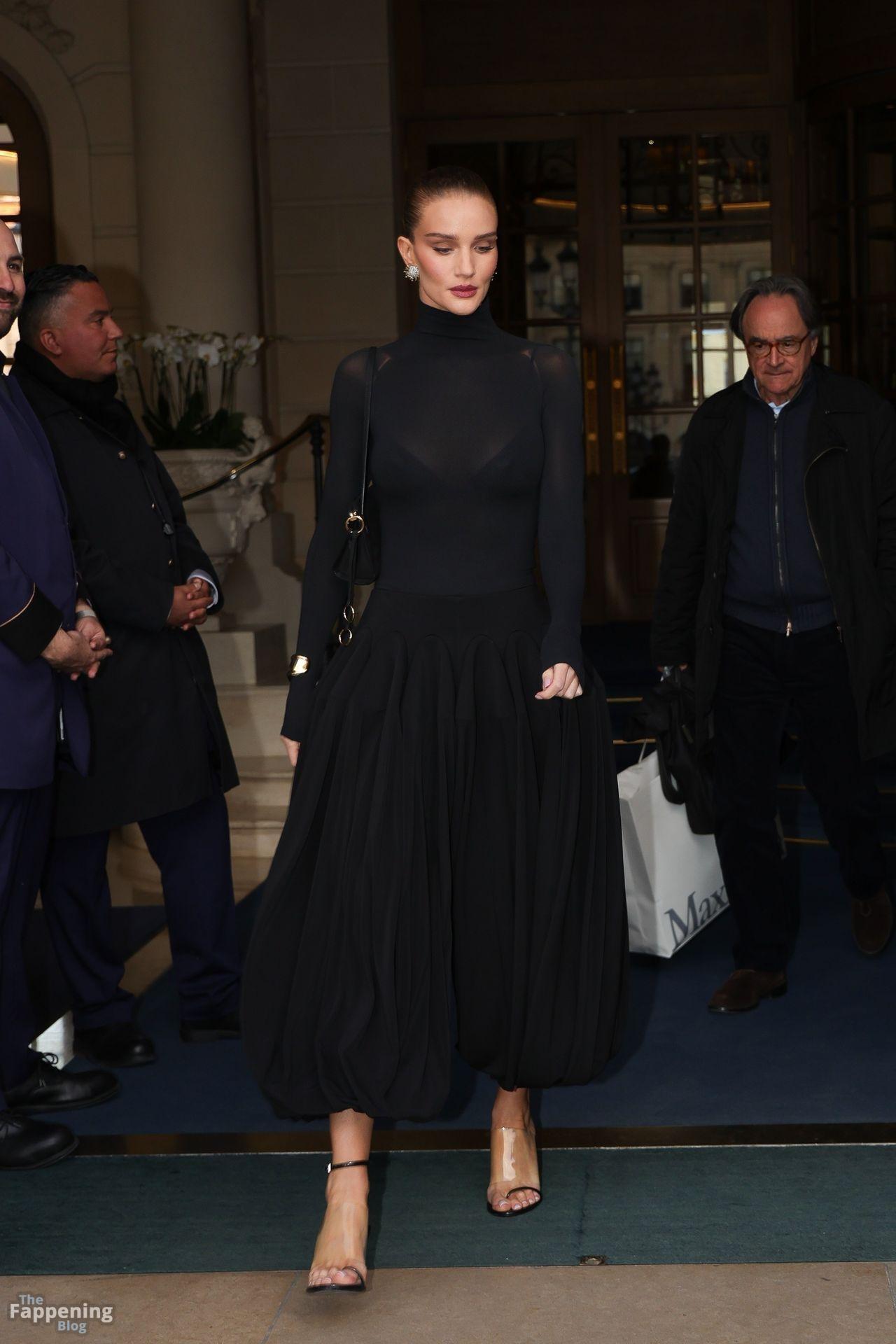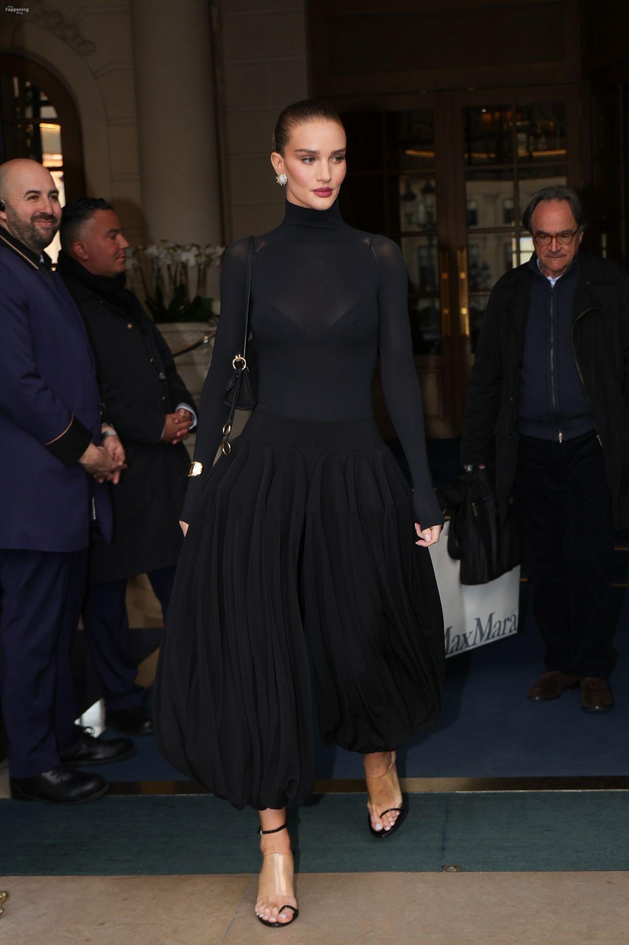 Model Rosie Huntington-Whiteley shows off her pokies as she leaves the Ritz Hotel on the sidelines of Paris Fashion Week (PFW) in Paris, France.