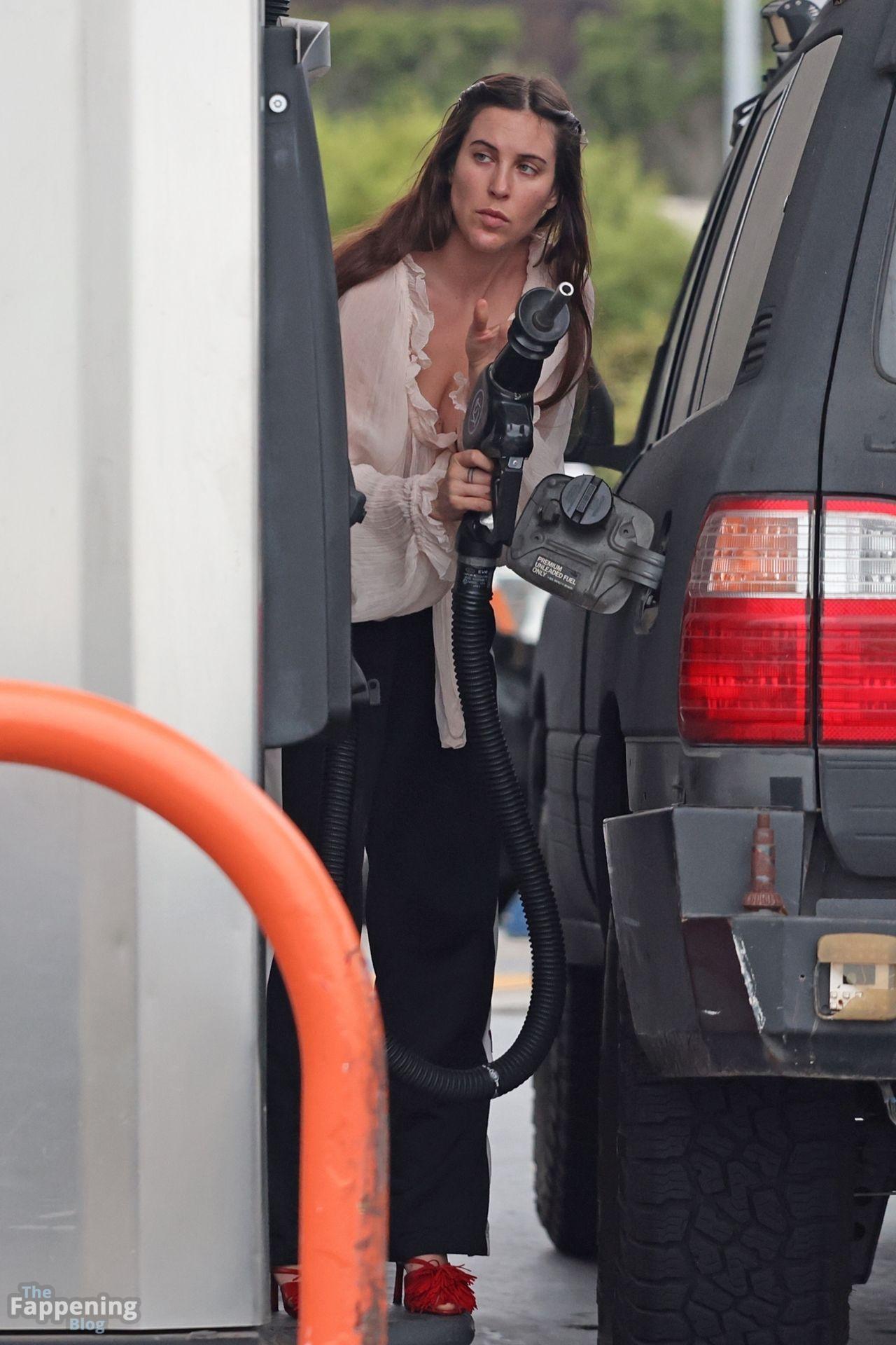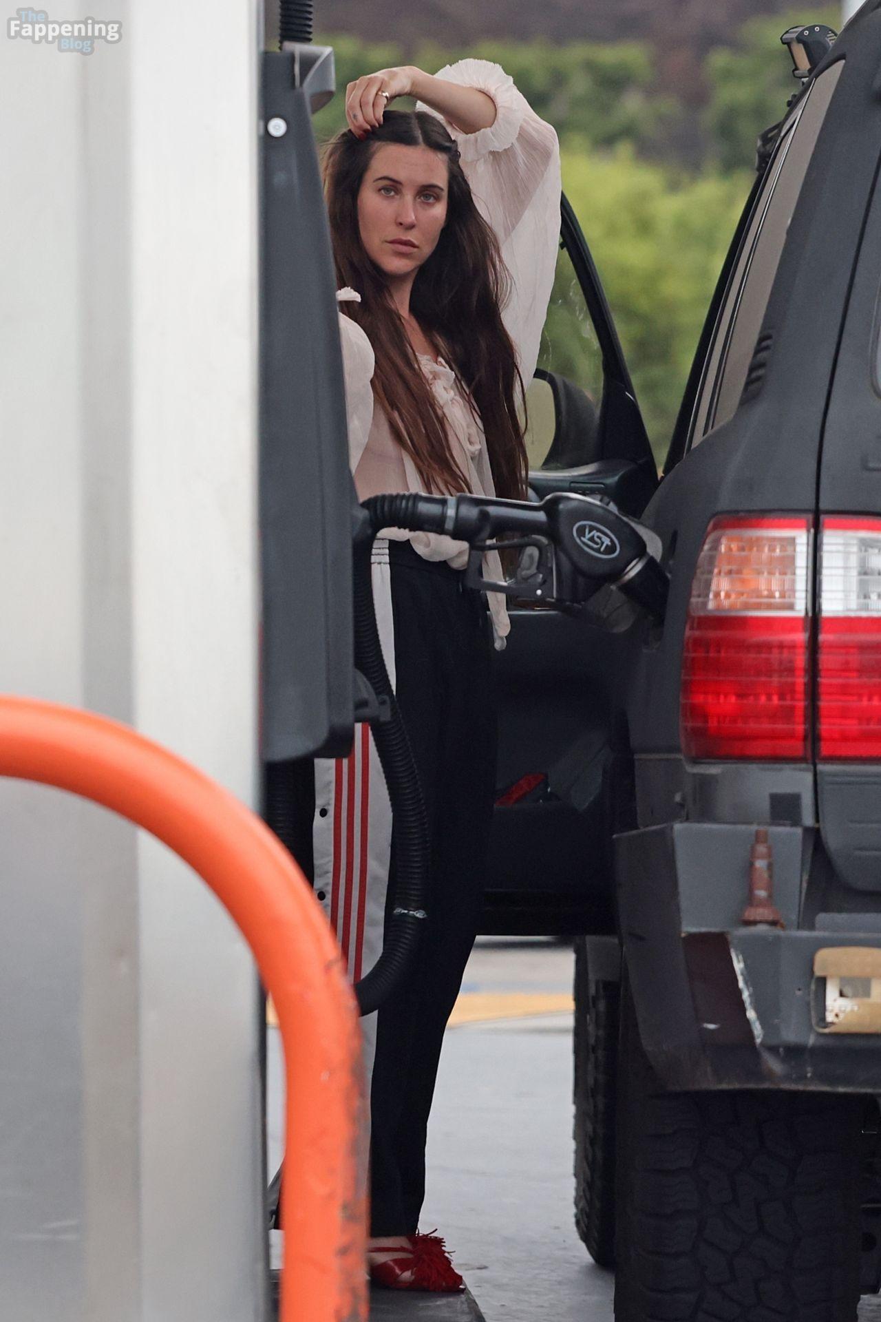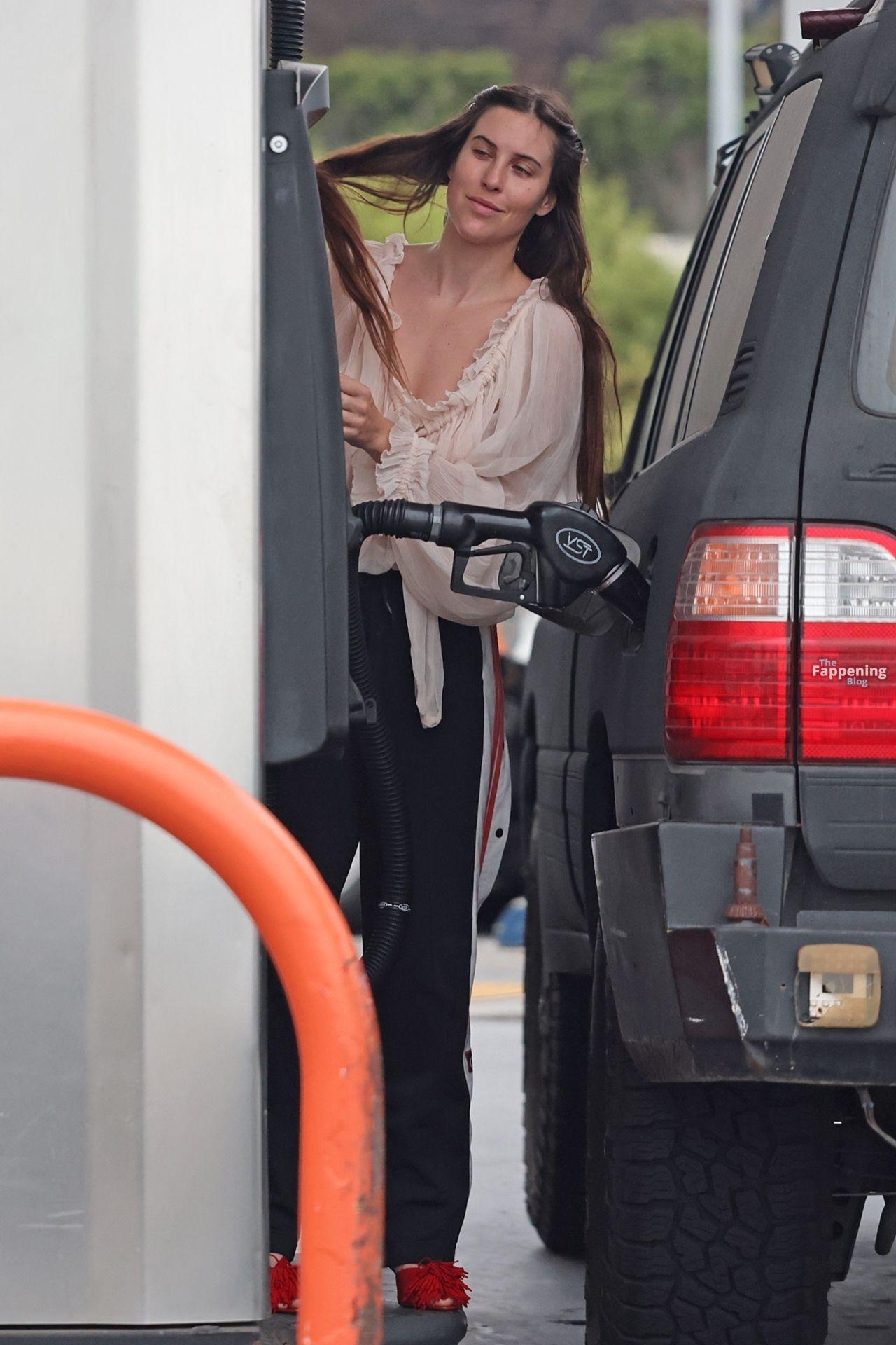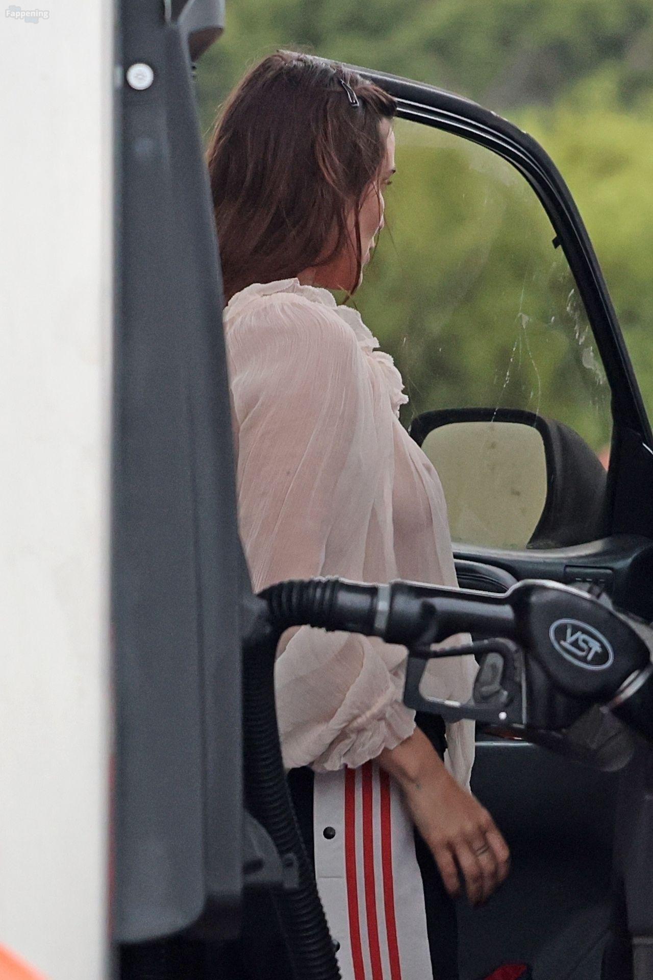 Scout LaRue Willis Flashes Her Nude Tits in a Chic Blouse and Striped Pants While Pumping Gas (21 Photos)