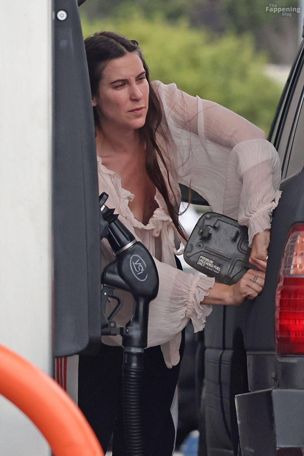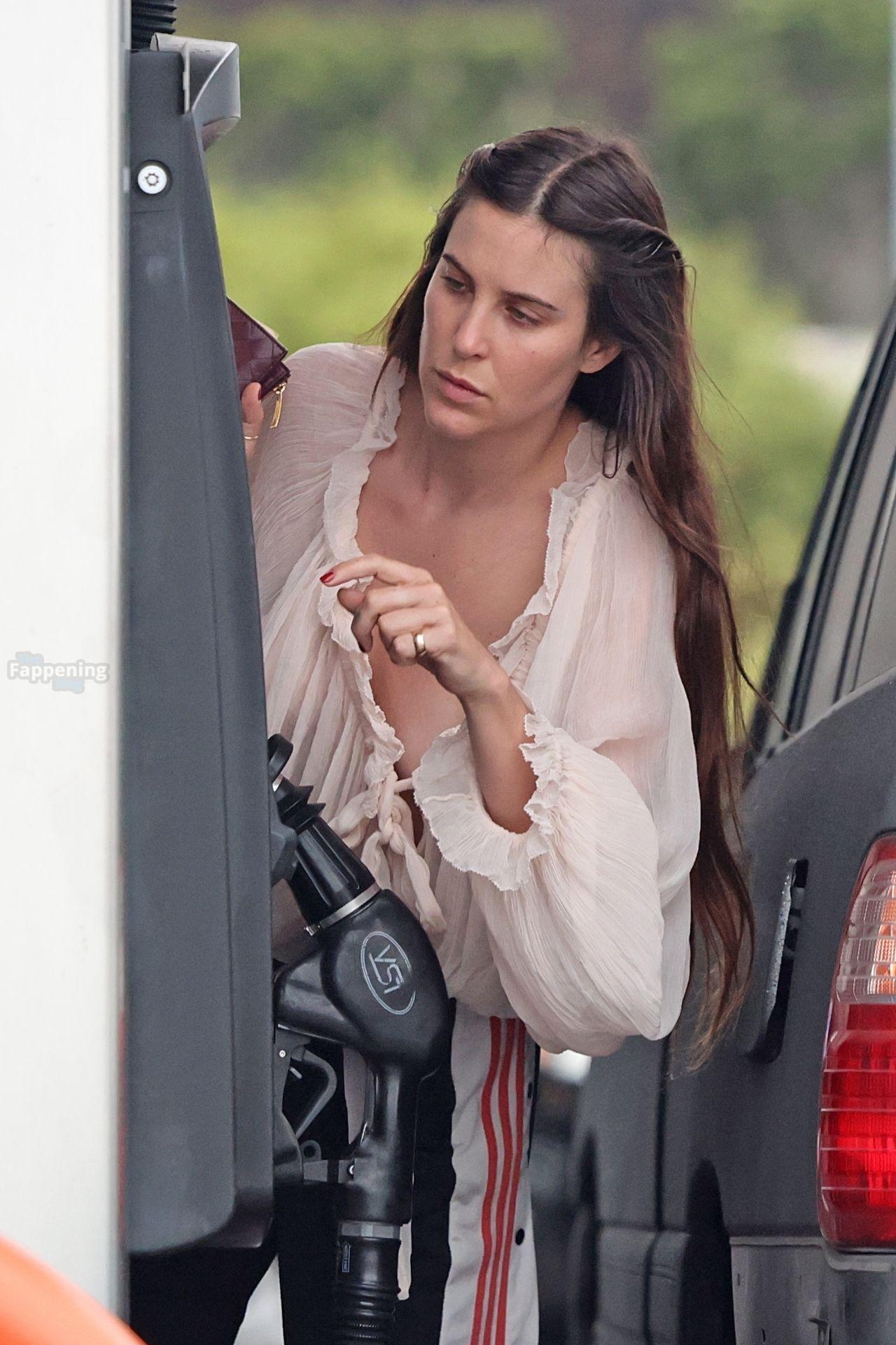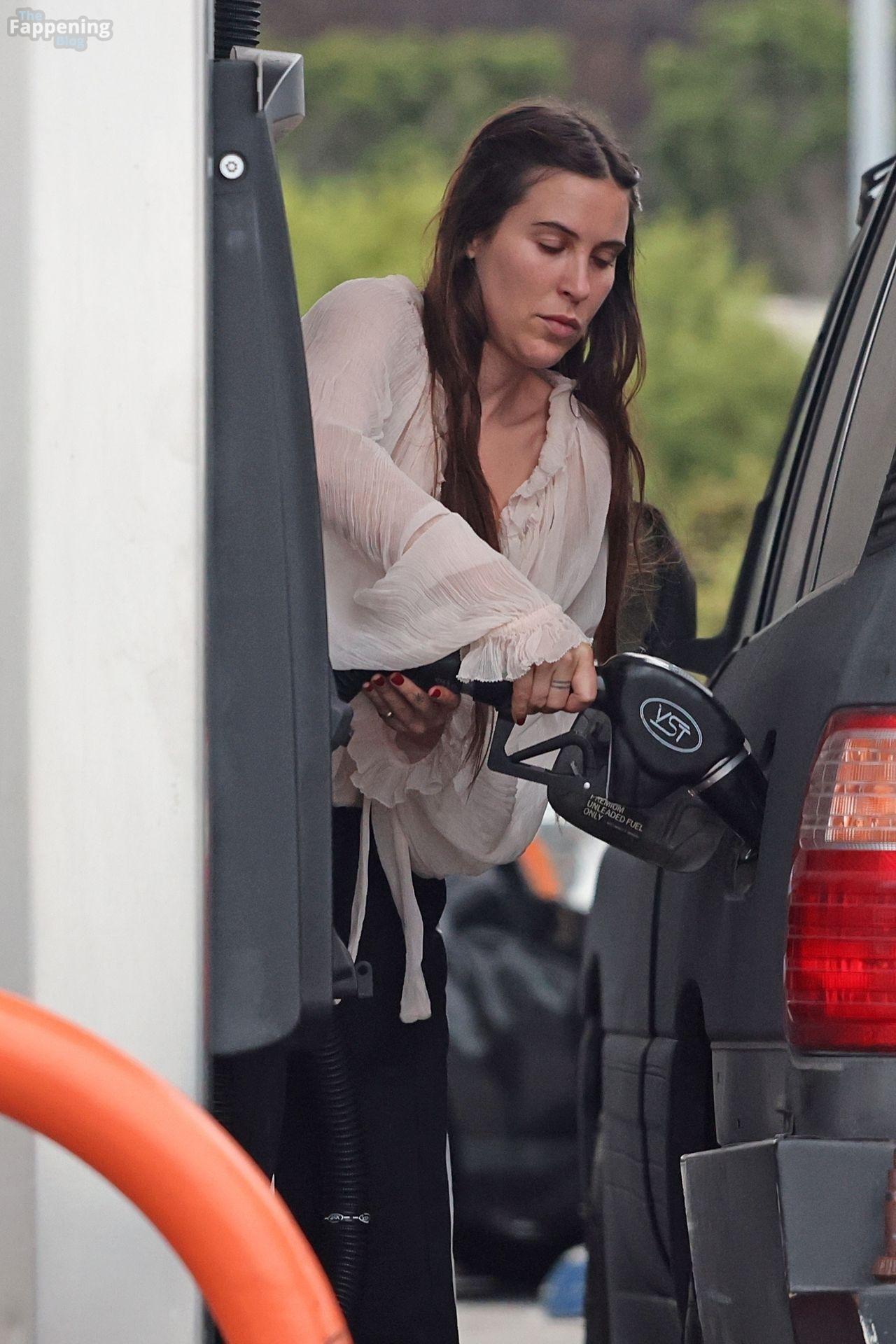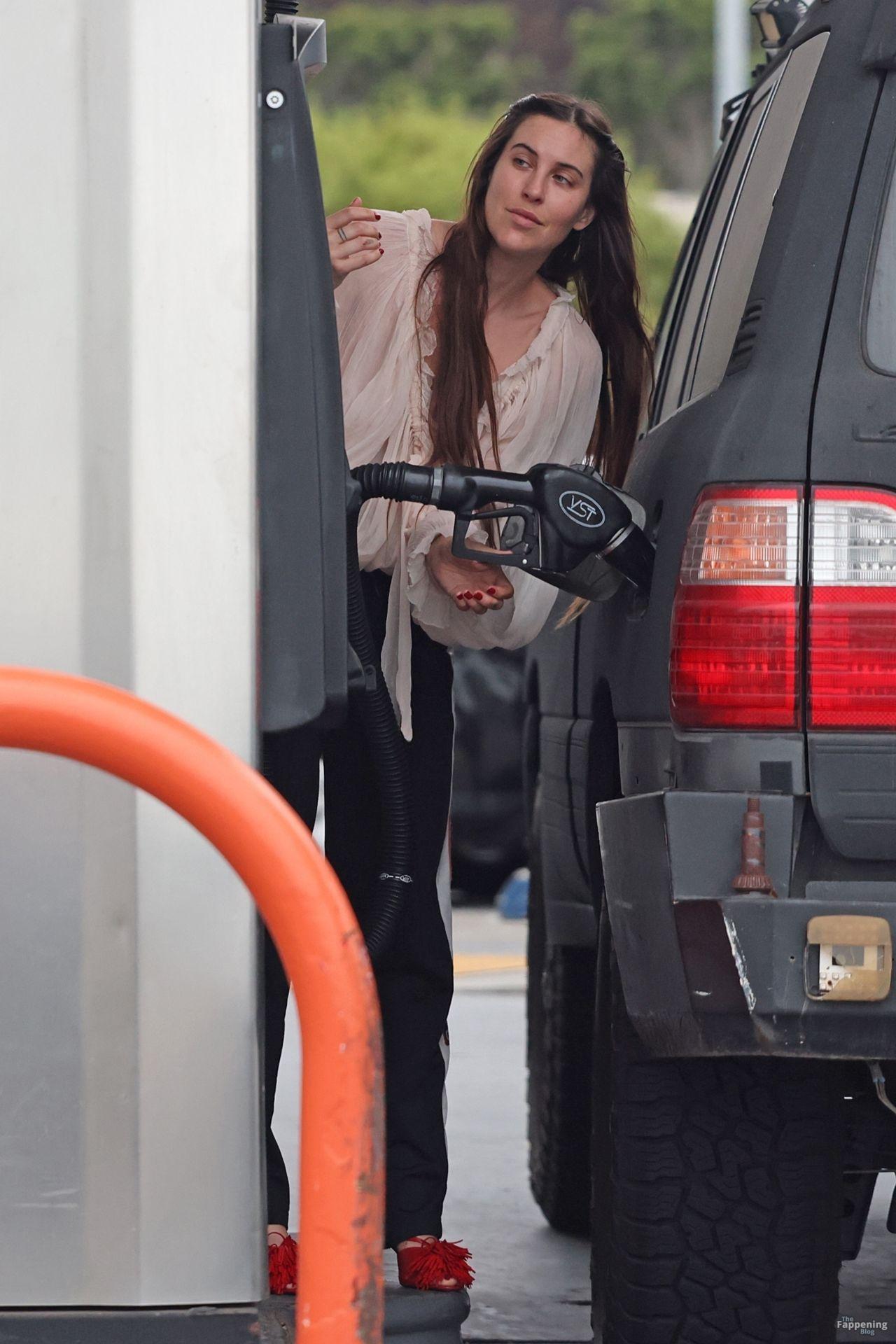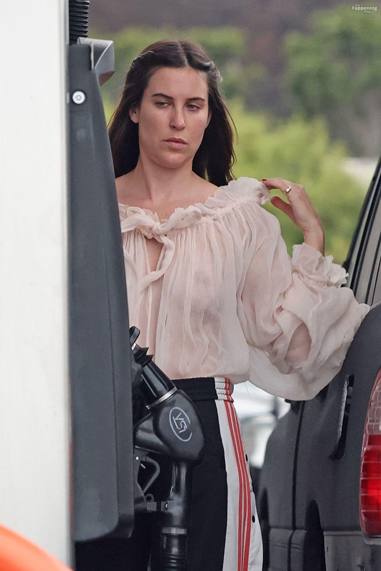 Scout LaRue Willis Flashes Her Nude Tits in a Chic Blouse and Striped Pants While Pumping Gas (21 Photos)