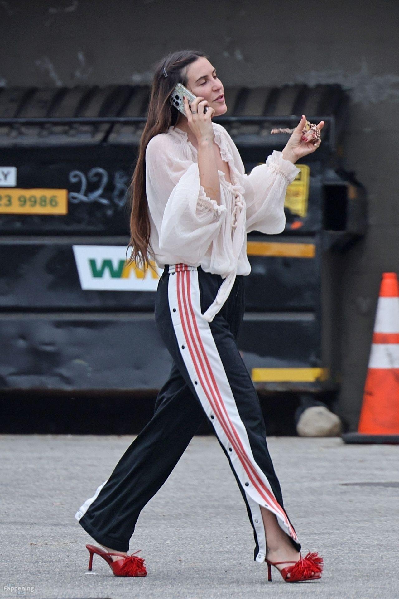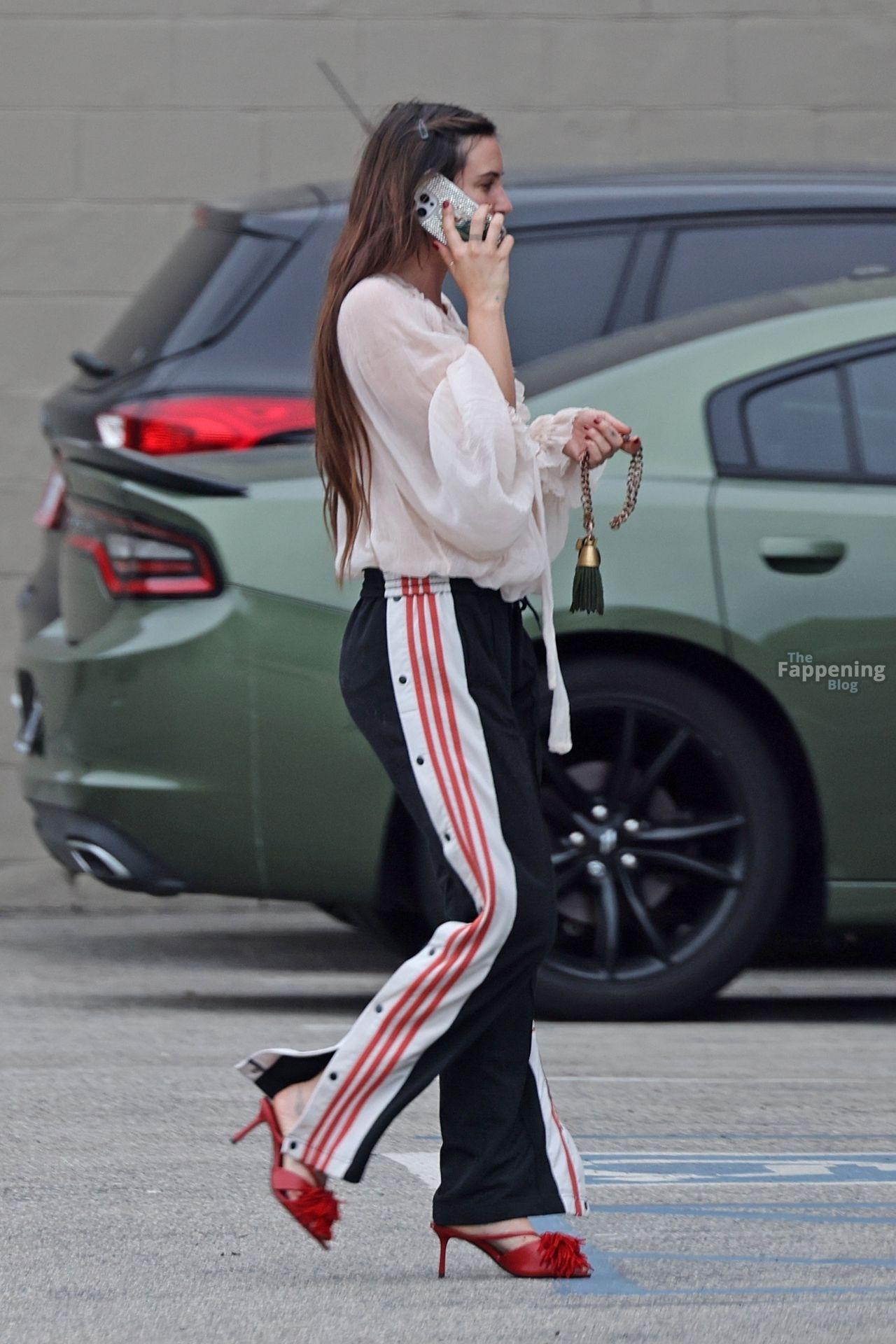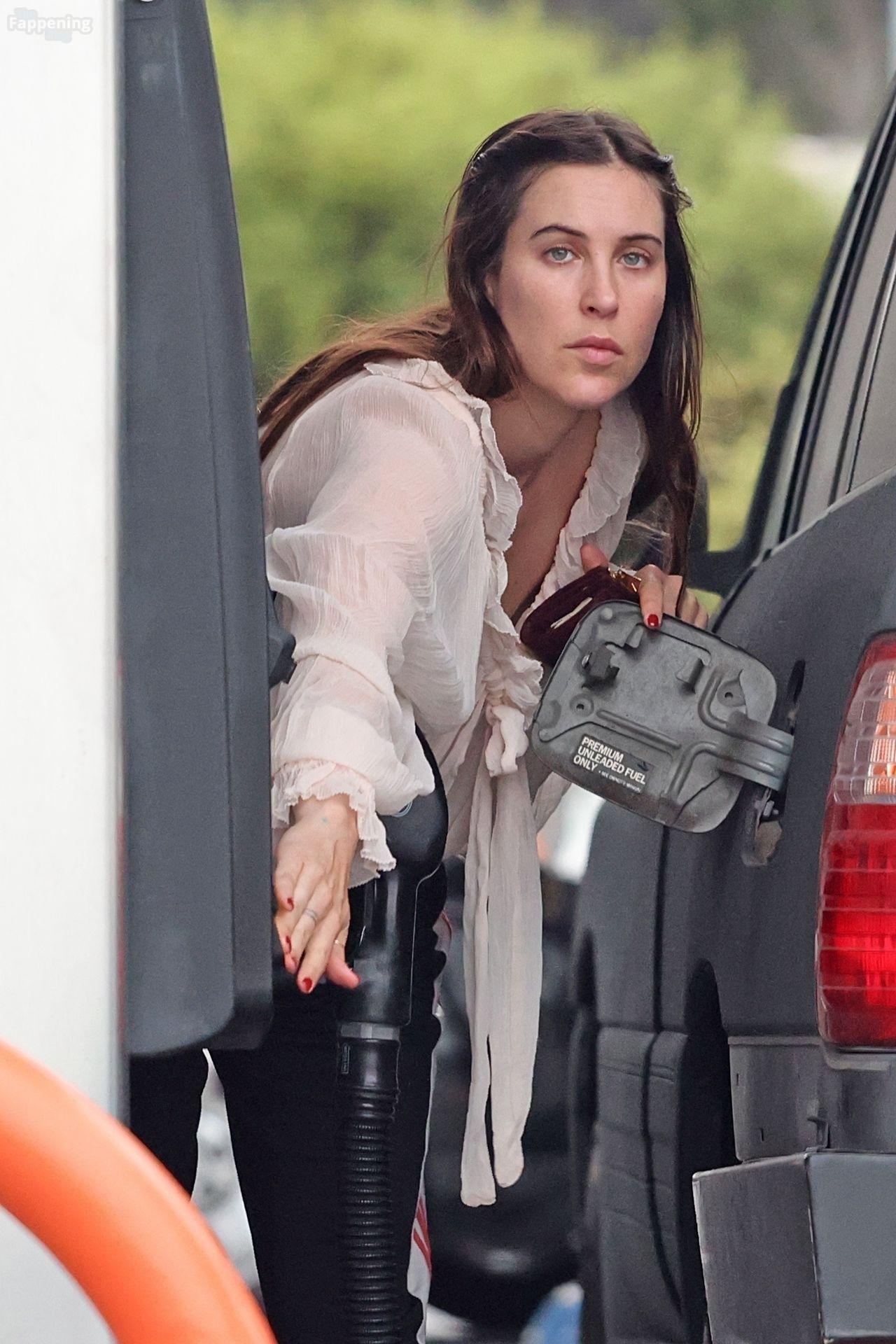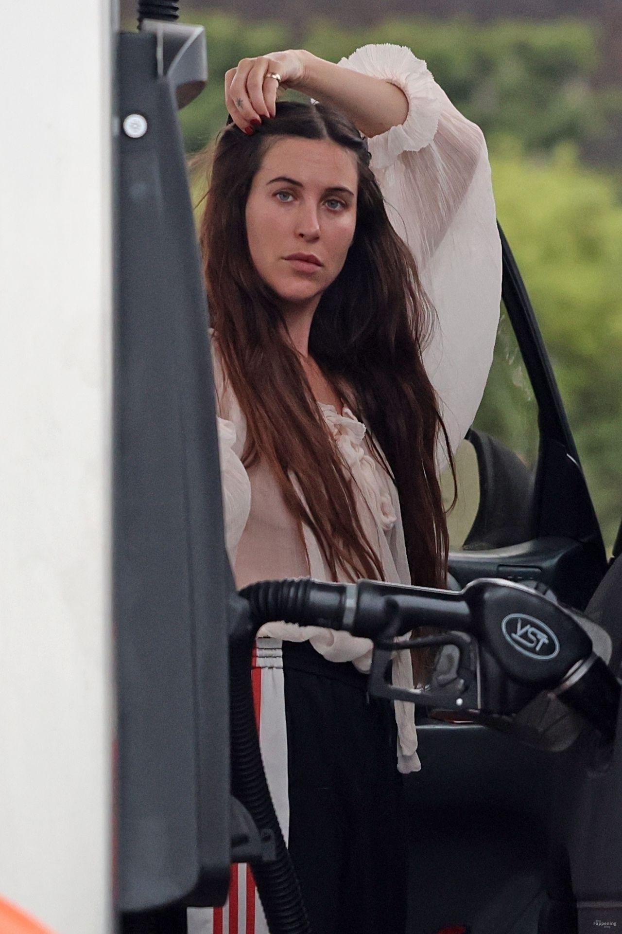 Scout LaRue Willis Flashes Her Nude Tits in a Chic Blouse and Striped Pants While Pumping Gas (21 Photos)
