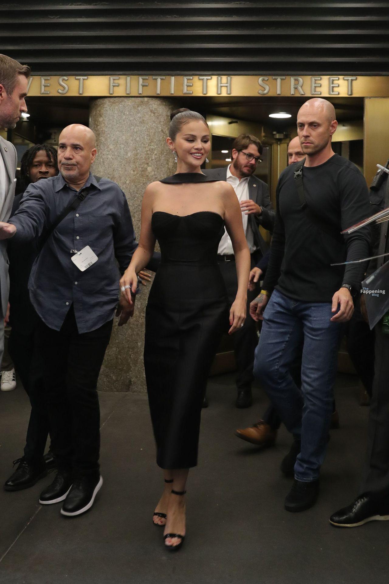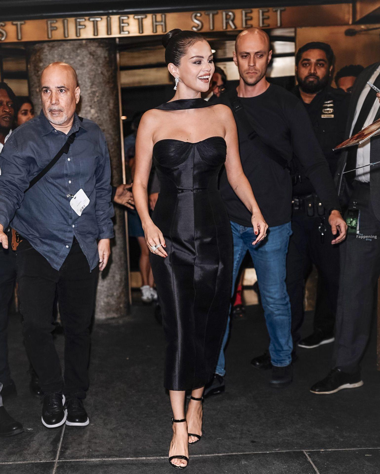 Selena Gomez was showin’ major cleavage in a strapless black satin dress. The superstar singer and actress got swarmed by fans after The Tonight Show Starring Jimmy Fallon in New York.