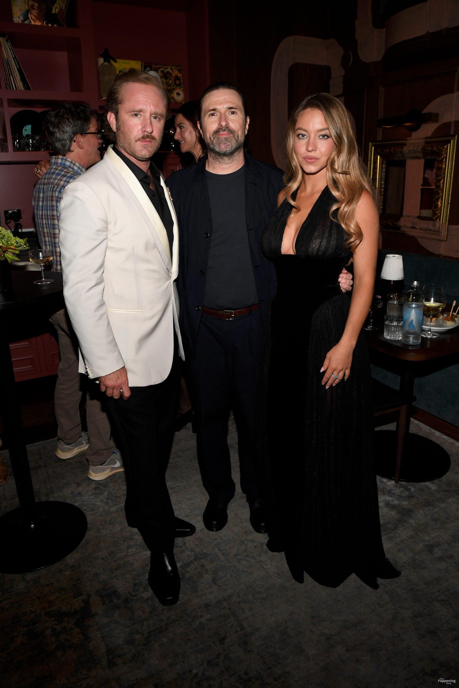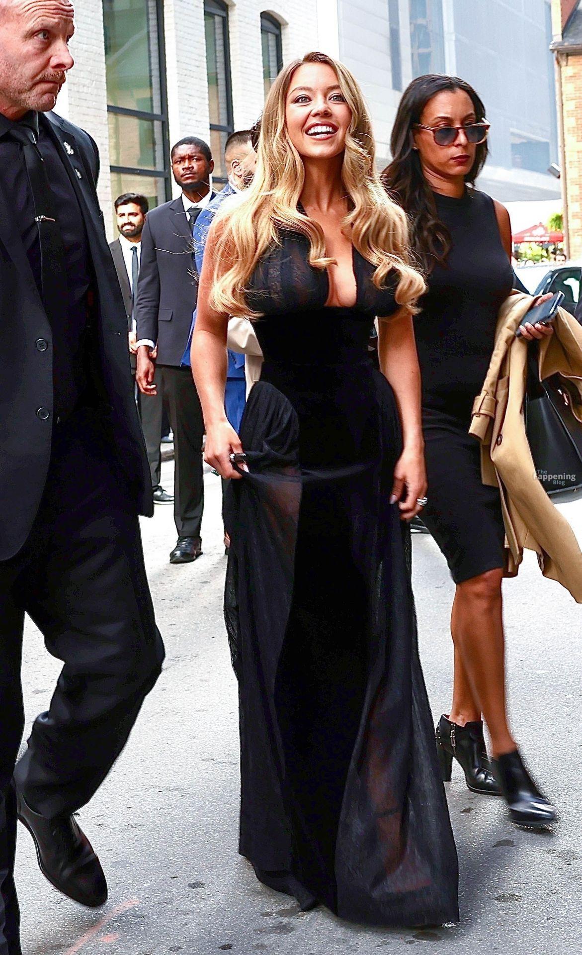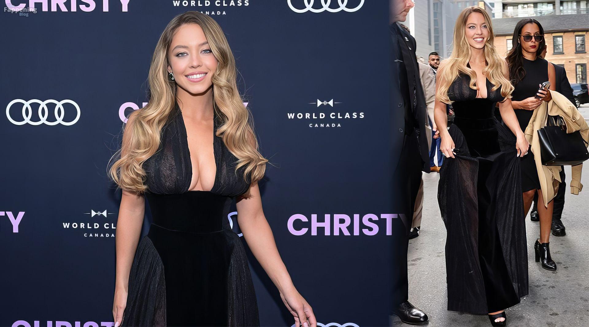 Actress Sydney Sweeney was all smiles rollin’ up to the Christy after-party at the 2025 Toronto International Film Festival. Busty The Fappening Star almost popped outta her deep-cut black dress at TIFF’s event.