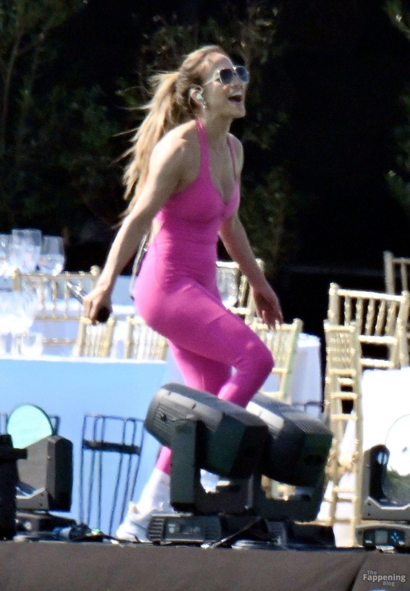 Jennifer was spotted rehearsin’ at Cala di Volpe, rockin’ a hot pink halter-neck jumpsuit, big shades, sneakers, and socks while testin’ the mic for her big show. Her dance crew, includin’ dancer Ivan Marić and choreographer Kiel Tutin, had her back.