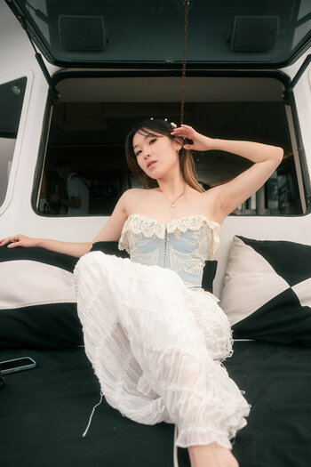 The 28-year-old beauty was braless for the shoot and suffered a slight malfunction in the form of a nip slip as the girls lay in the sand under a beach umbrella wearing a silk camisole.