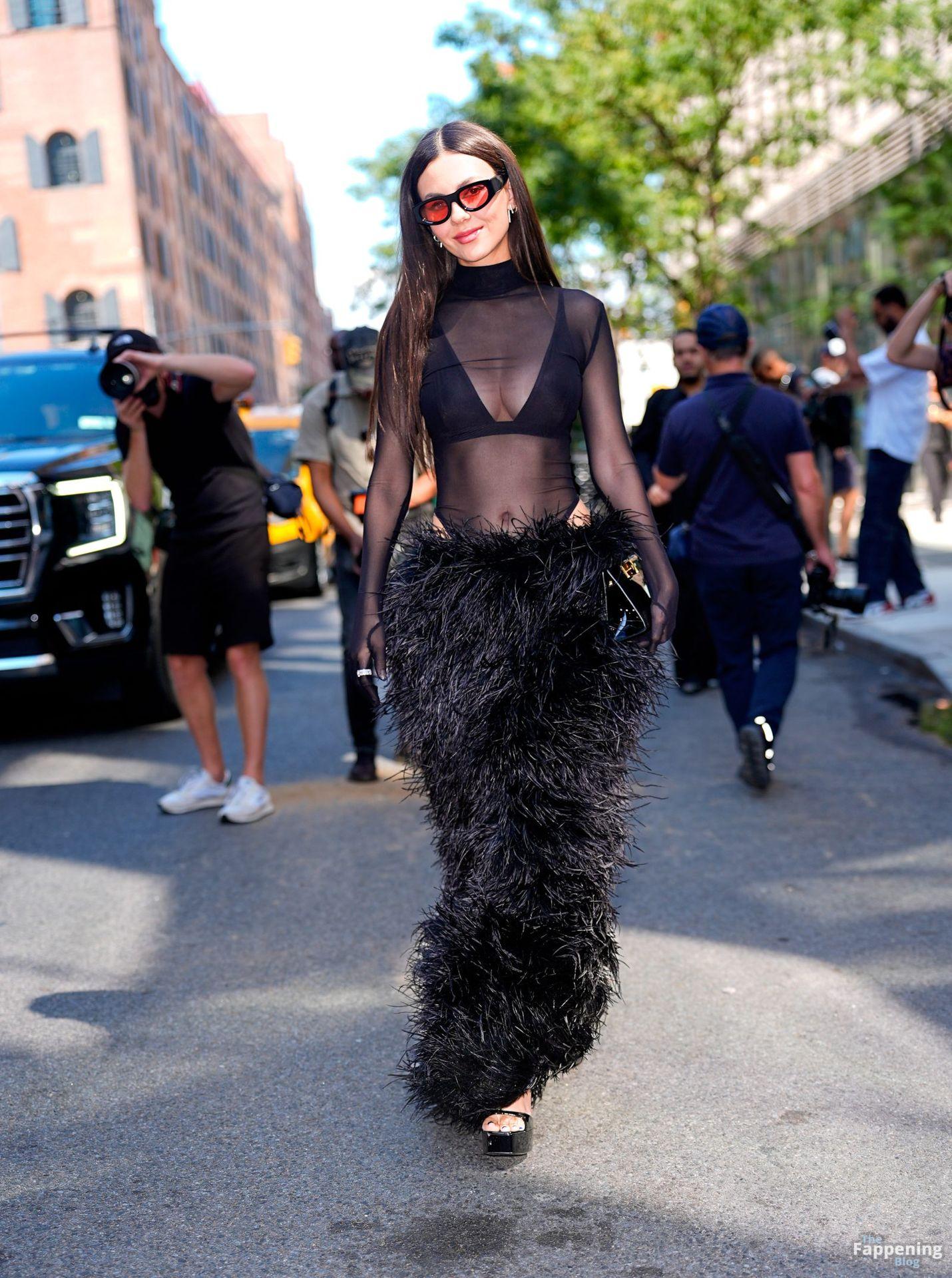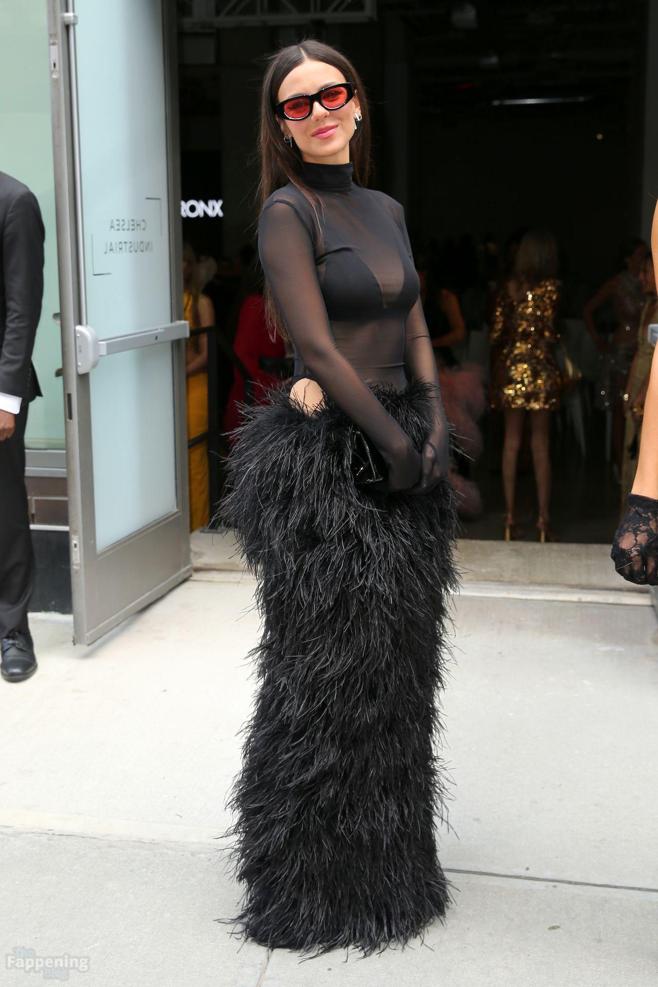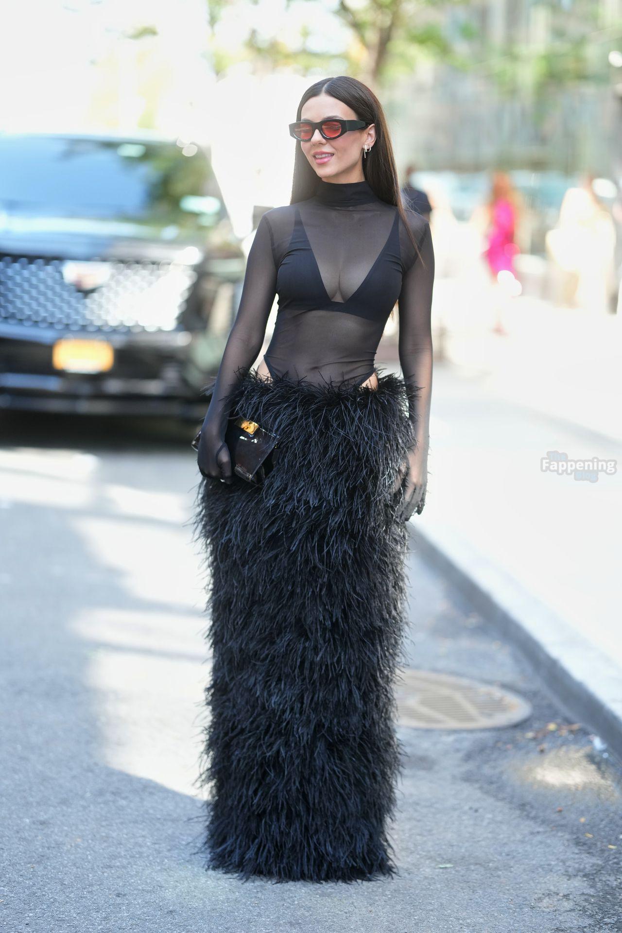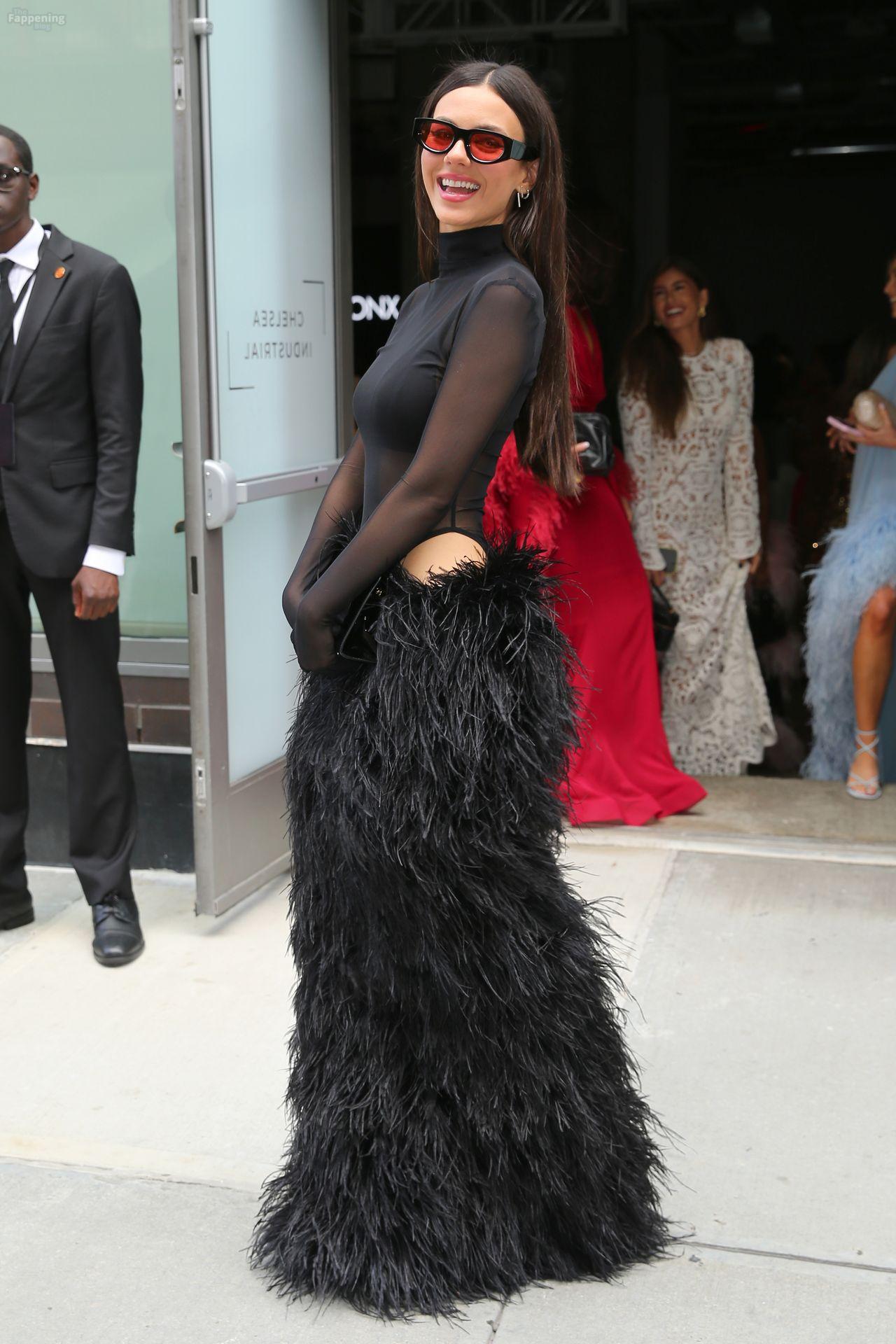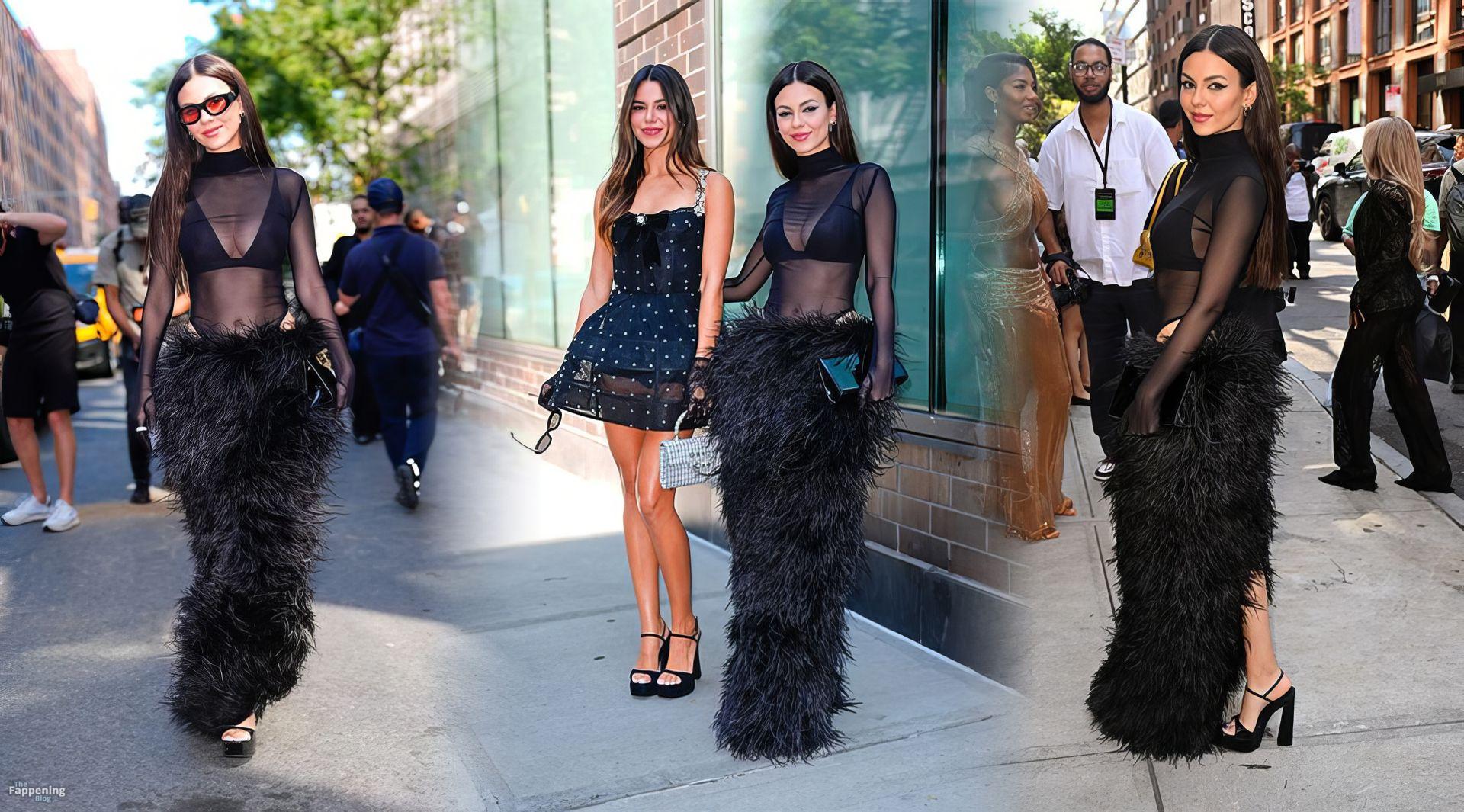 Victoria Justice was at Bronx and Banco’s NYFW show, rockin’ a sheer black mesh top, black bra, and a furry black maxi skirt. She topped off the bold high-fashion look with sunglasses and a black purse, spotted outside the show durin’ New York Fashion Week.