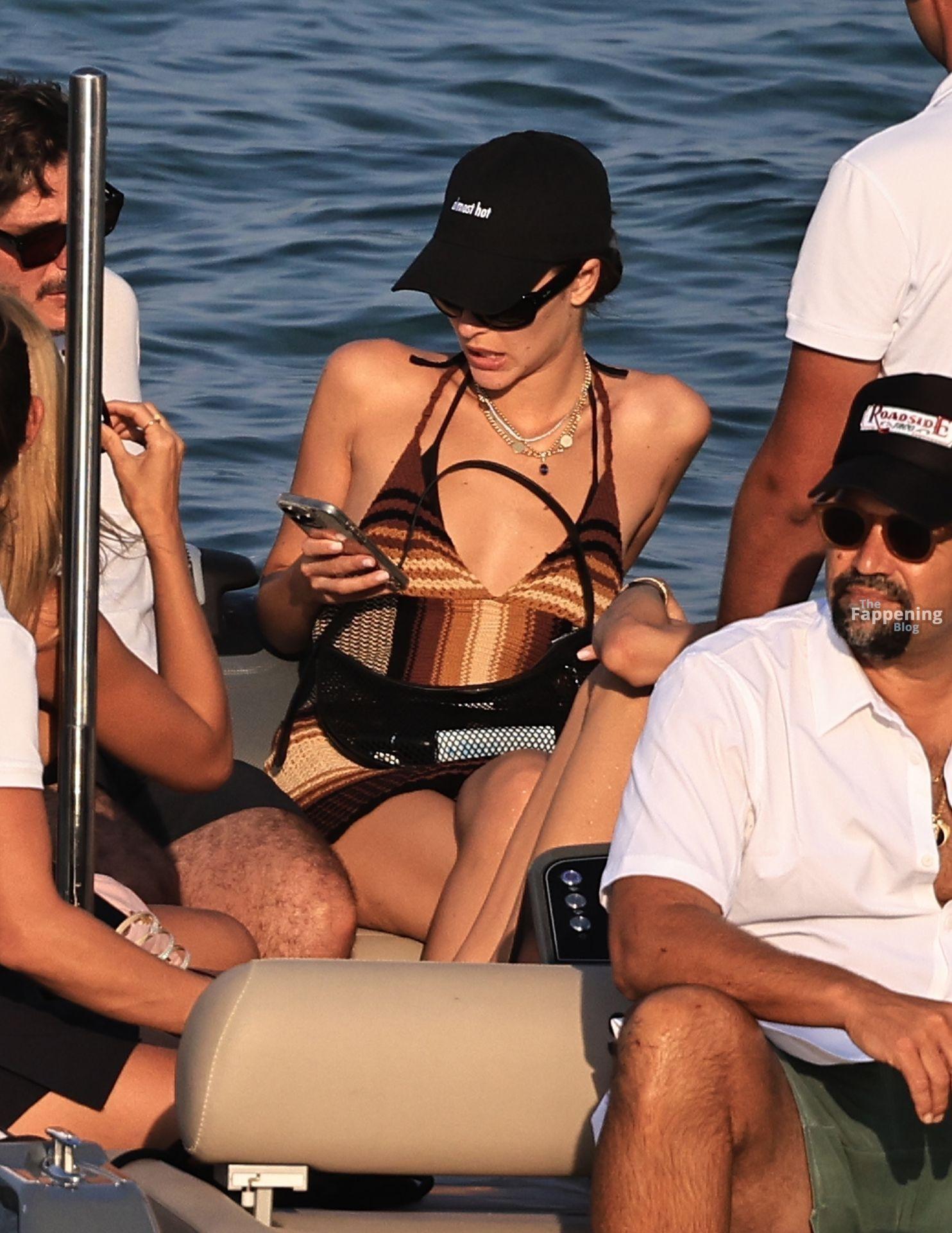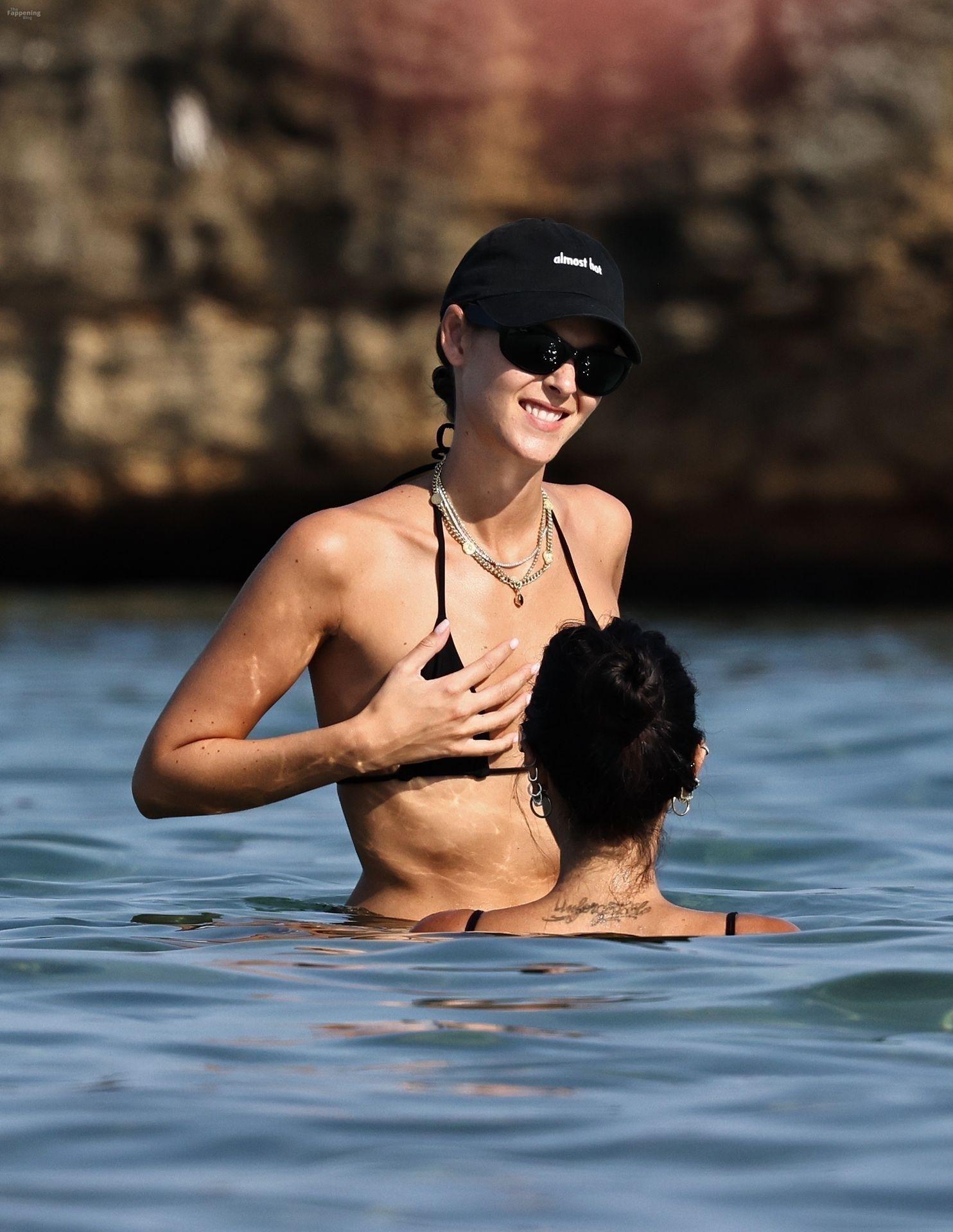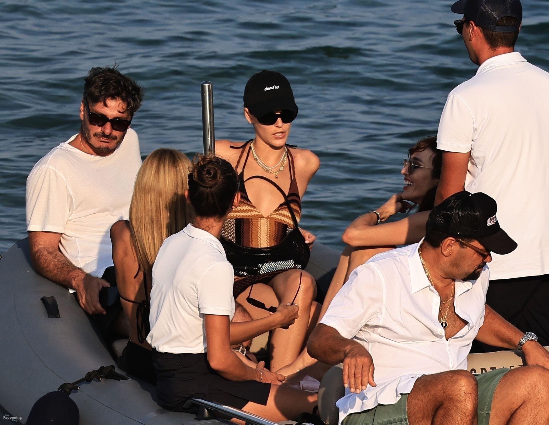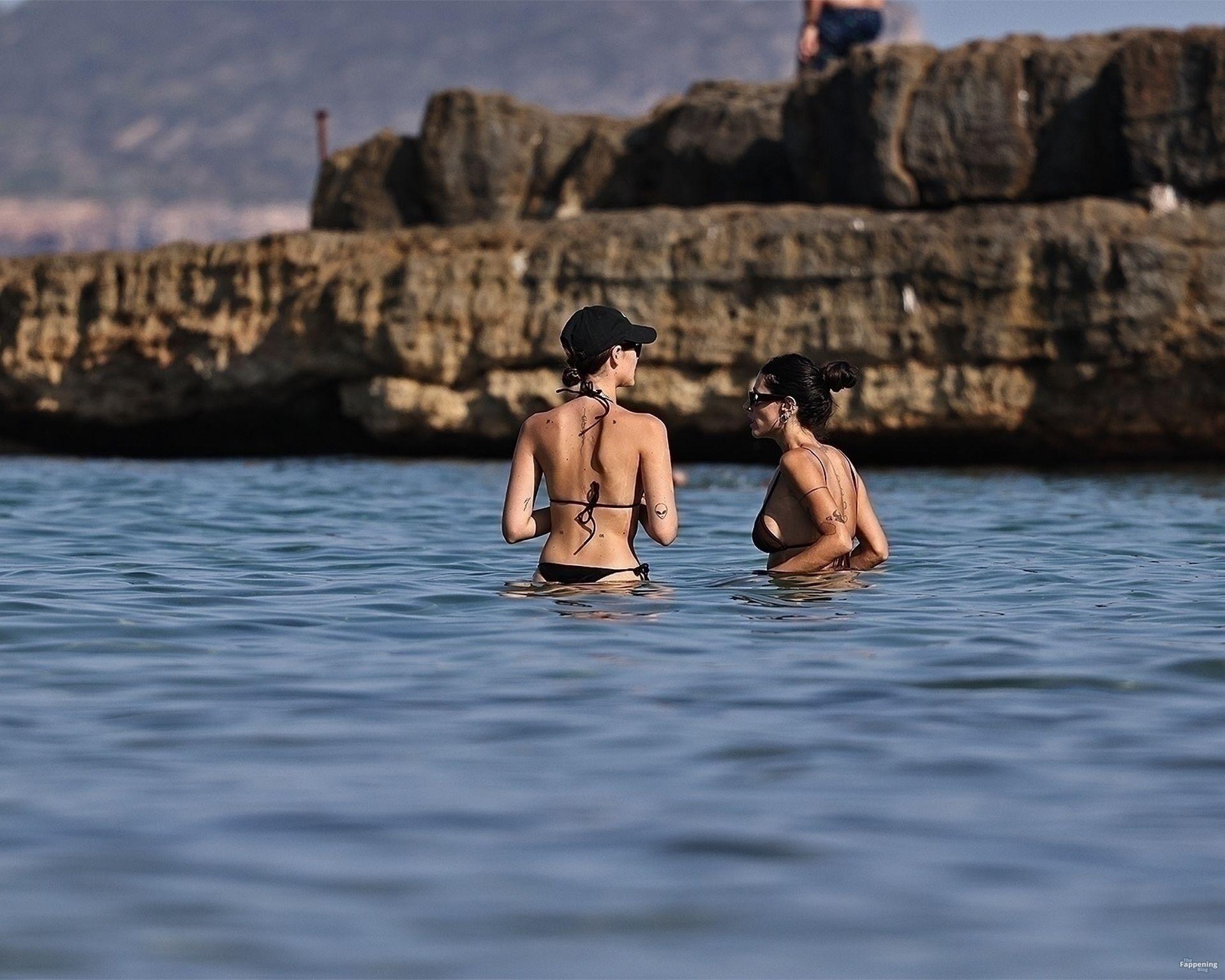 Model Vittoria Ceretti is pictured, takin’ a splash in Ibiza’s crystal waters before kickin’ it with pals at the swanky Nudos spot for lunch.